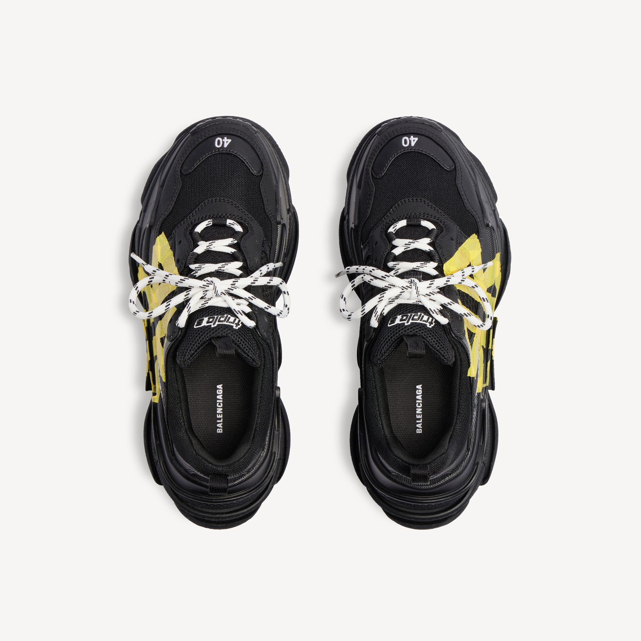 Triple S Tape Type黑色和黄色聚酯纤维和聚氨酯运动鞋 此商品支持花呗分期