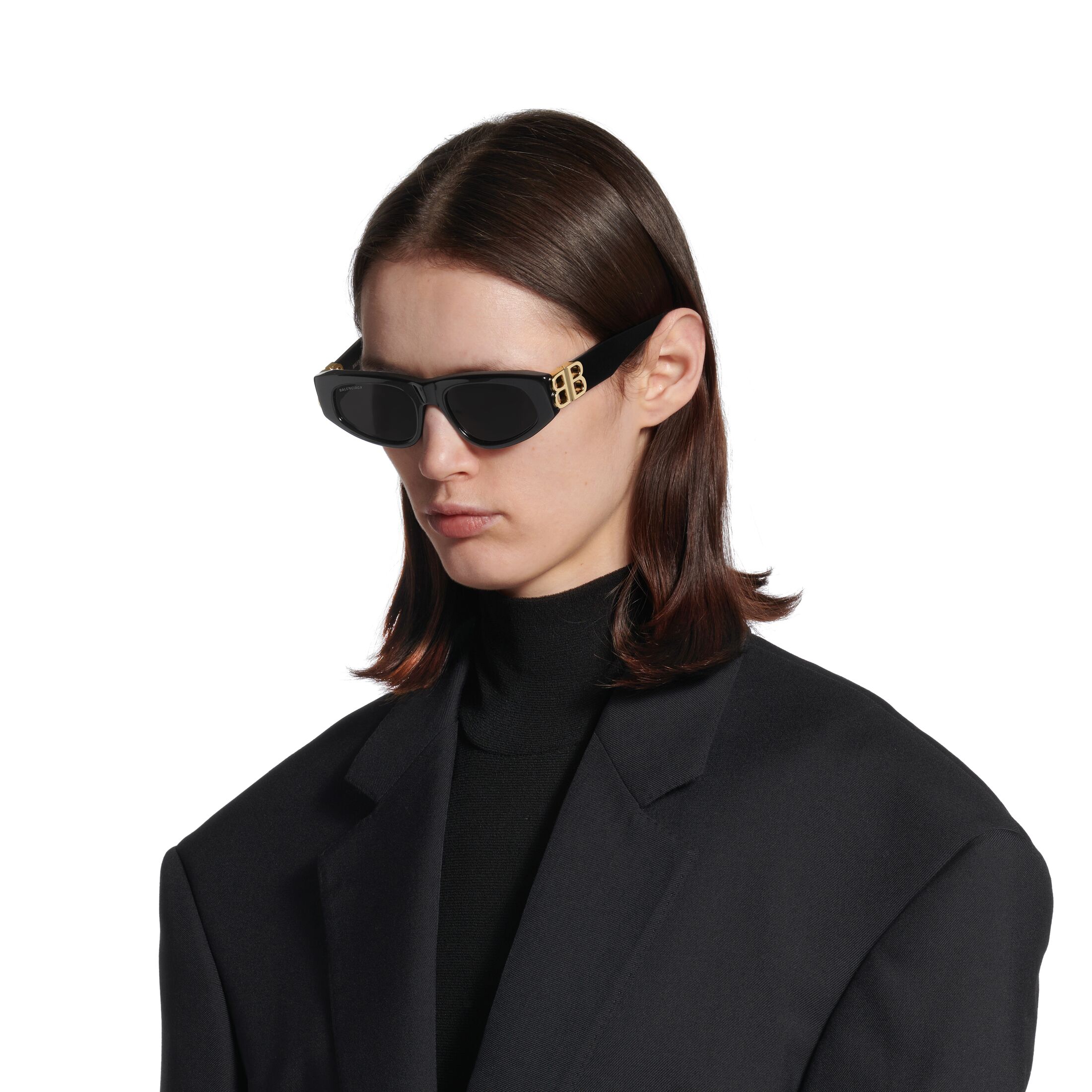 Dynasty D形镜框黑色醋酸酯太阳镜,黑色镜片和金色金属配件此商品支持花呗分期• 镜腿长度 : 13,5 厘米