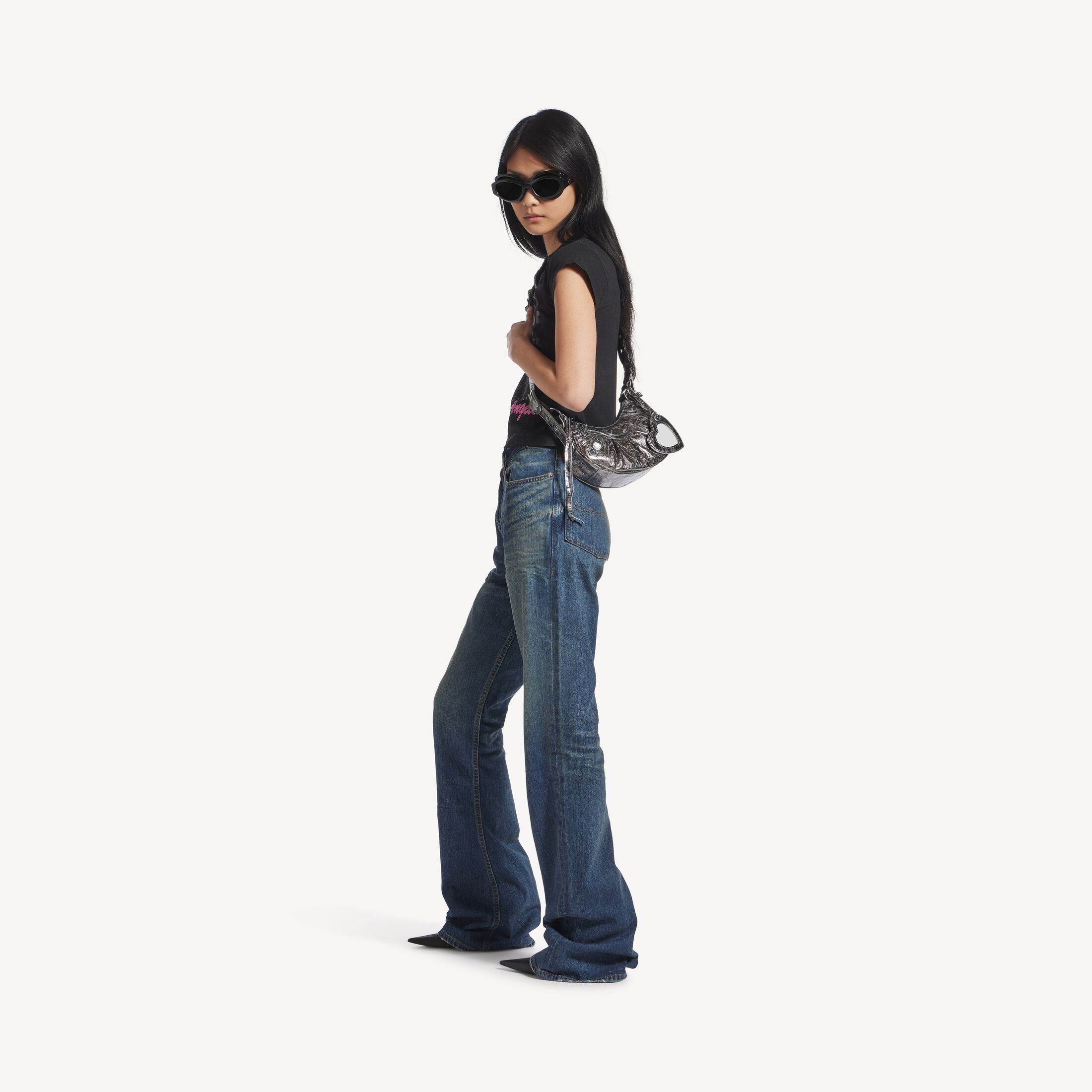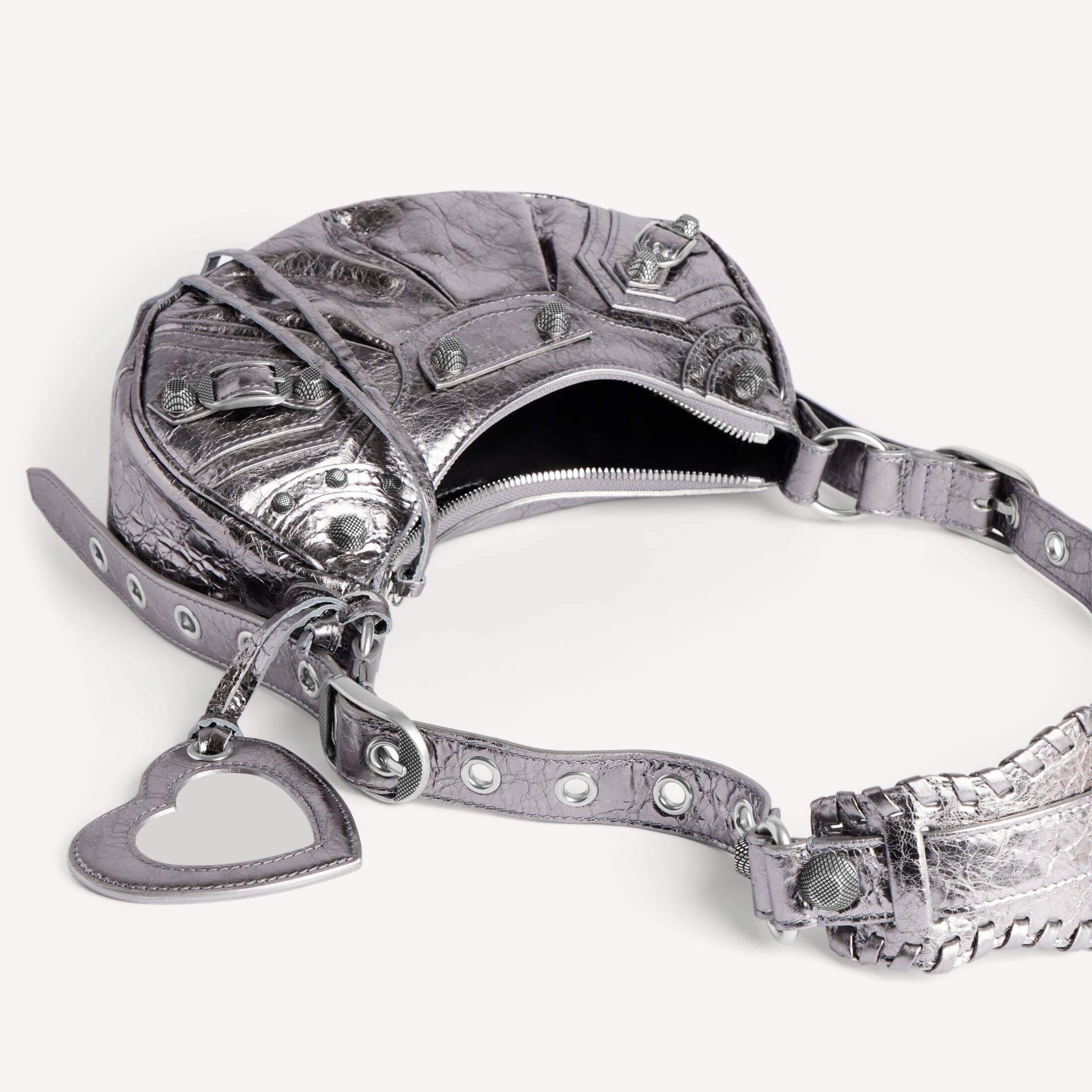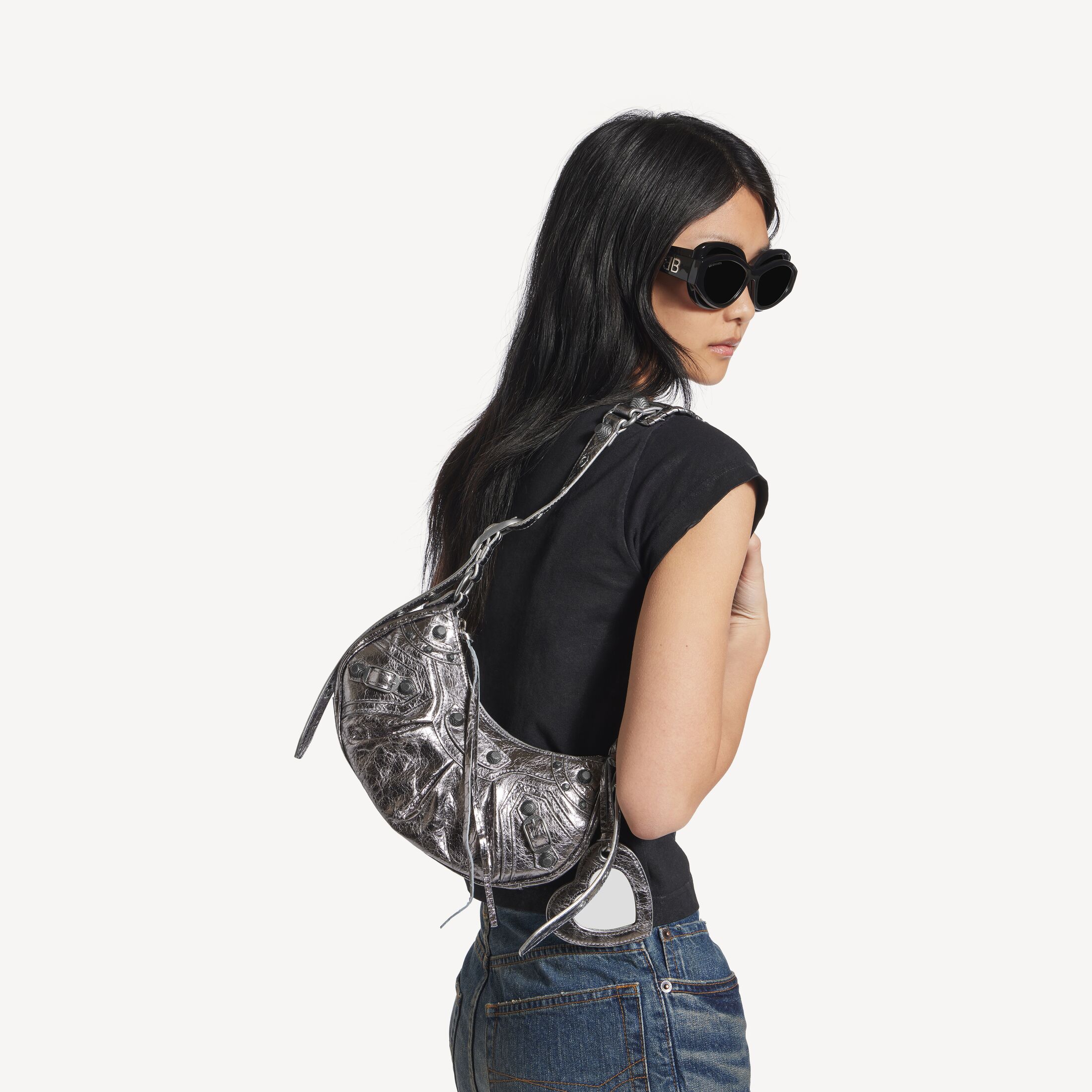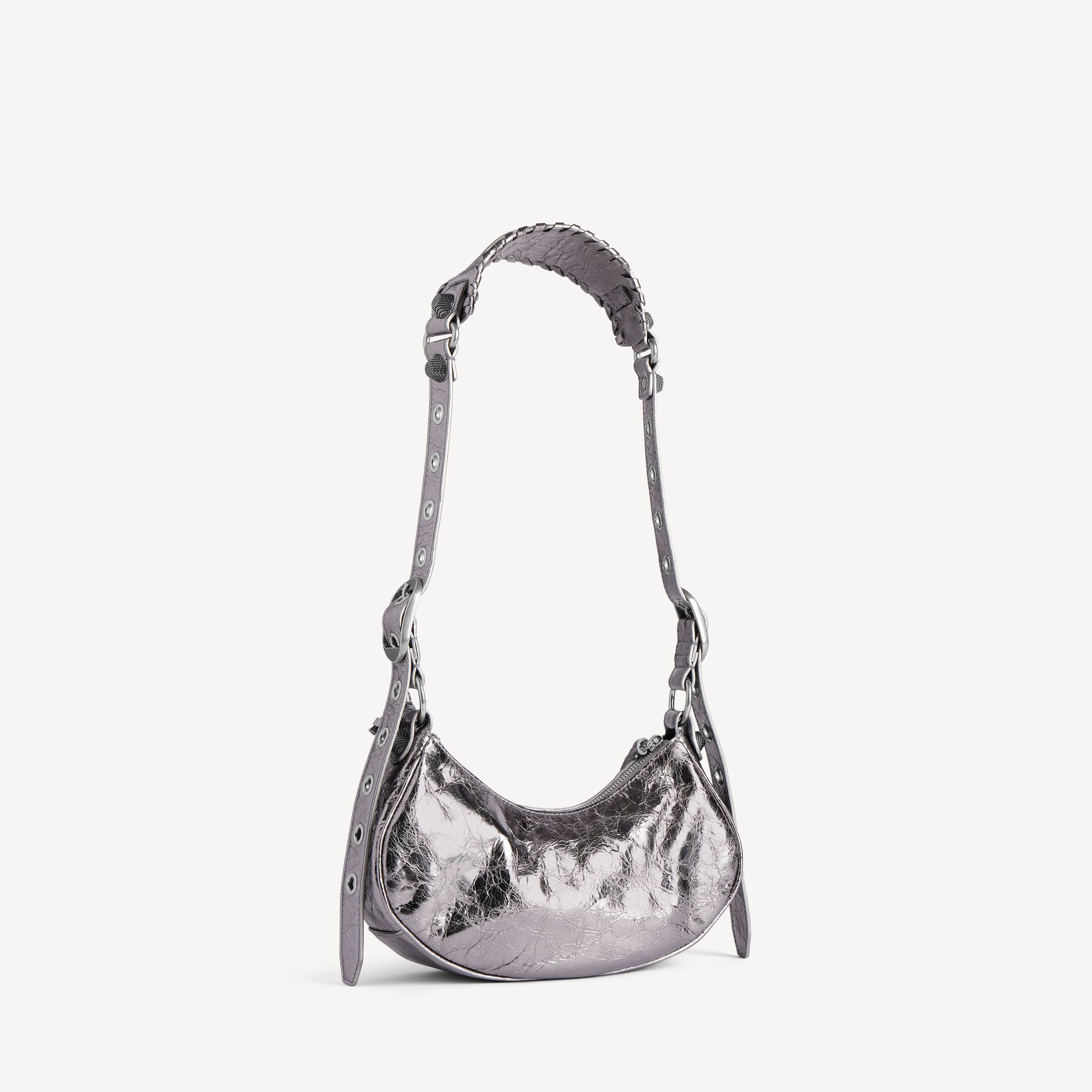 Le Cagole加小号银色金属光泽细纹羊皮革单肩包,做旧银色金属配件此商品支持花呗分期• 金属光泽细纹牛皮革