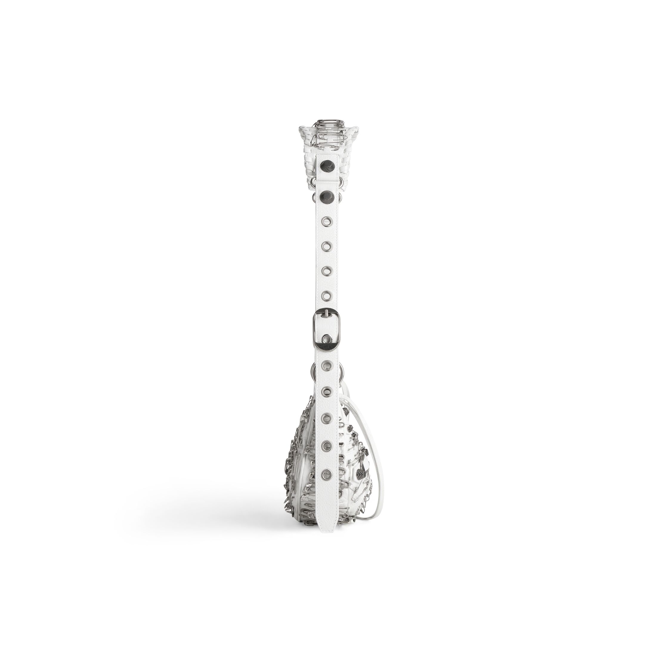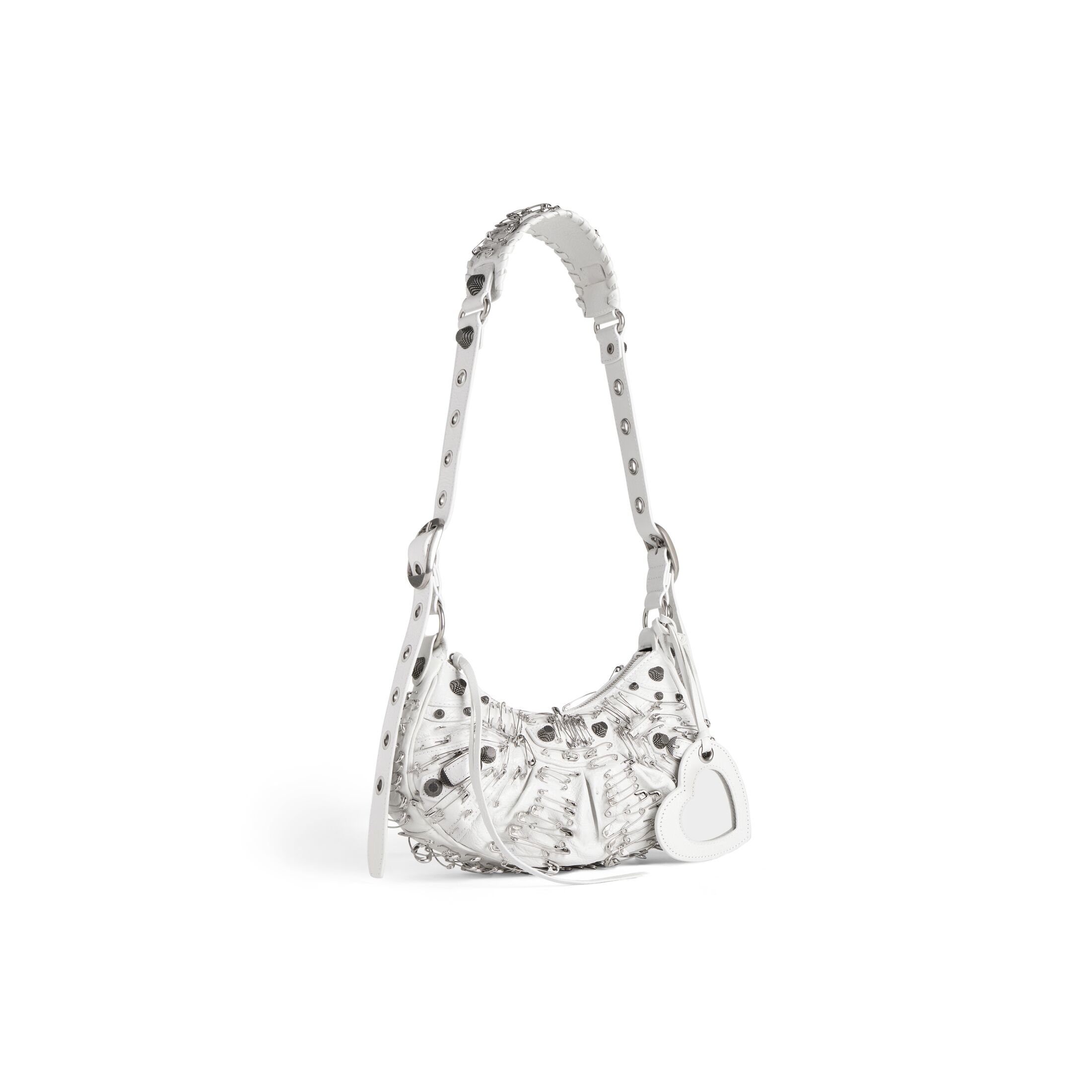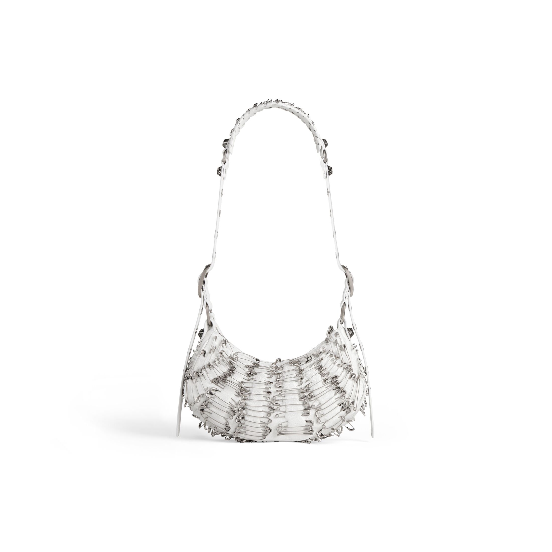 Le Cagole白色细纹羊皮革加小号肩背包,点缀安全别针,饰以做旧银色金属配件此商品支持花呗分期• 尺寸:长25.9 x 高16 x 宽6.8厘米