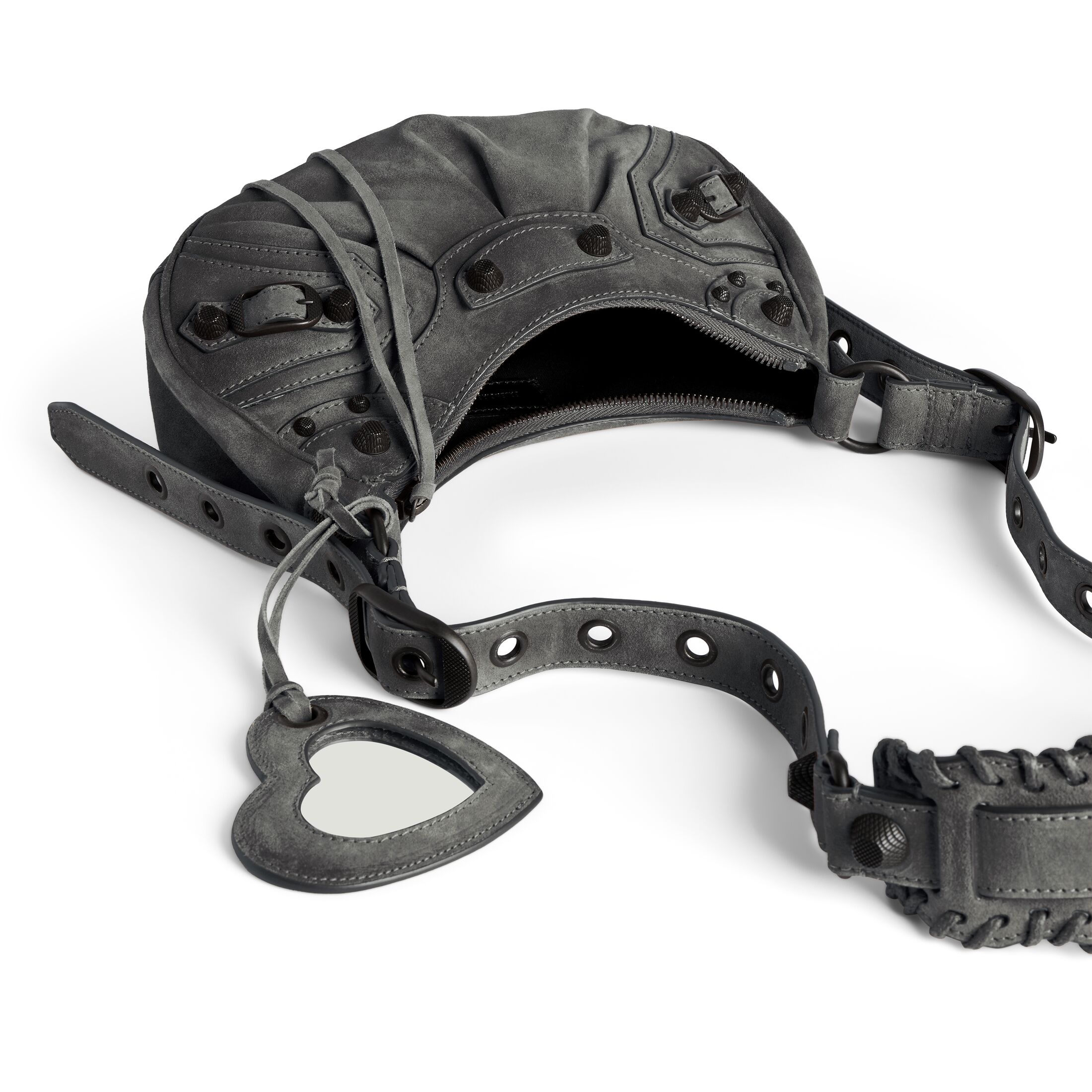 Le Cagole风暴灰色蜡处理绒面牛皮革,饰以黄铜金属配件此商品支持花呗分期