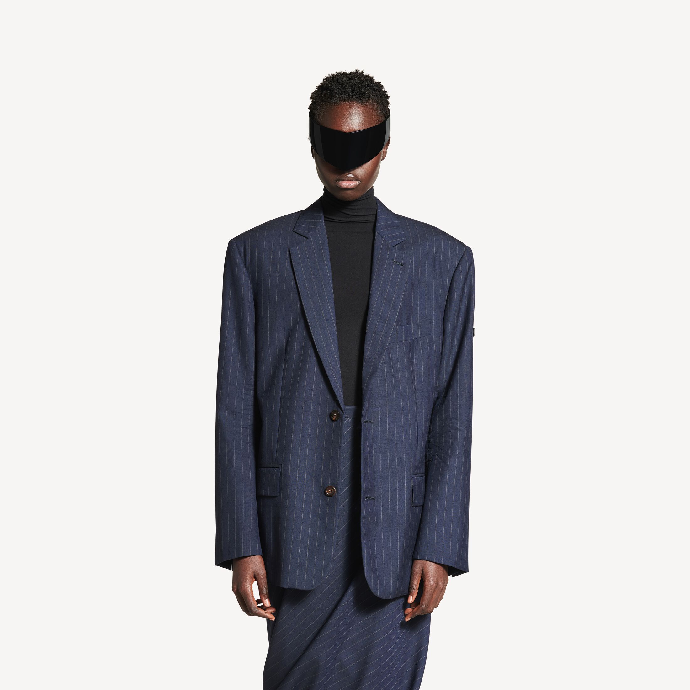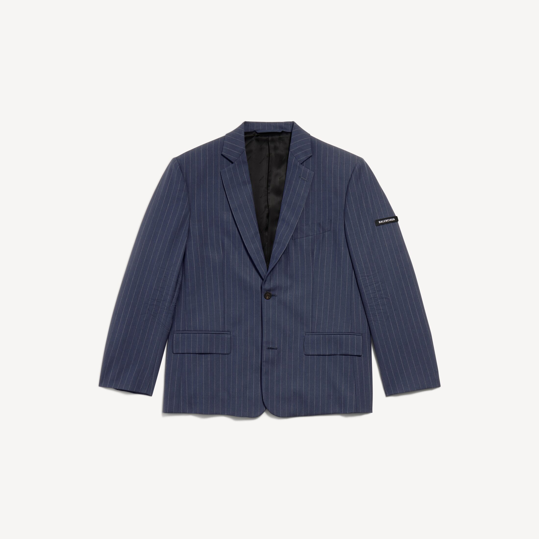 Regular深海军蓝细条纹精裁羊毛单排扣夹克此商品支持花呗分期