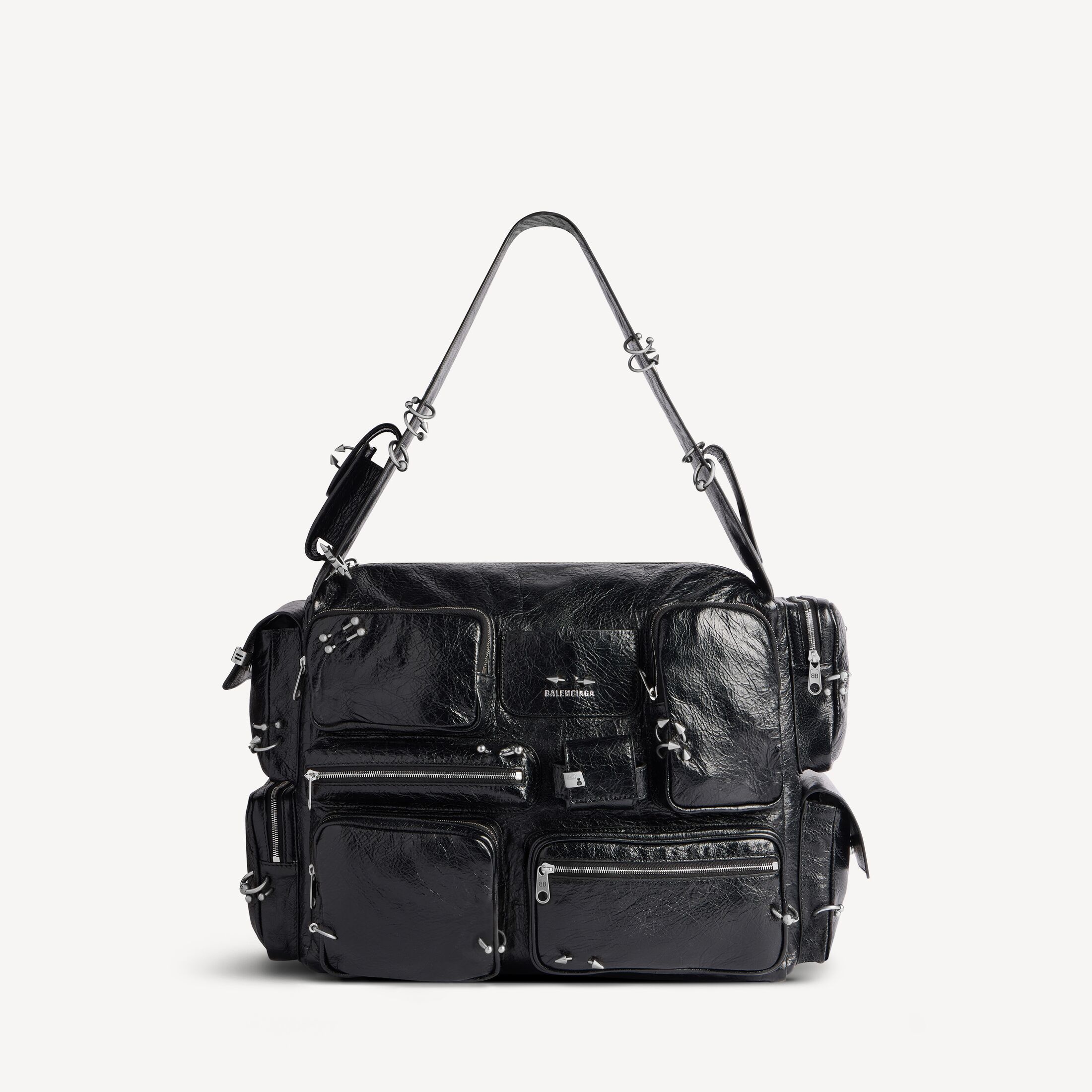 Superbusy黑色刺孔细纹羊皮革大号单肩包,饰以做旧银色金属配件 此商品支持花呗分期• 尺寸:长41.9 x 高28.9 x 宽18.7厘米