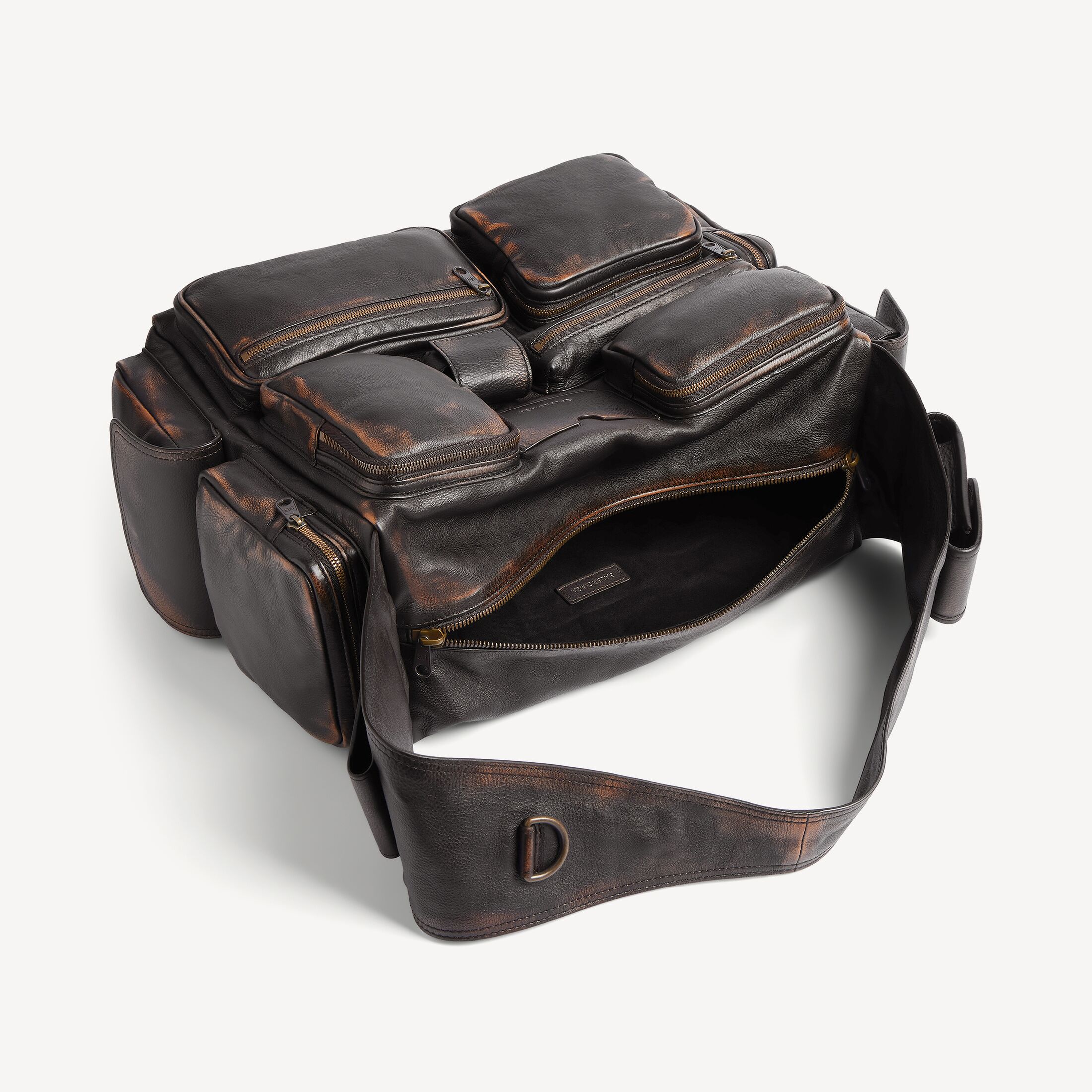 Superbusy浅棕色和深棕色双色做旧效果牛皮革大号单肩包,饰以做旧金色金属配件 此商品支持花呗分期• 尺寸:长41.9 x 高28.9 x 宽18.7厘米