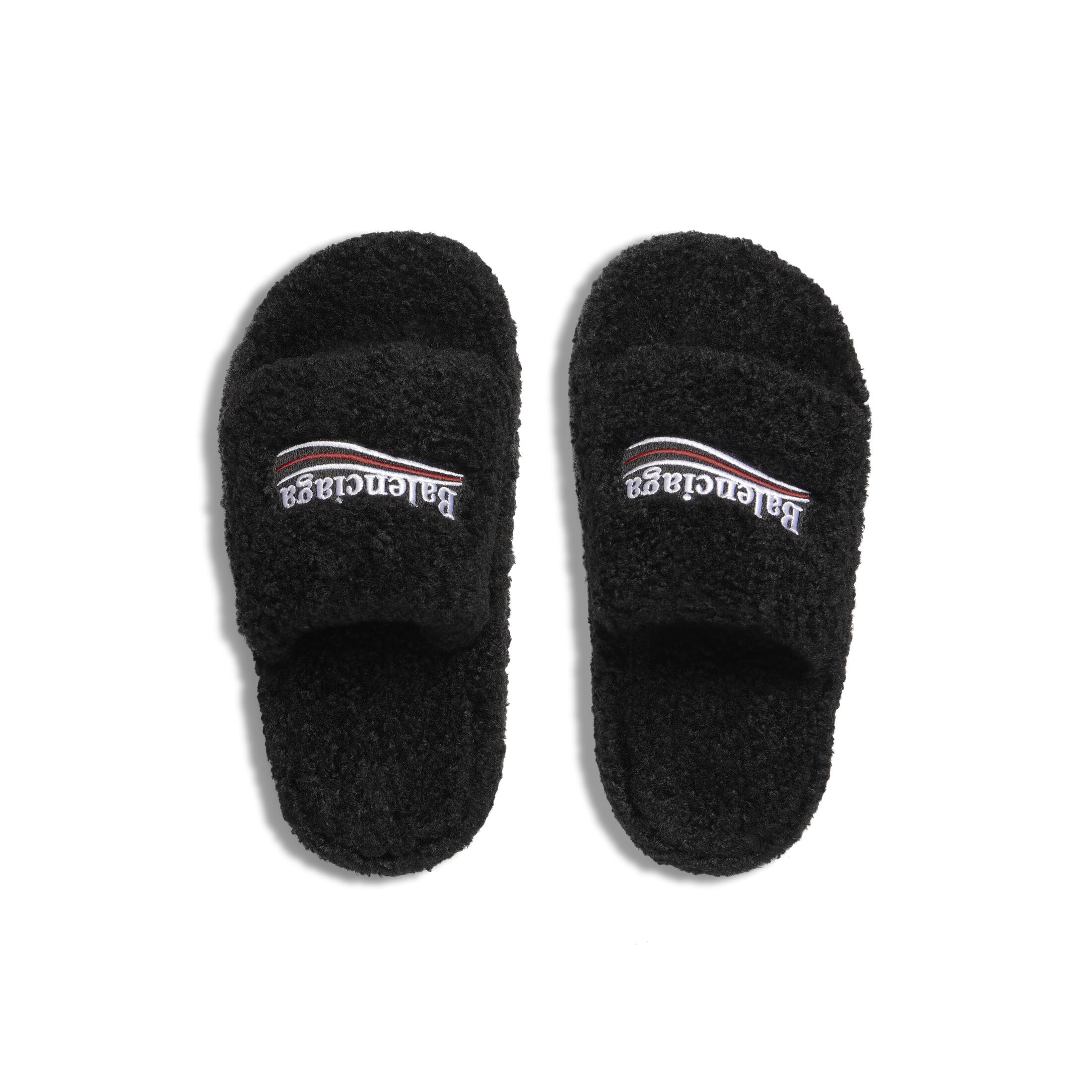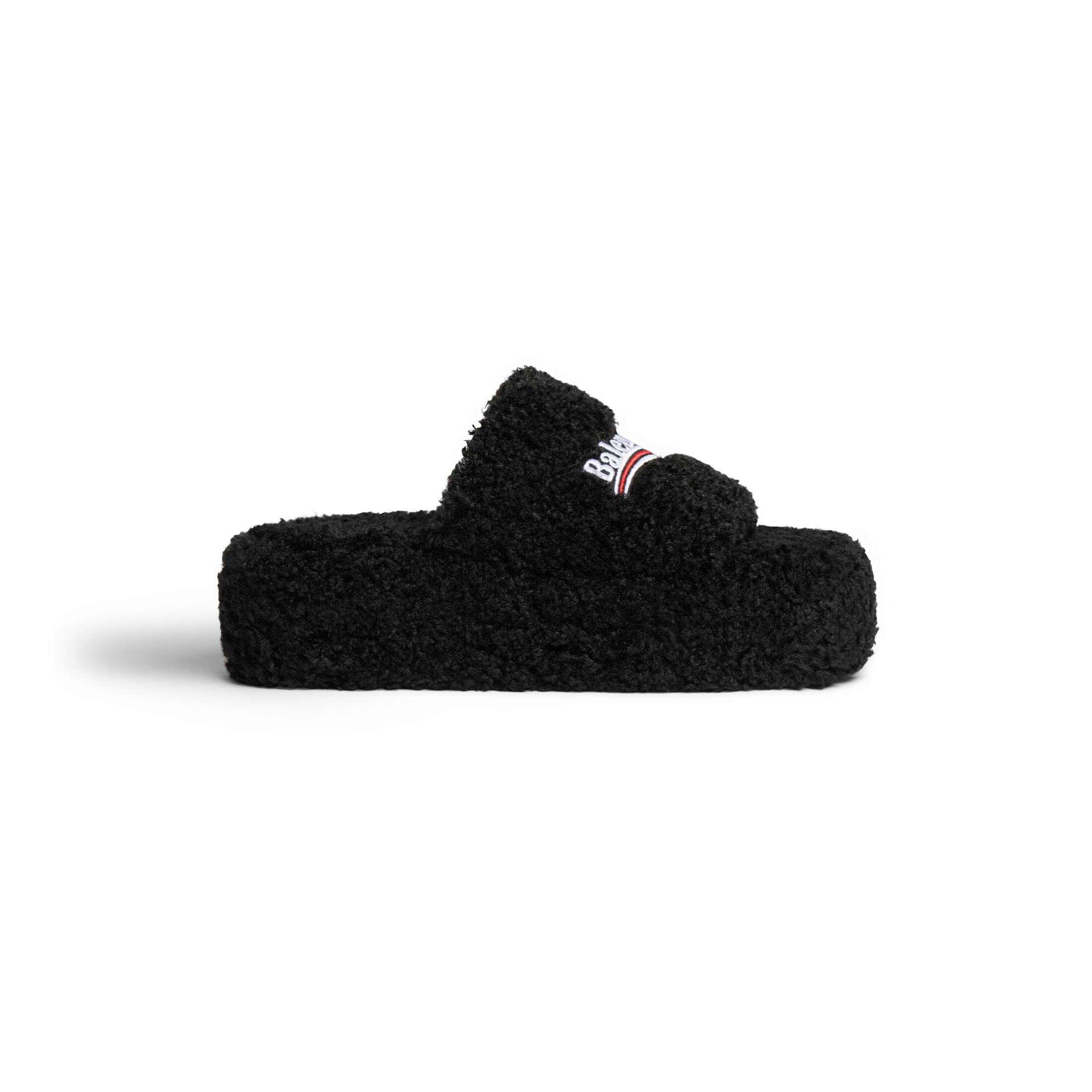 Furry黑色人造毛皮厚底凉鞋,饰以白色和红色political campaign刺绣此商品支持花呗分期尺码 (法国)