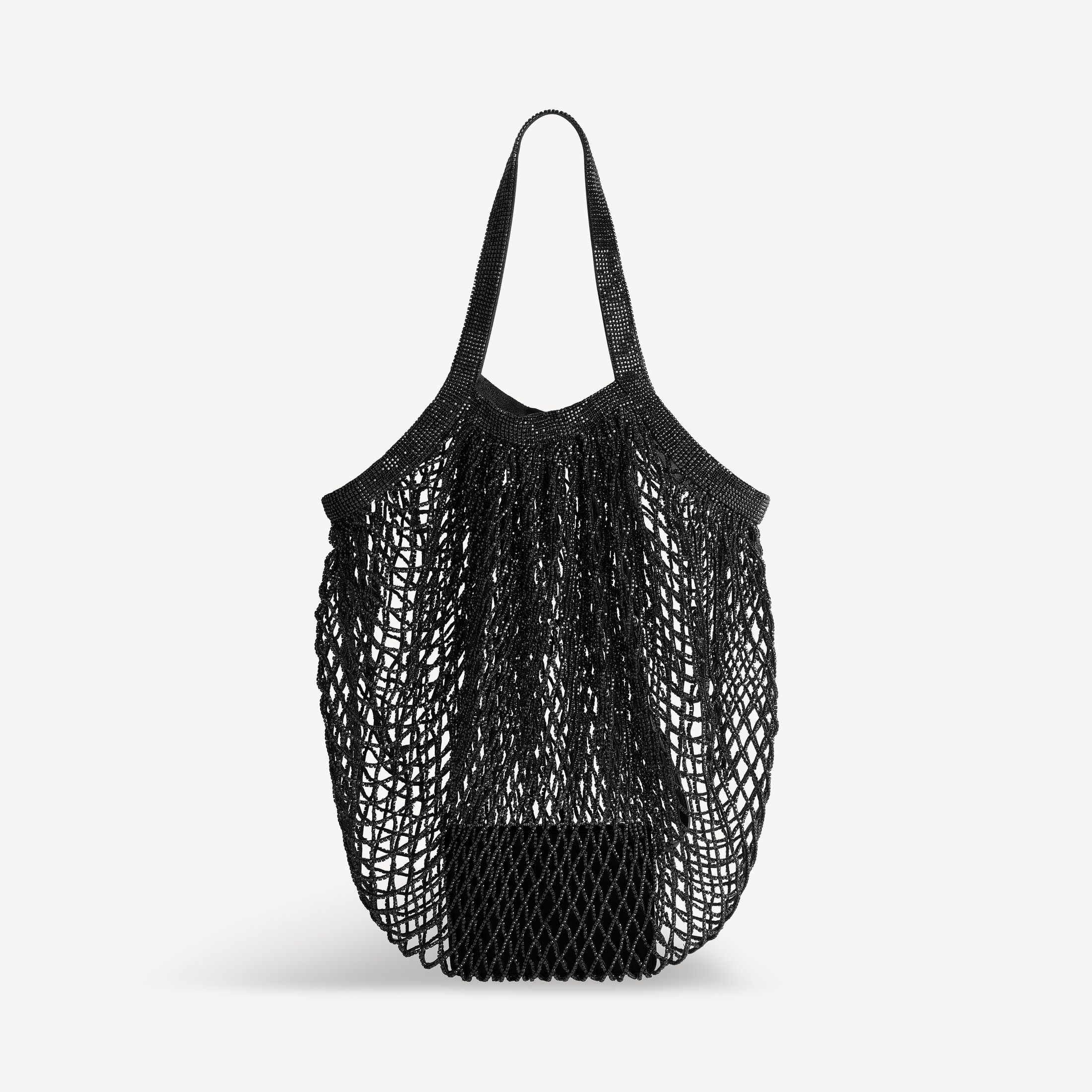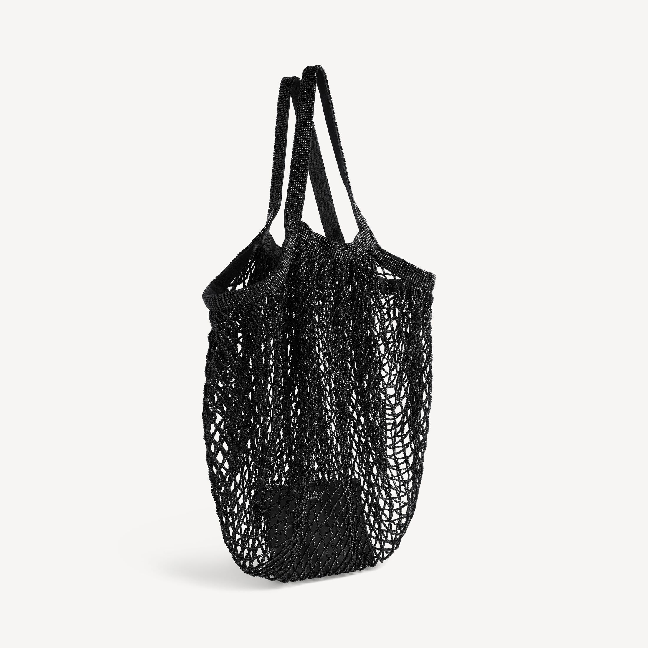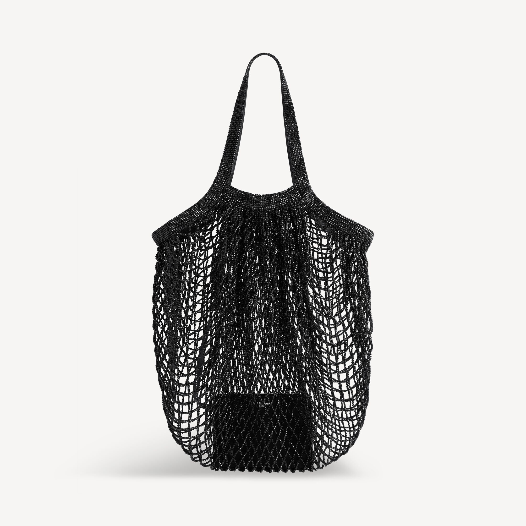 24/7黑色网眼大号手袋,点缀莱茵石,亮相于Balenciaga 2024春季系列的多款造型中。• 尺寸:长42.9 x 高46.9 x 宽2厘米