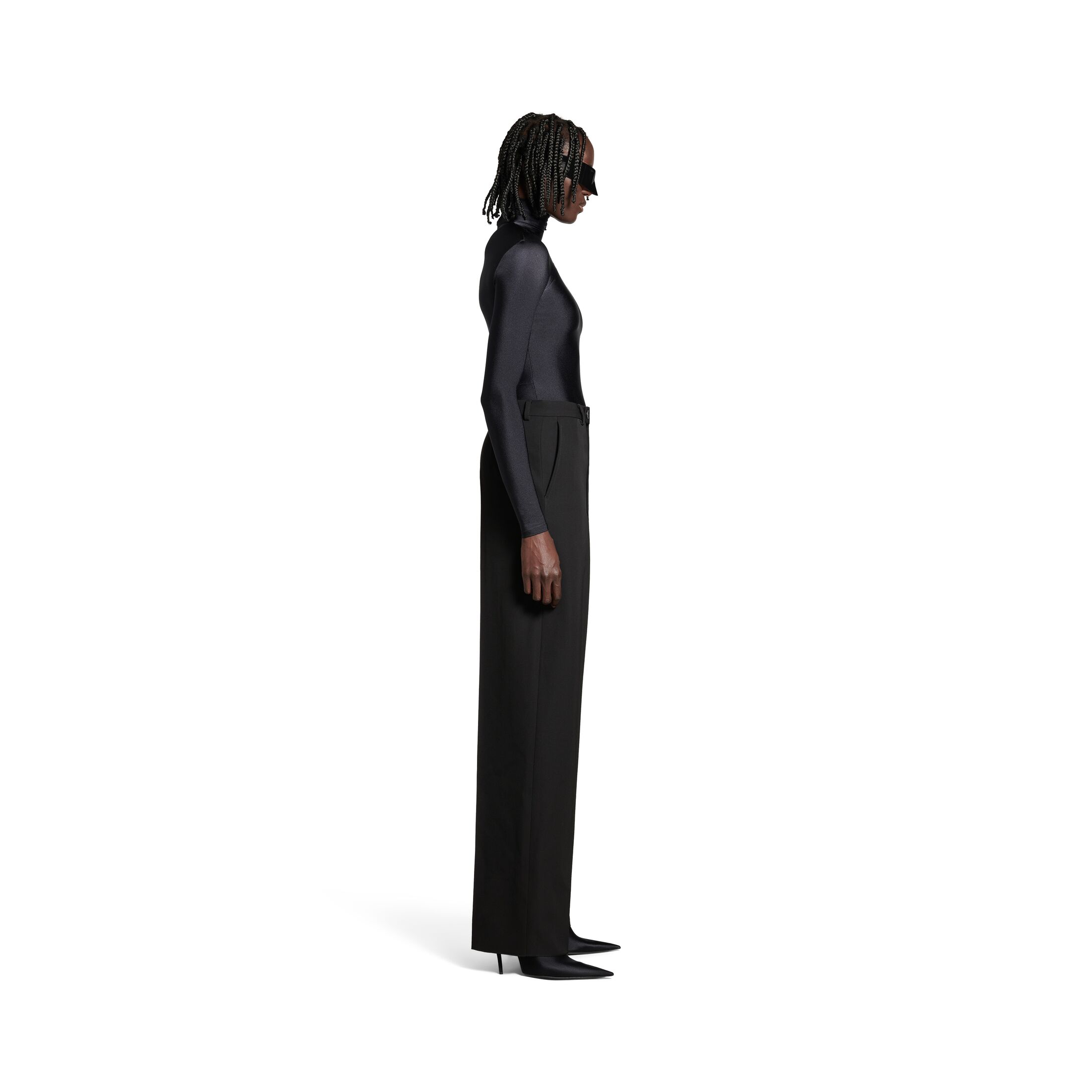Baggy Tailored黑色巴拉西厄织物长裤,亮相于Balenciaga 2024春季系列Look 7。