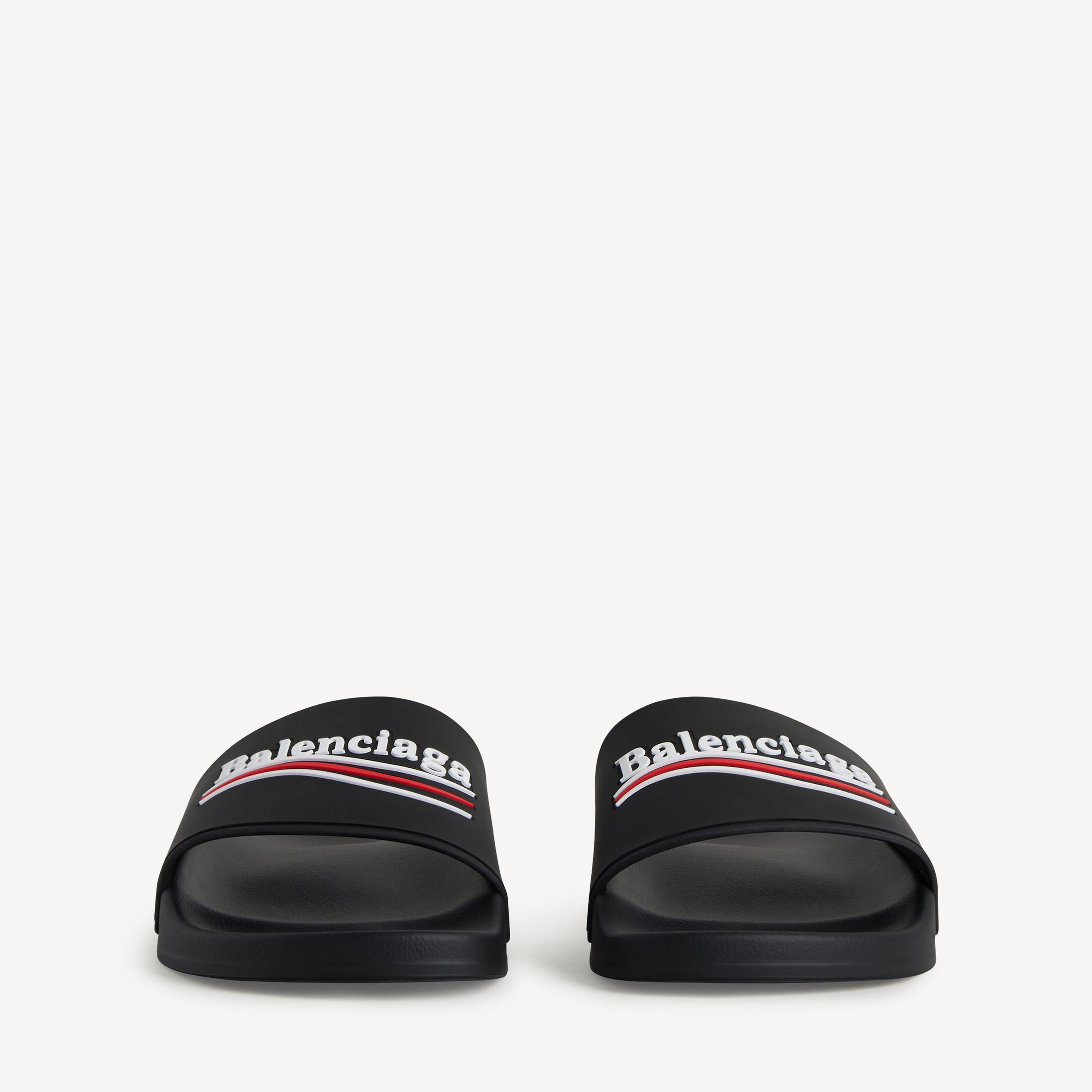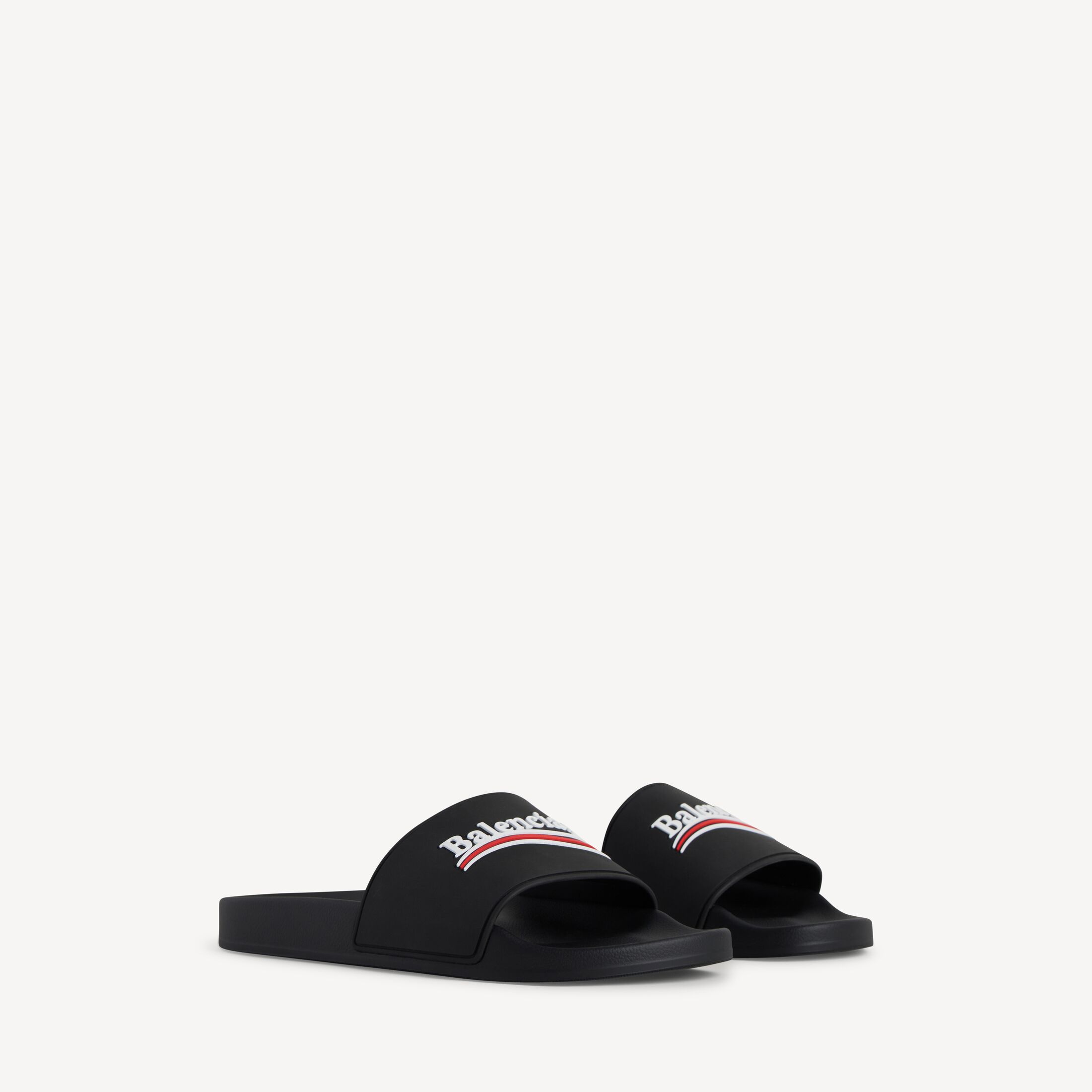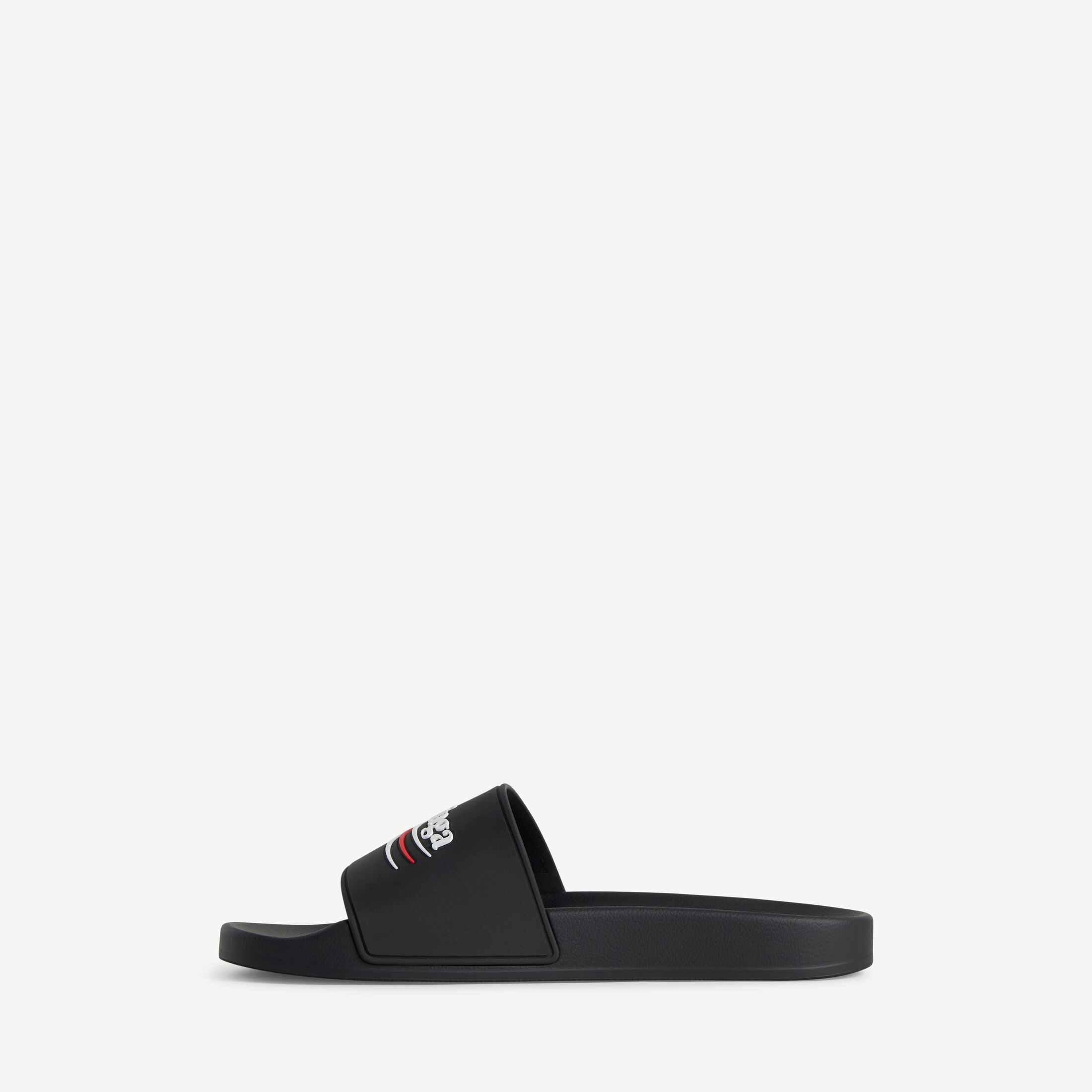 Pool Slide黑色橡胶凉鞋,饰以白色和红色political campaign艺术作品此商品支持花呗分期尺码 (法国)