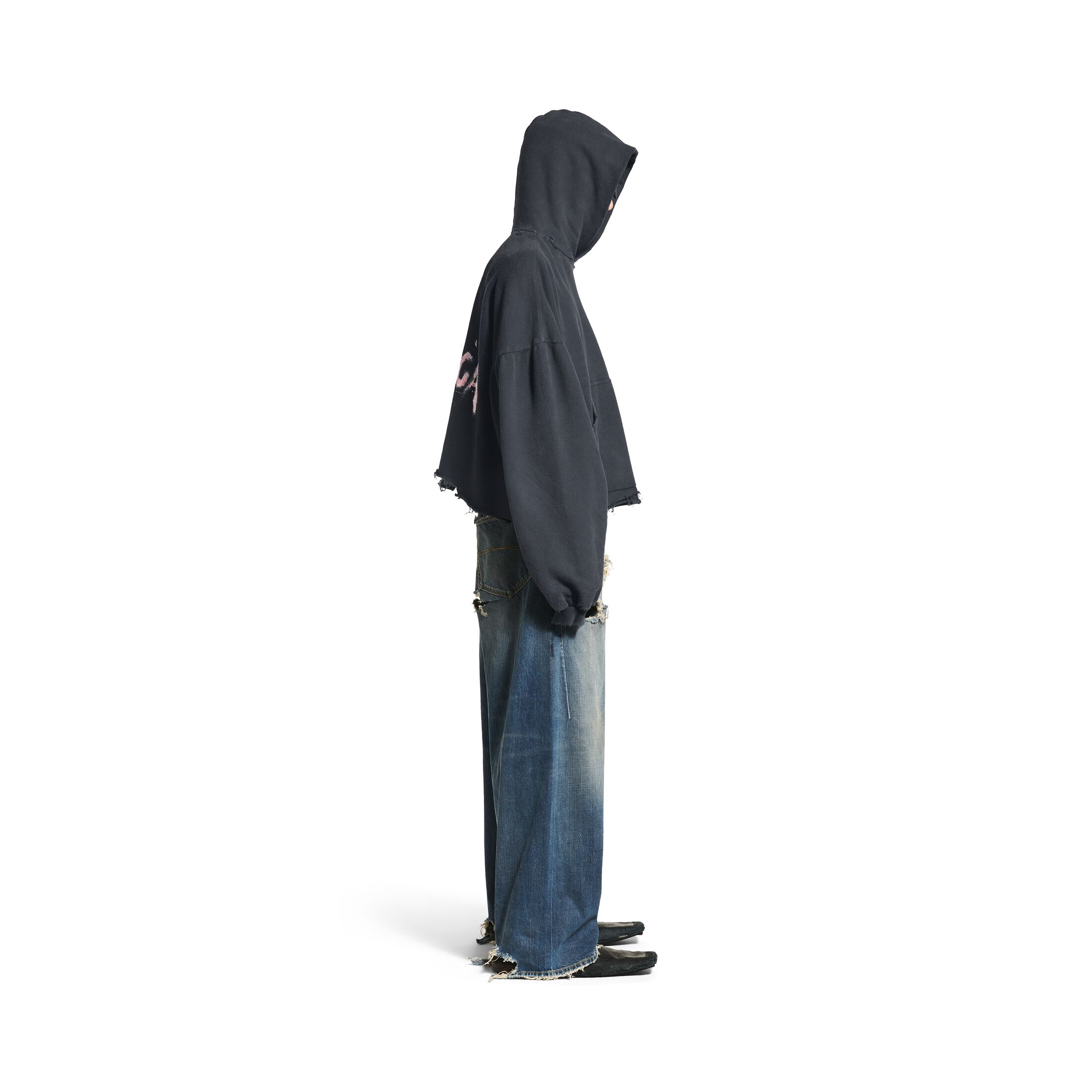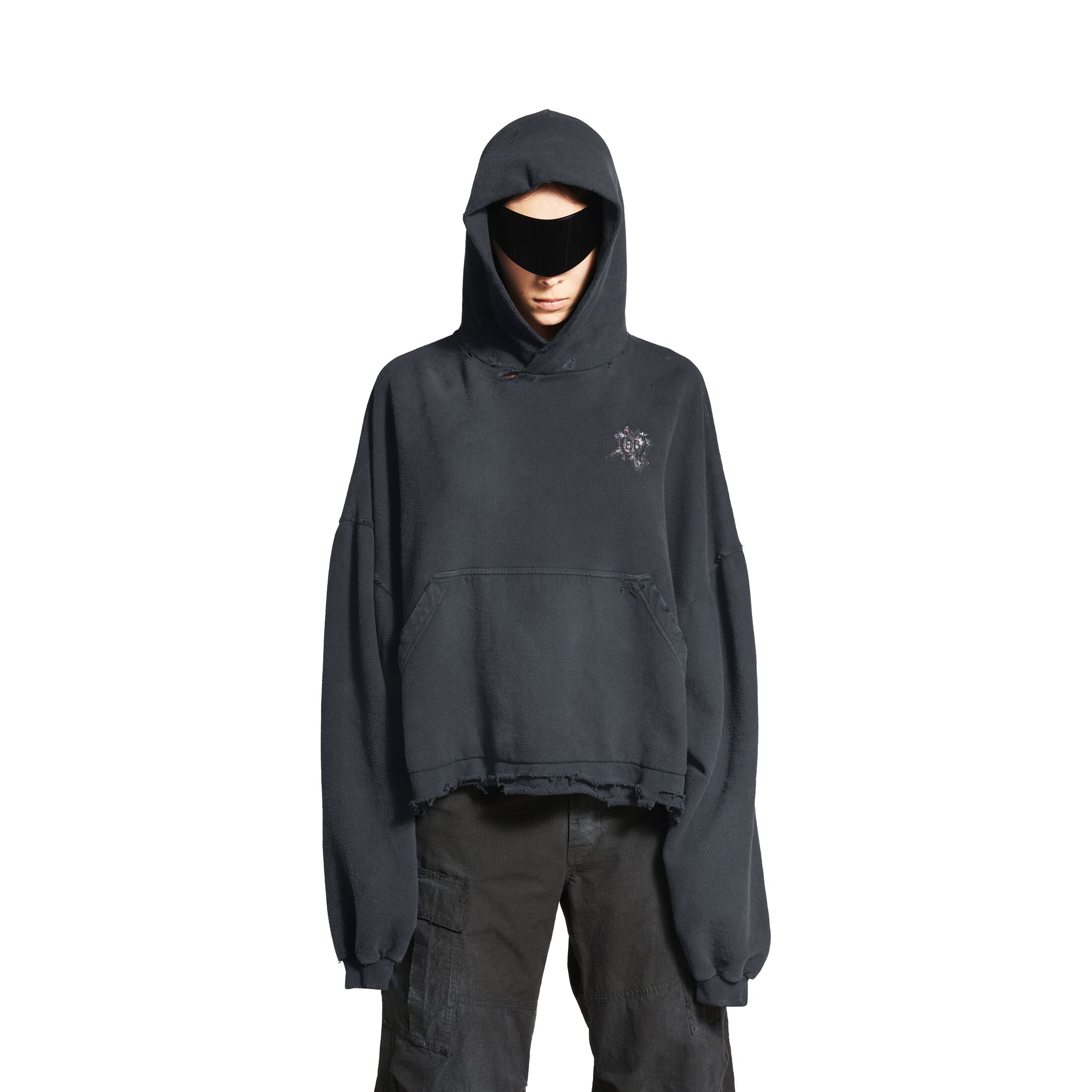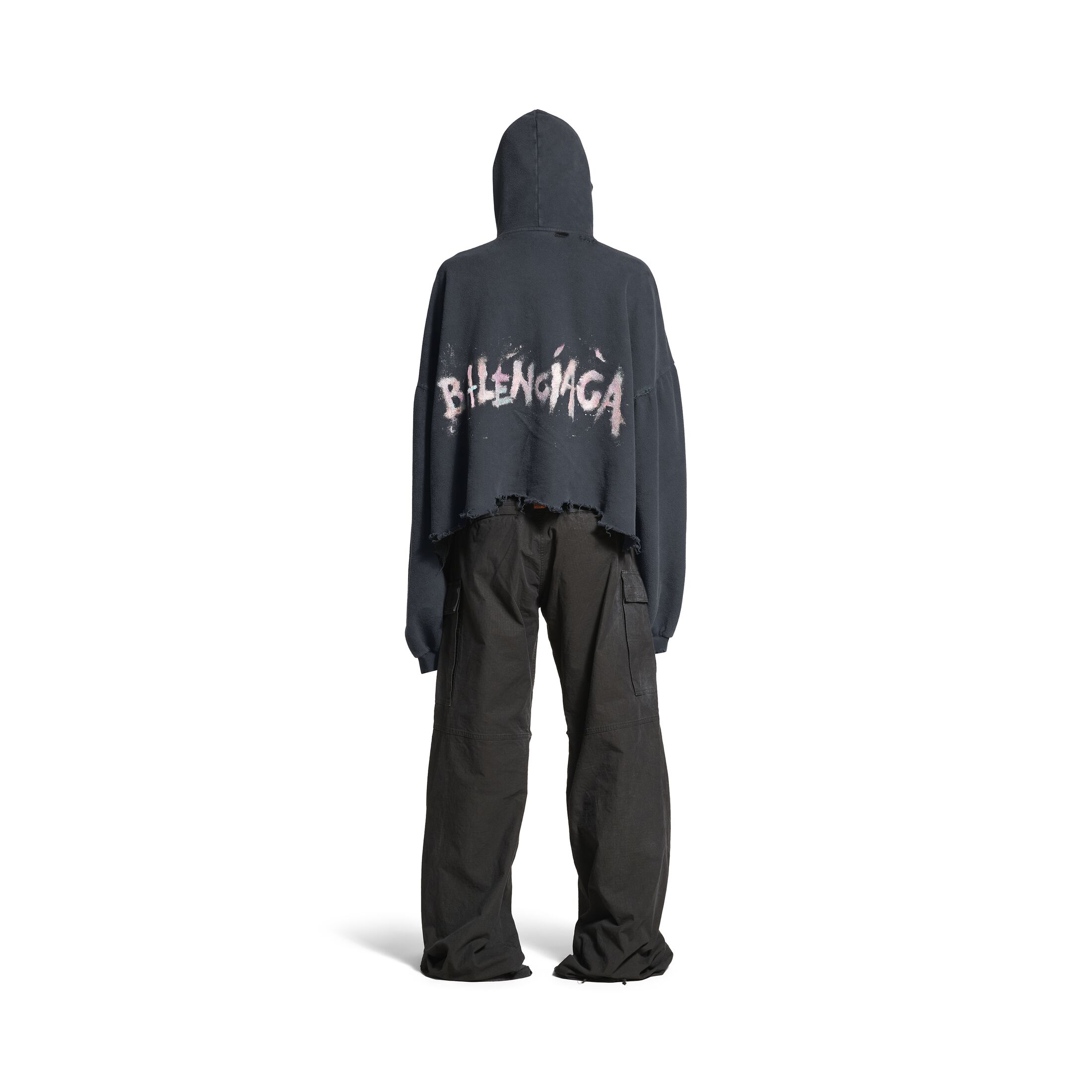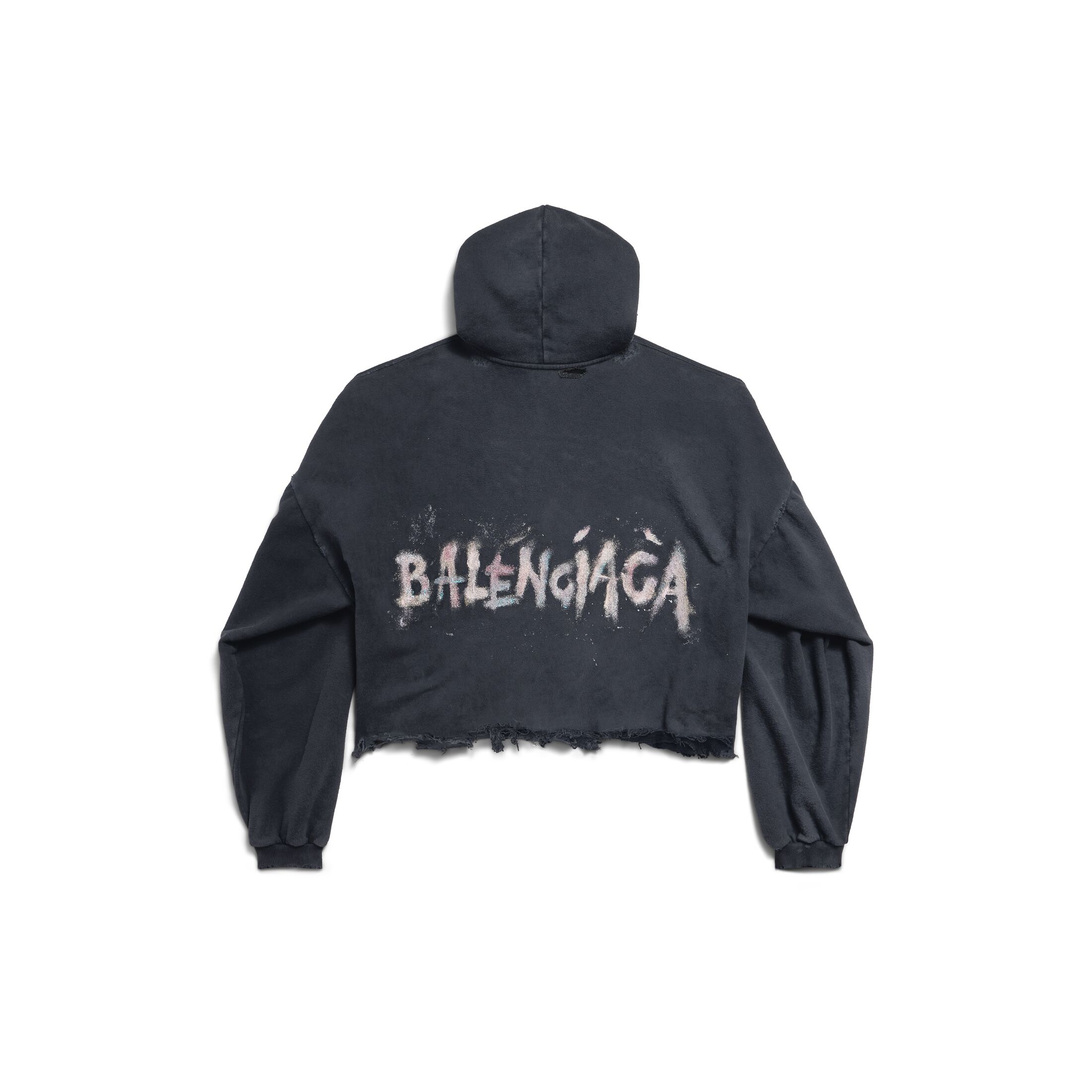 Balenciaga Nail Polish Hoodie褪色黑色短款连帽卫衣此商品支持花呗分期尺码 (法国)