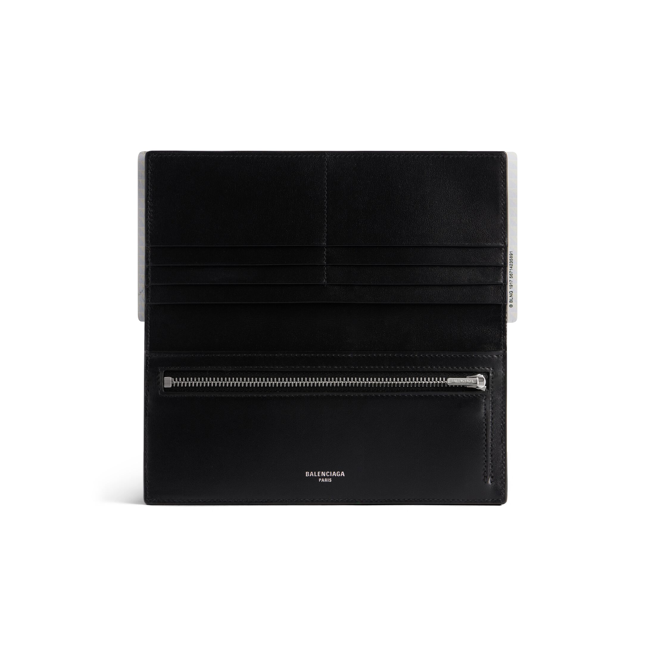 Passport黑色半哑光柔软纹理牛皮革单票券长钱包,亮相于Balenciaga 2024夏季系列Look 18。此商品支持花呗分期• 尺寸:长9.9 x 高20 x 宽1.5厘米