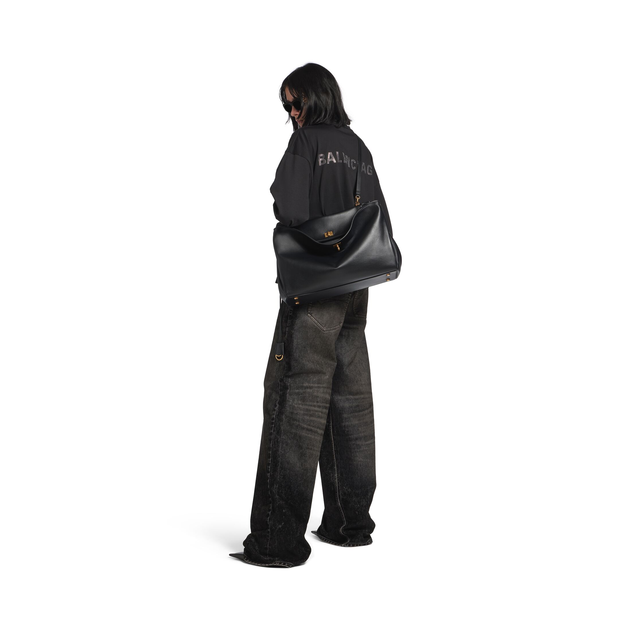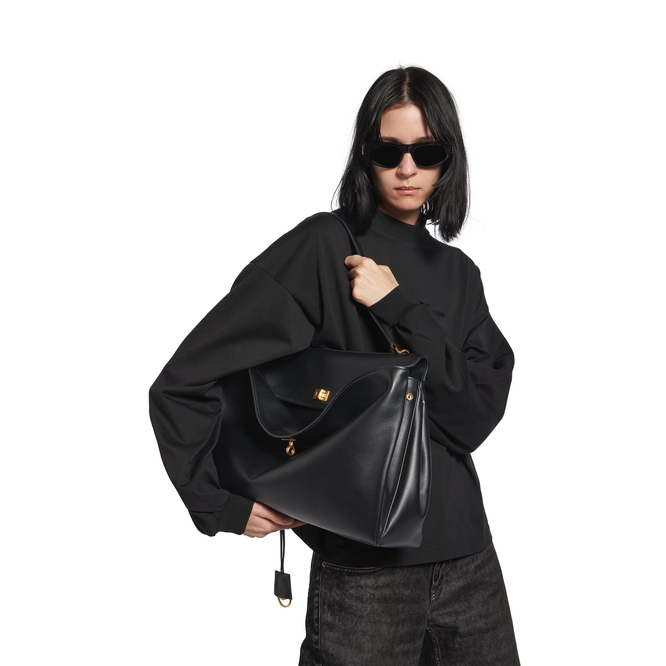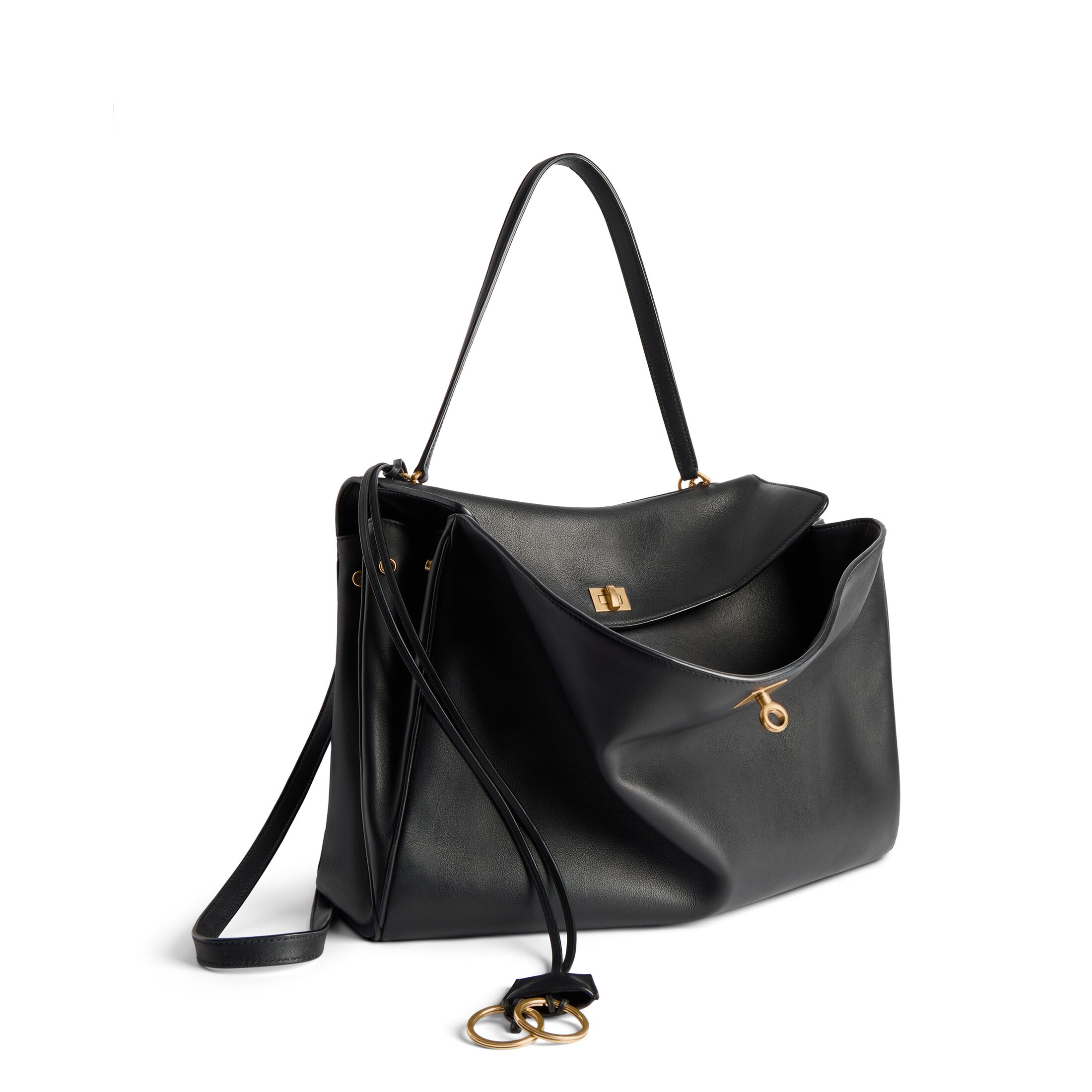 Rodeo黑色光滑牛皮革大号手提包,饰以做旧金色金属配件此商品支持花呗分期• 光滑牛皮革
