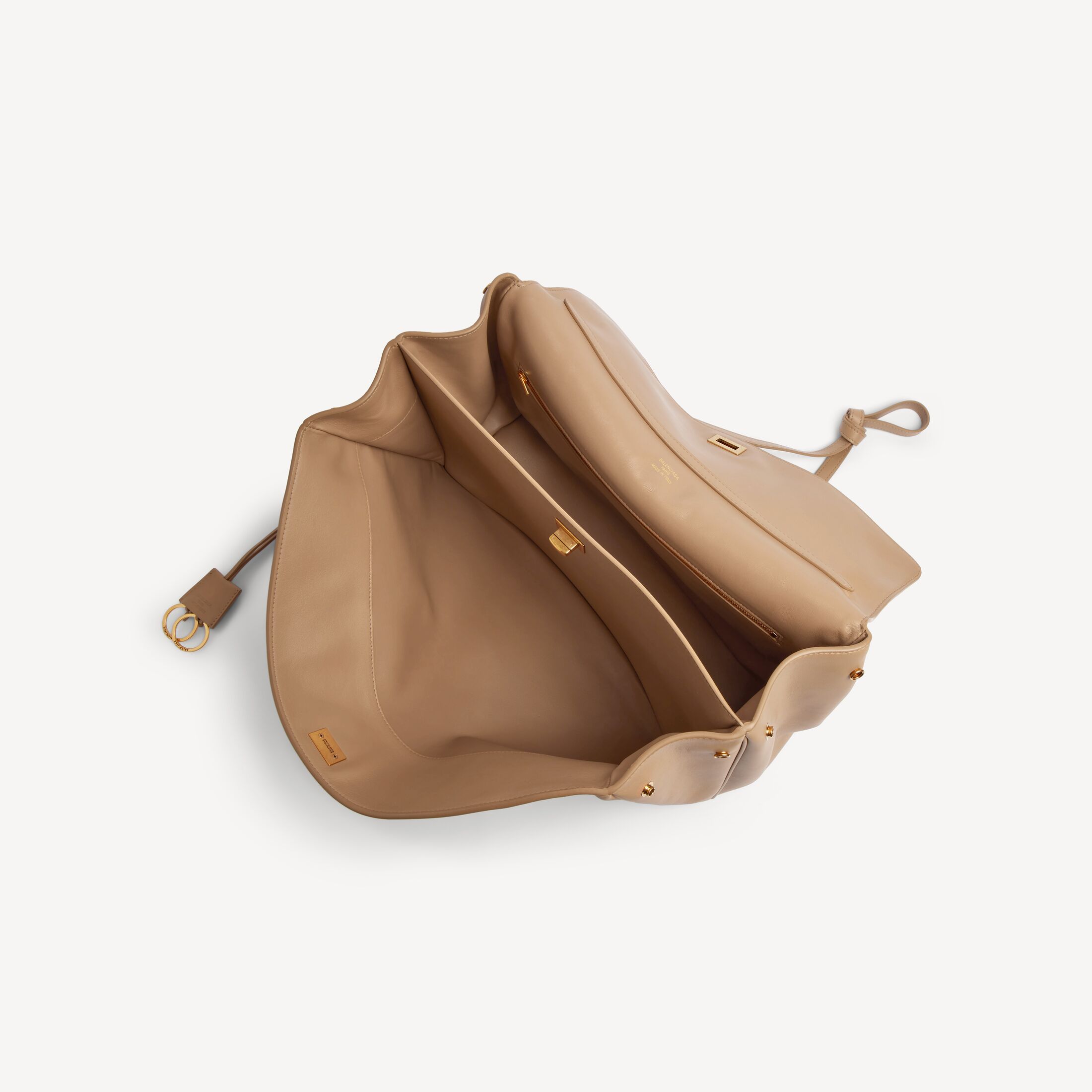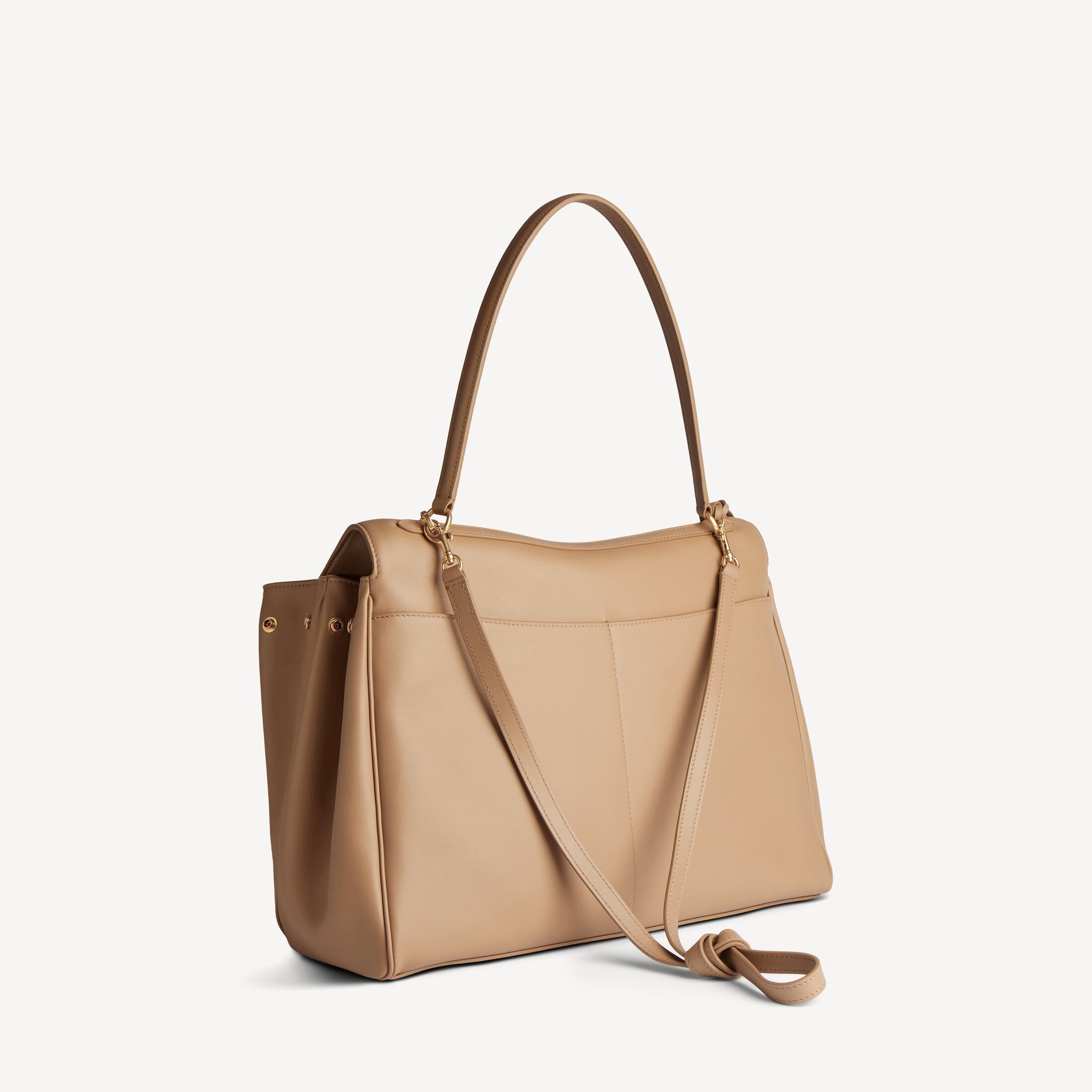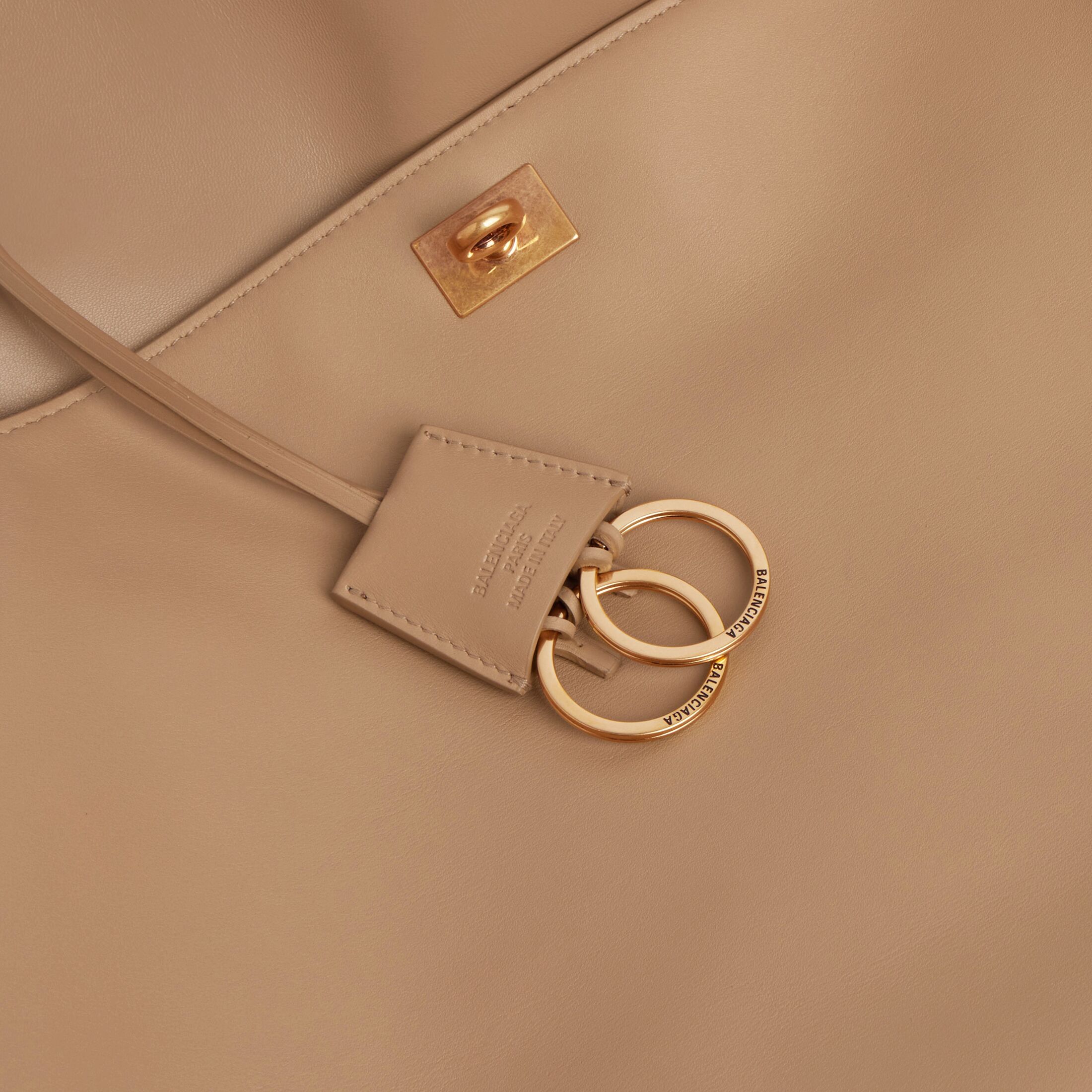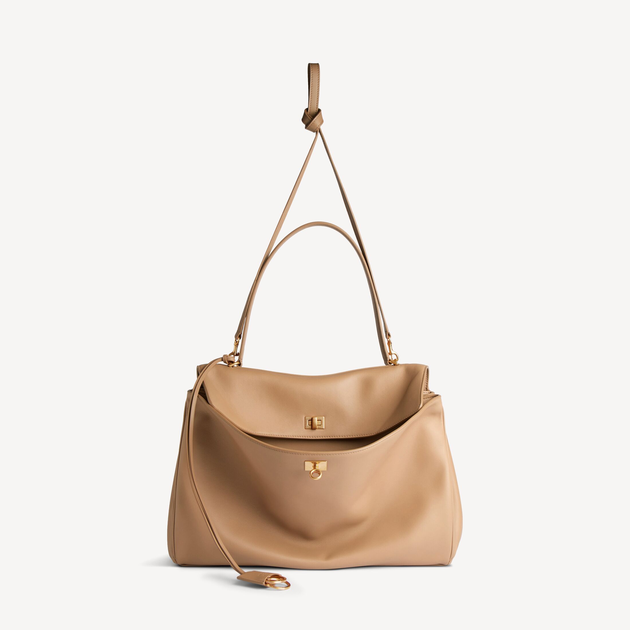 Rodeo拿铁色光滑牛皮革大号手提包,饰以做旧金色金属配件此商品支持花呗分期