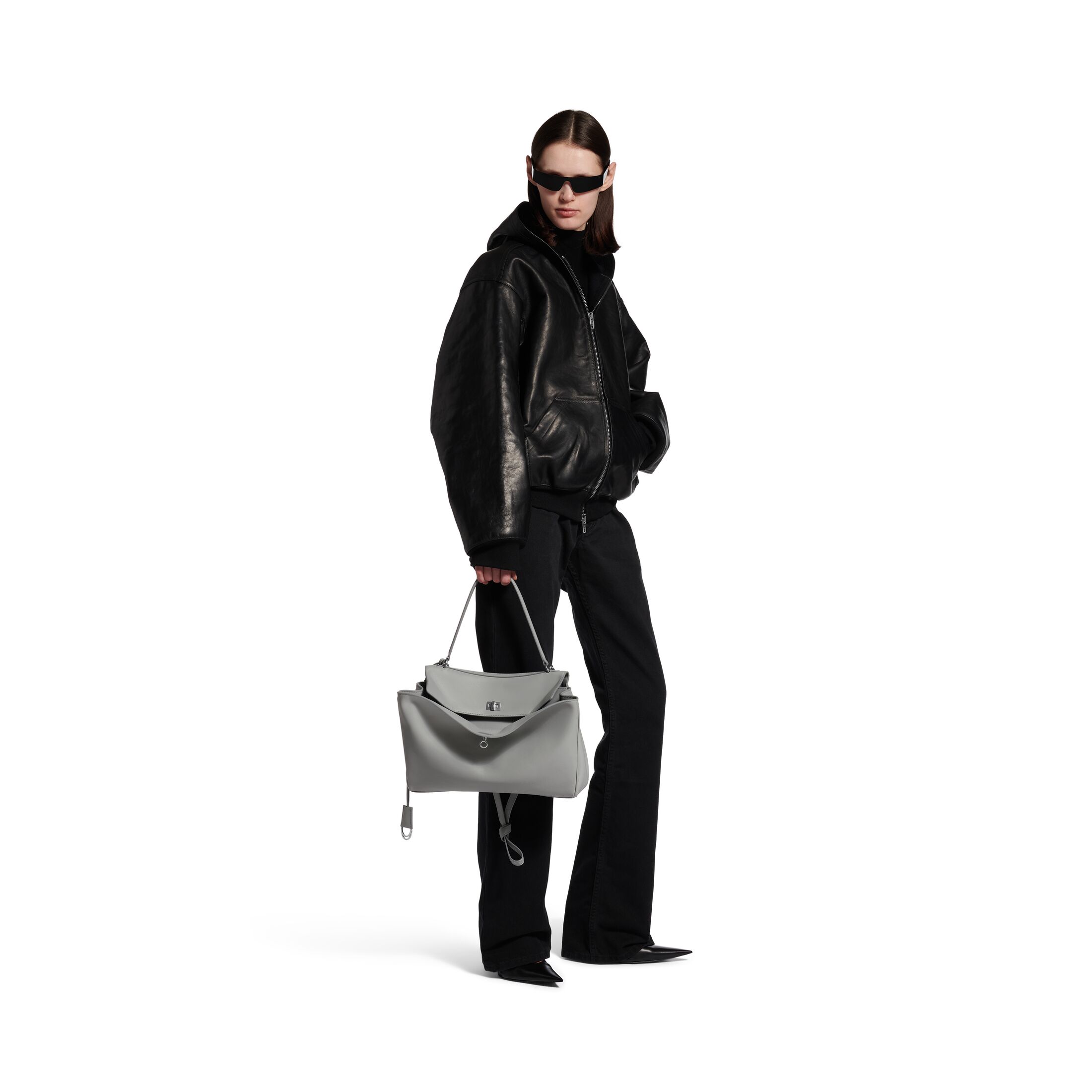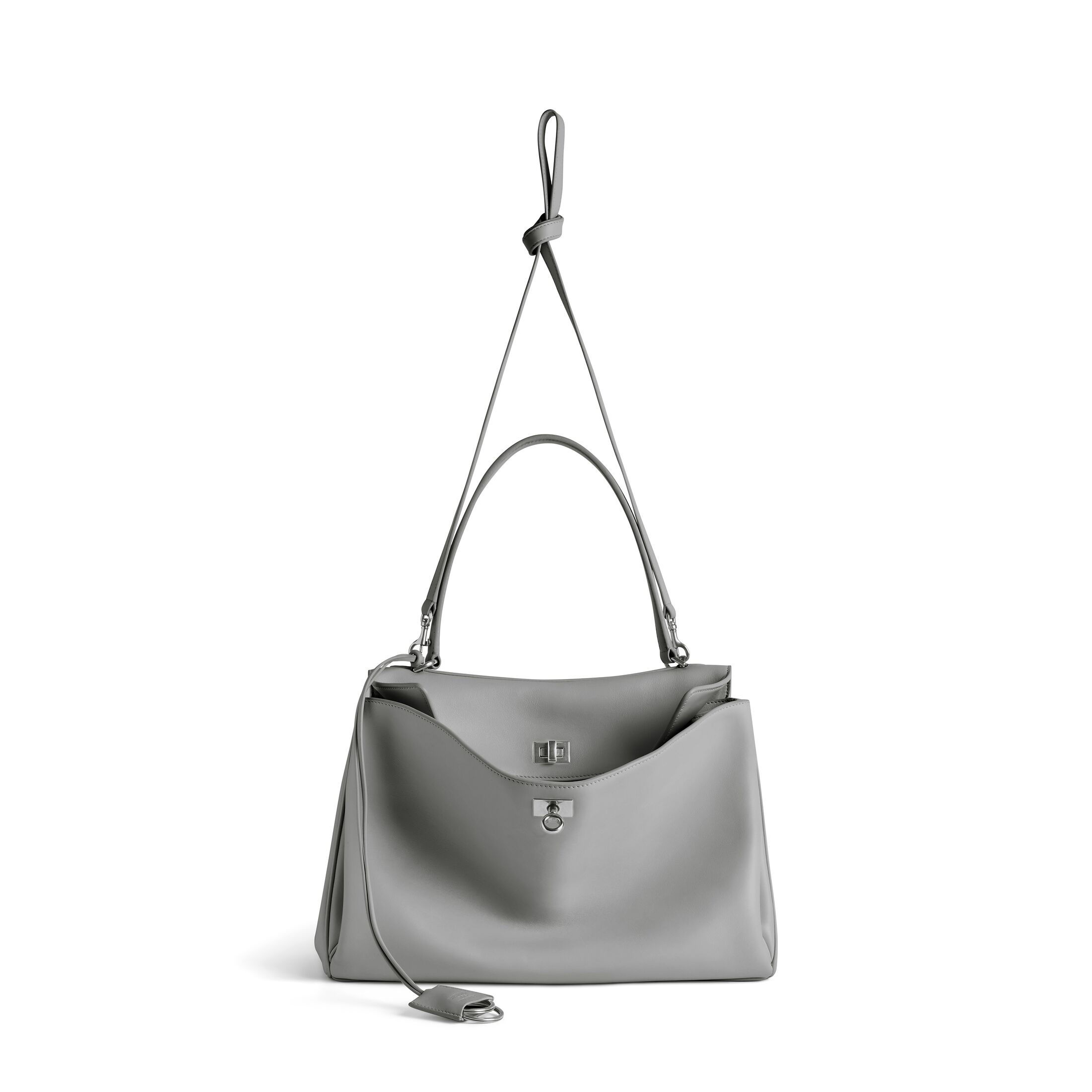 Rodeo云灰色光滑牛皮革中号手提包,饰以做旧银色金属配件此商品支持花呗分期• 光滑牛皮革