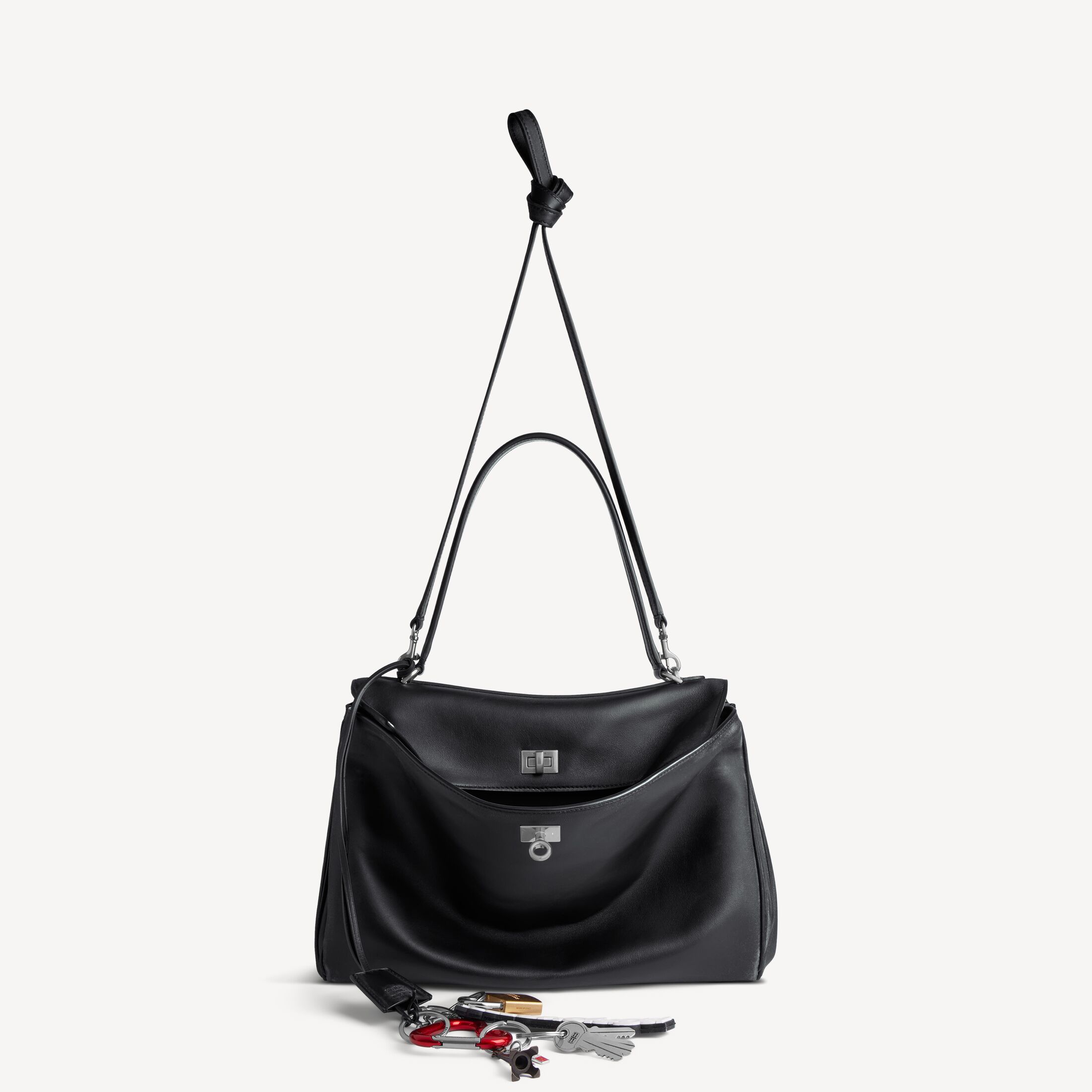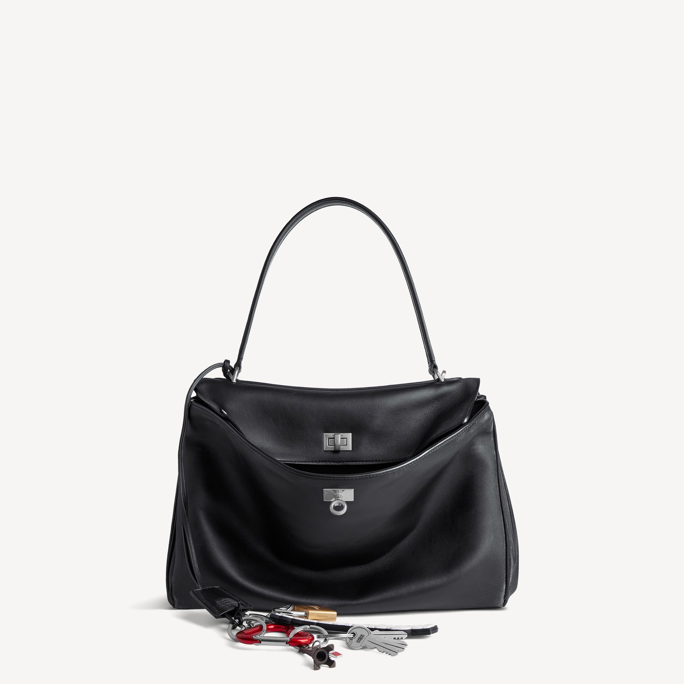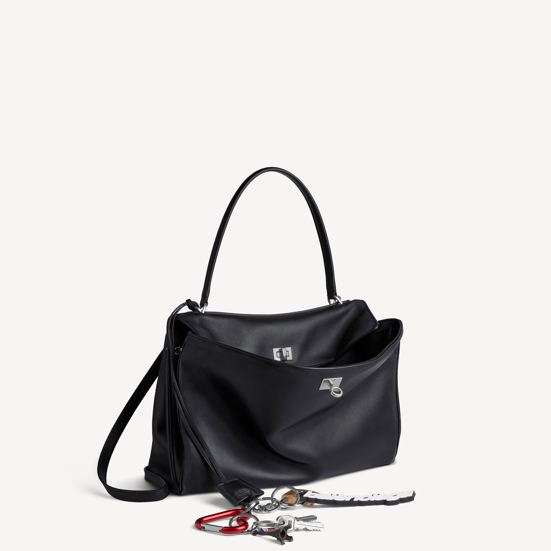 Rodeo黑色做旧光滑牛皮革中号手提包,饰以多个吊坠和做旧银色金属配件此商品支持花呗分期产品细节