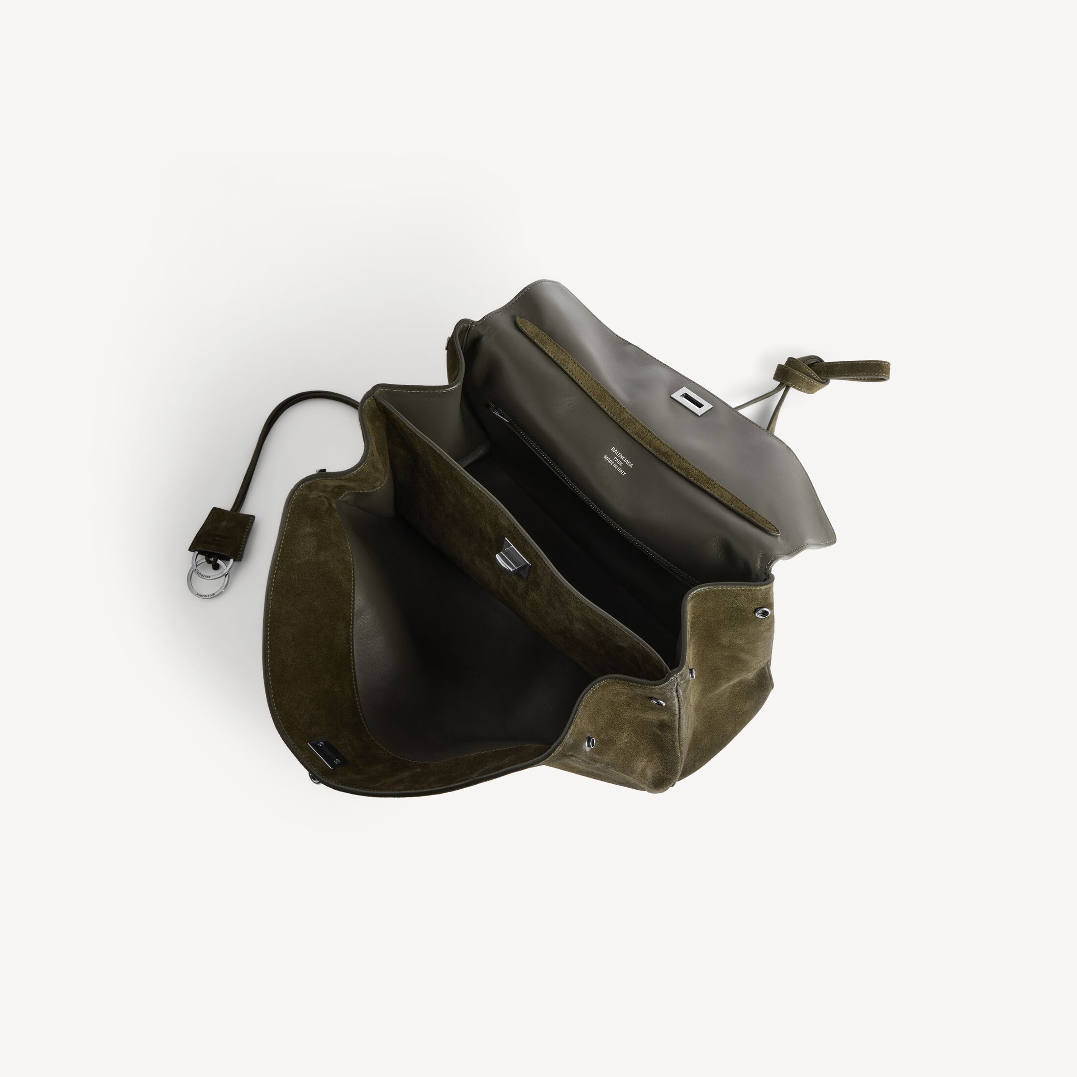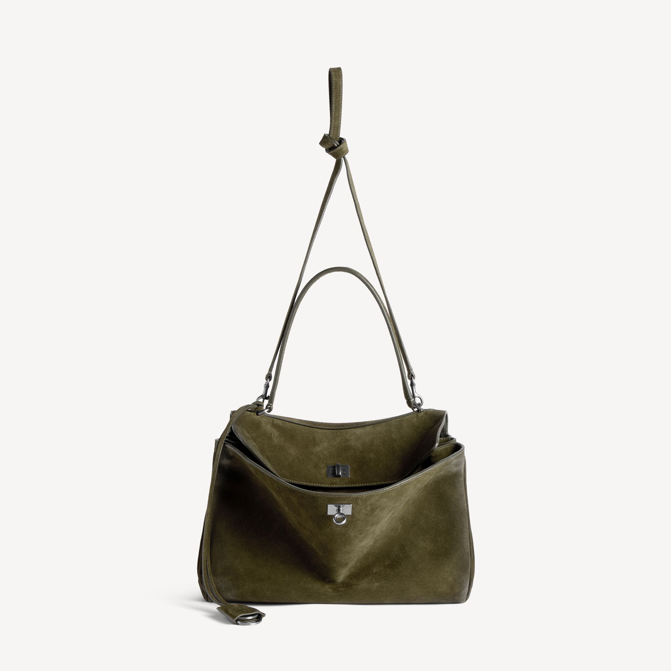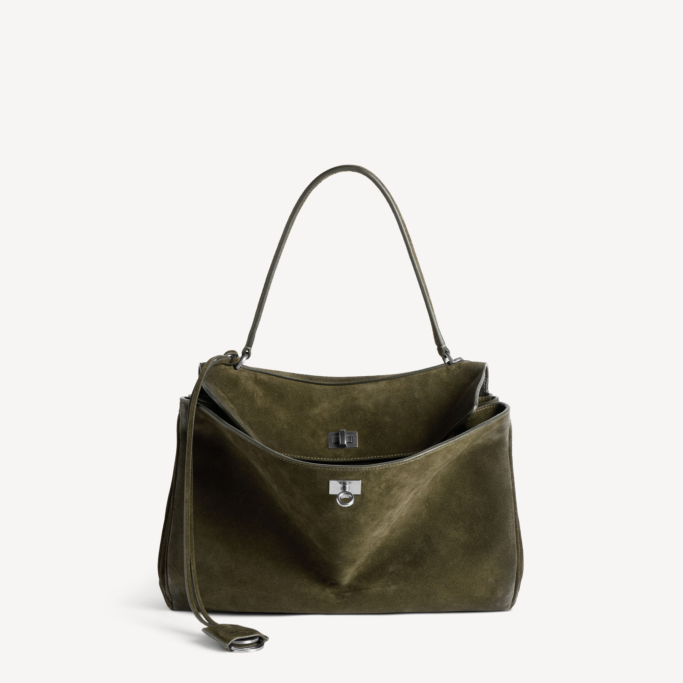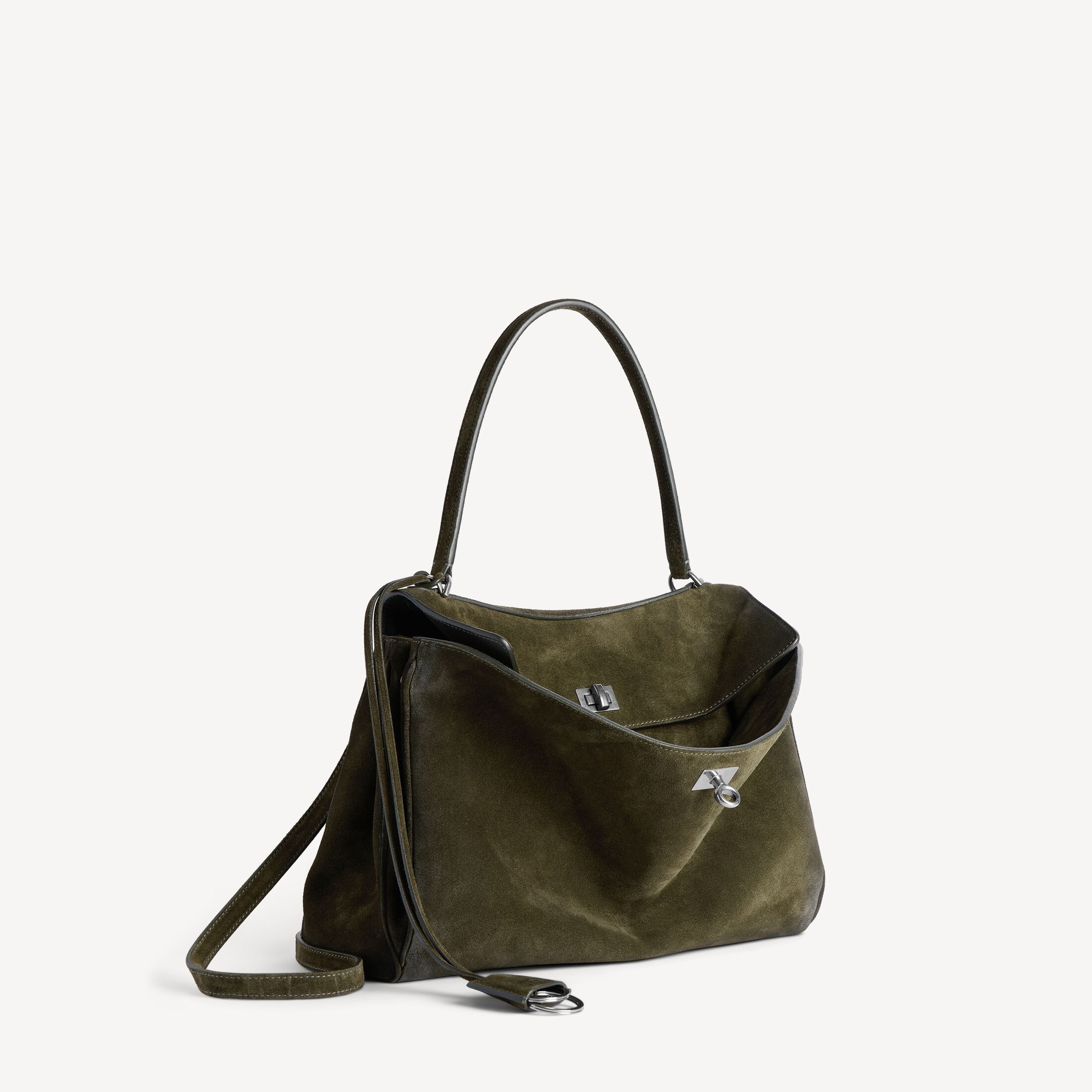 Rodeo卡其褐色蜡处理绒面牛皮革和光滑牛皮革中号手提包,饰以做旧银色金属配件此商品支持花呗分期