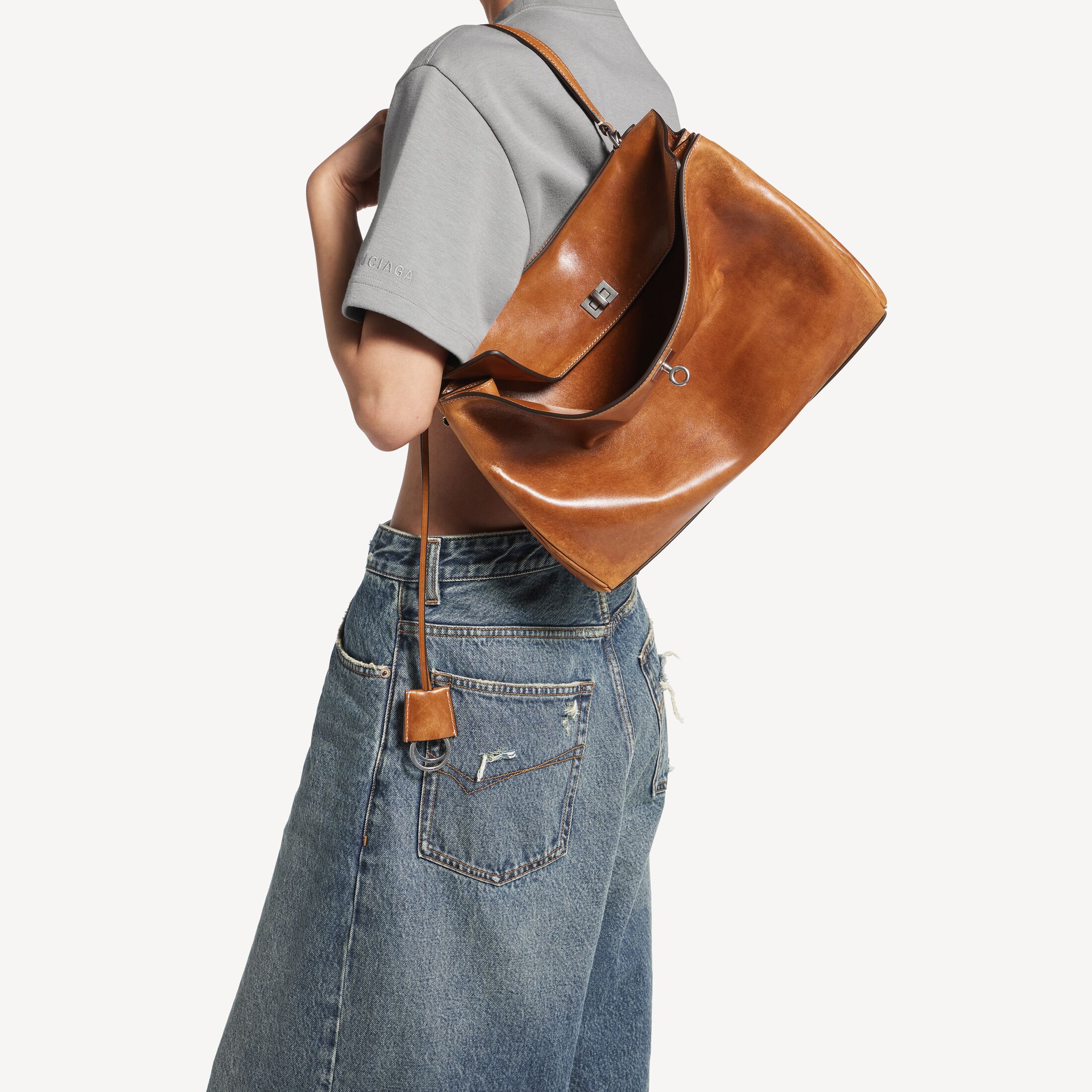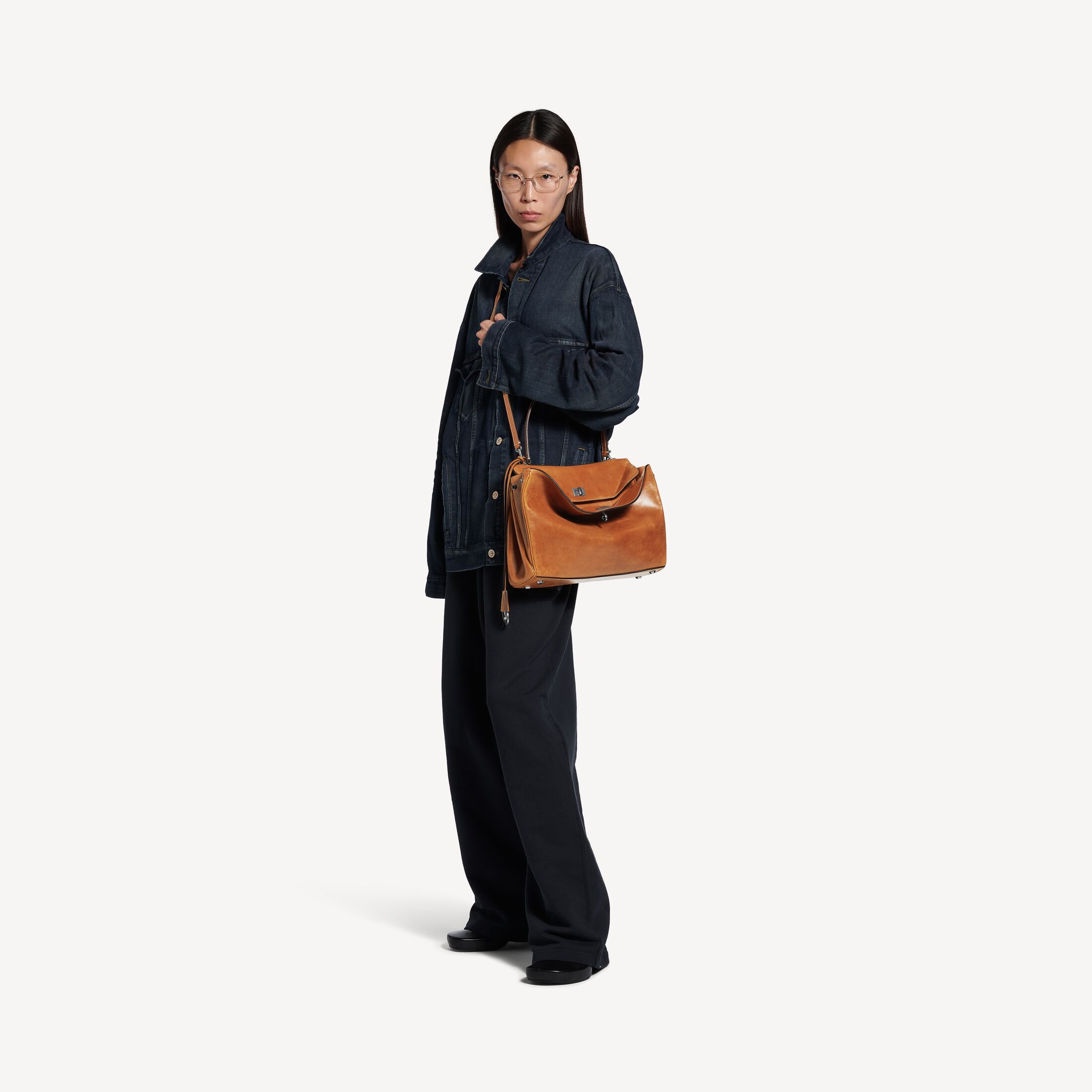 Rodeo棕褐色牛仔植鞣羊皮革中号手提包,饰以做旧银色金属配件此商品支持花呗分期• 植鞣羊皮革