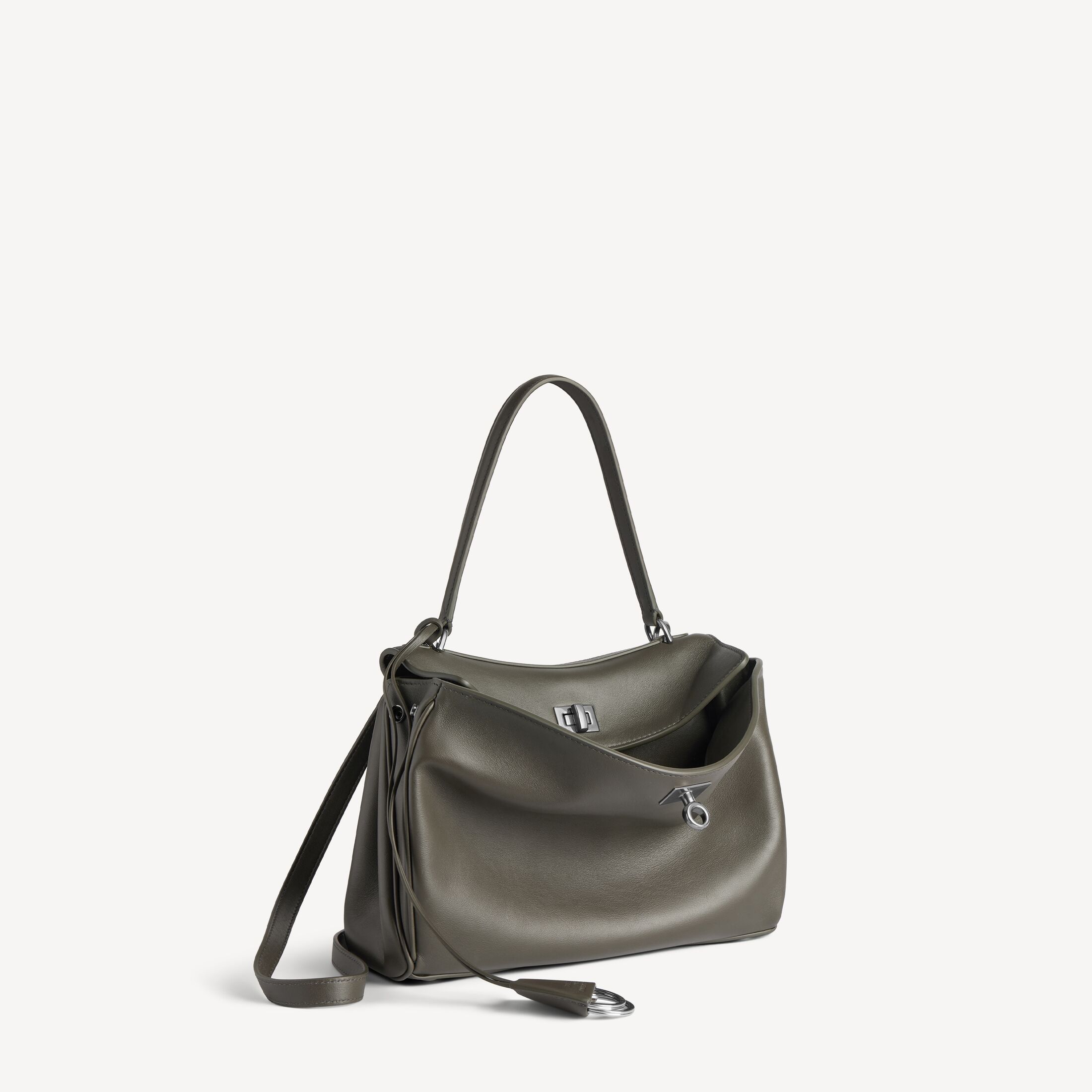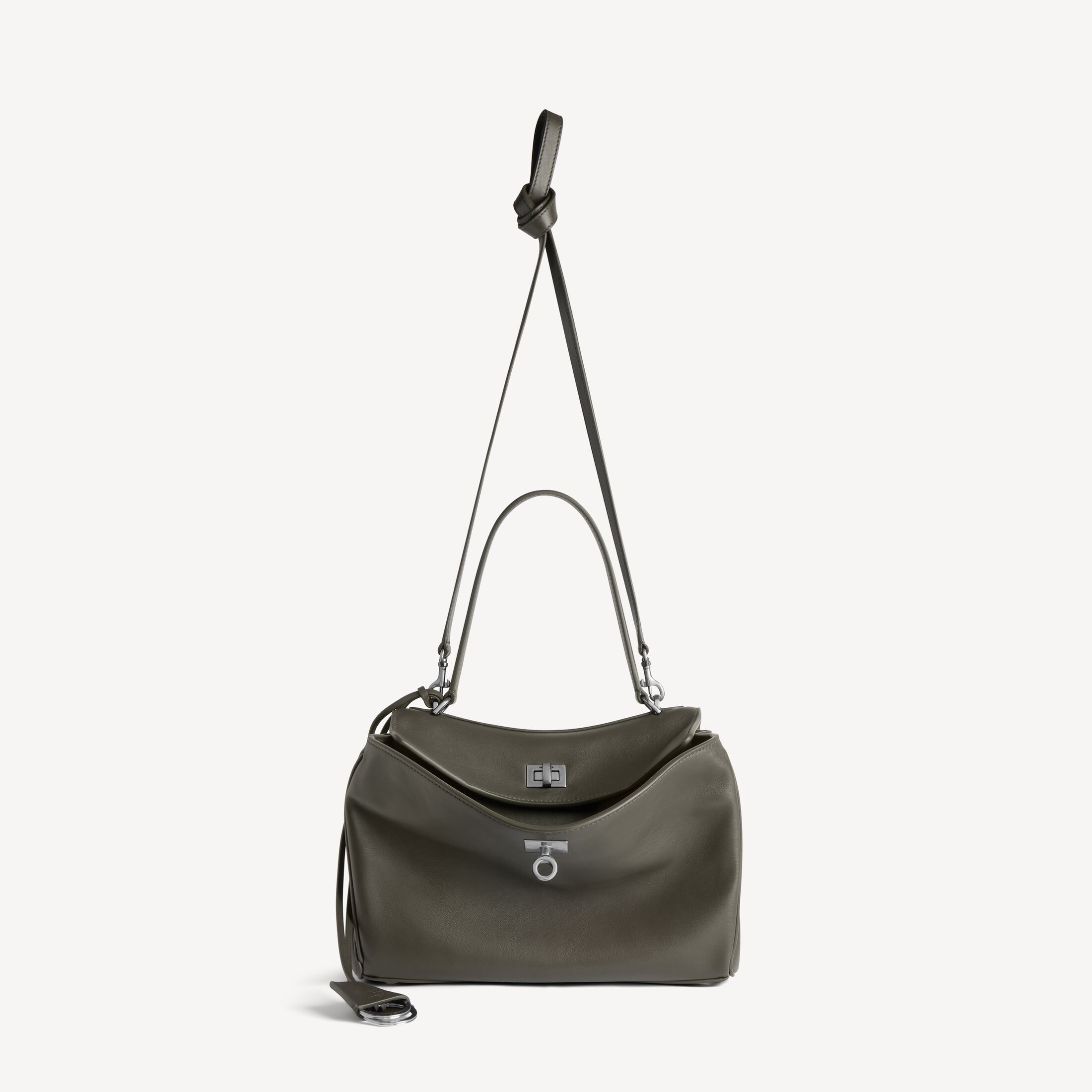 Rodeo卡其褐色光滑牛皮革小号手提包,饰以做旧银色金属配件此商品支持花呗分期