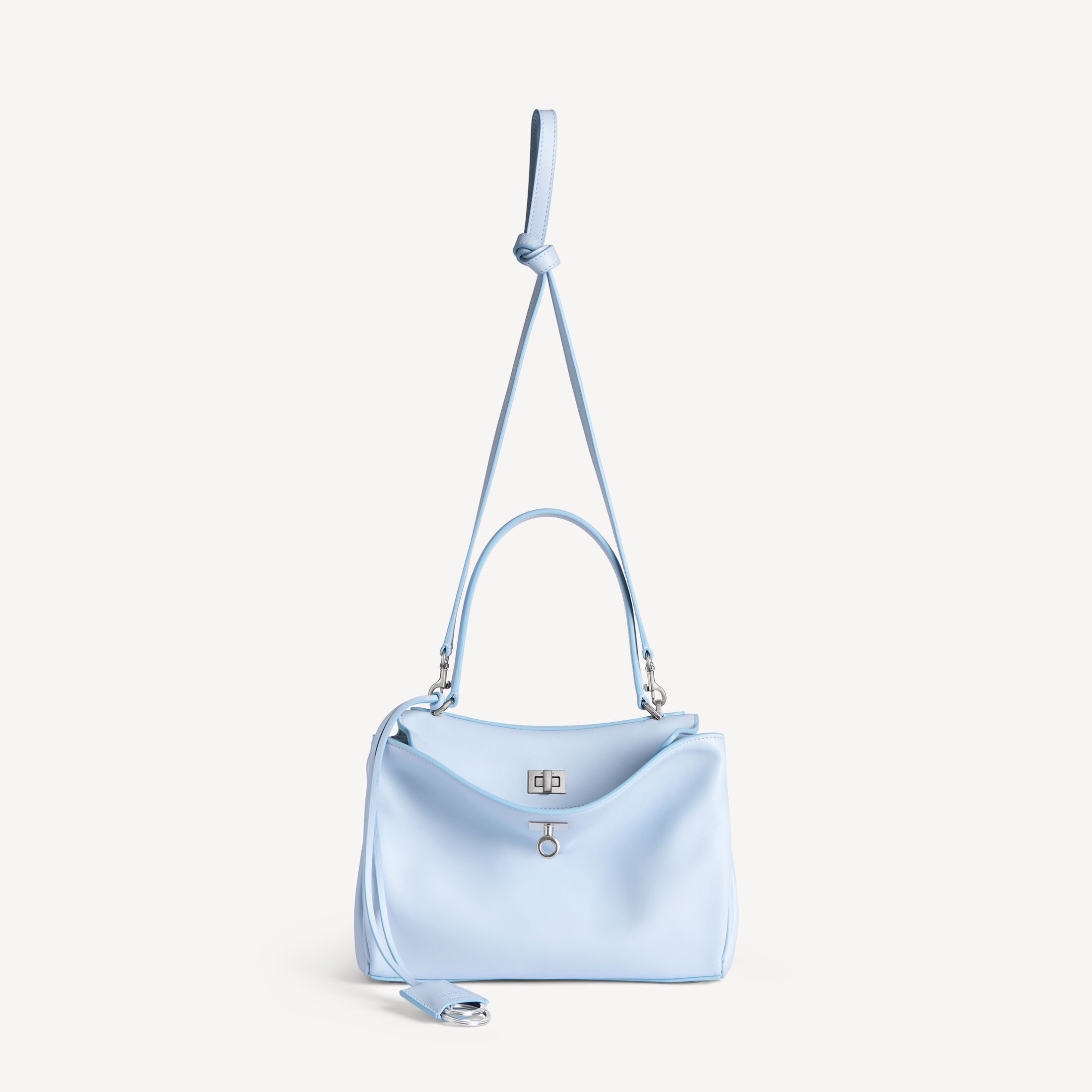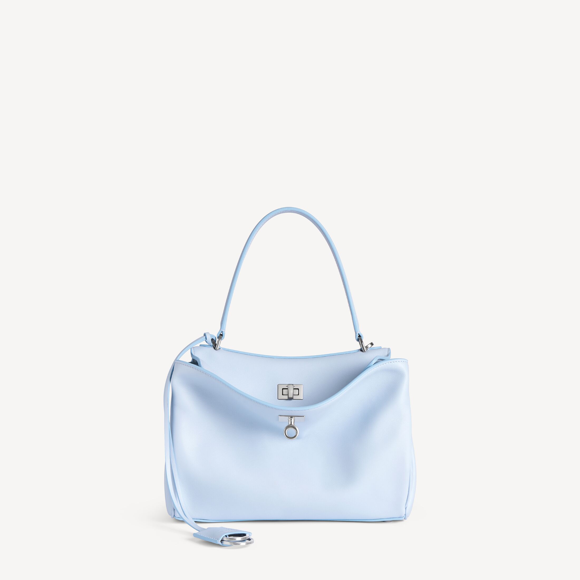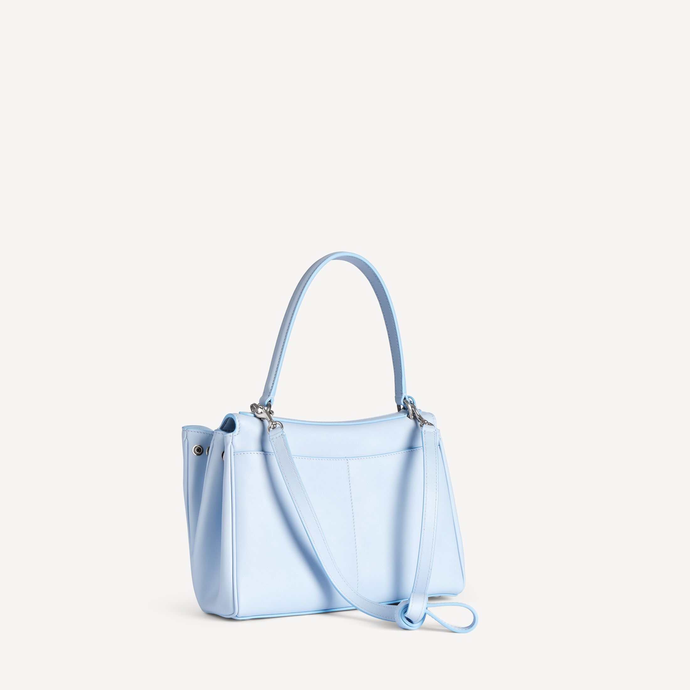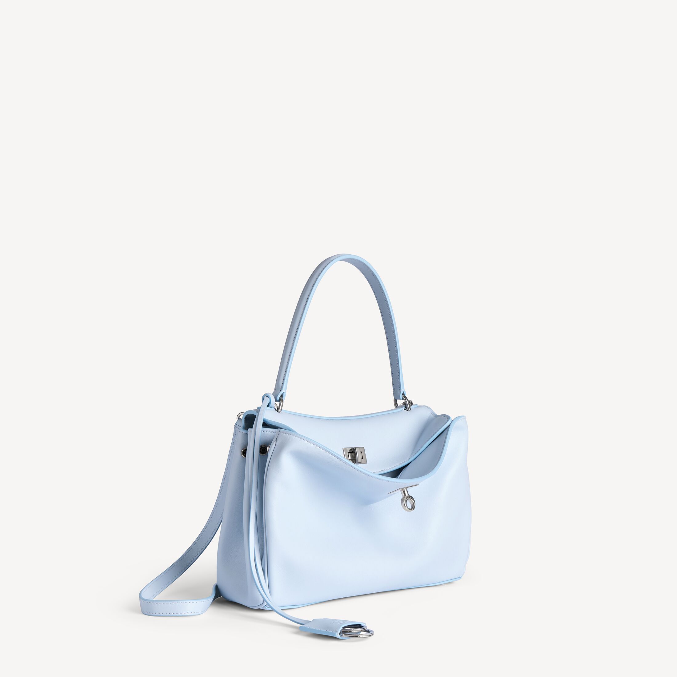 Rodeo云蓝色光滑牛皮革小号手提包,饰以做旧银色金属配件此商品支持花呗分期• 光滑牛皮革