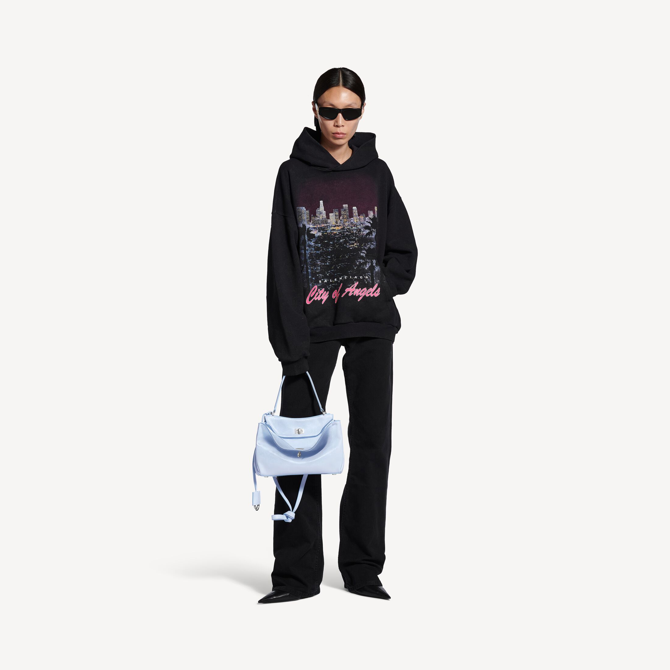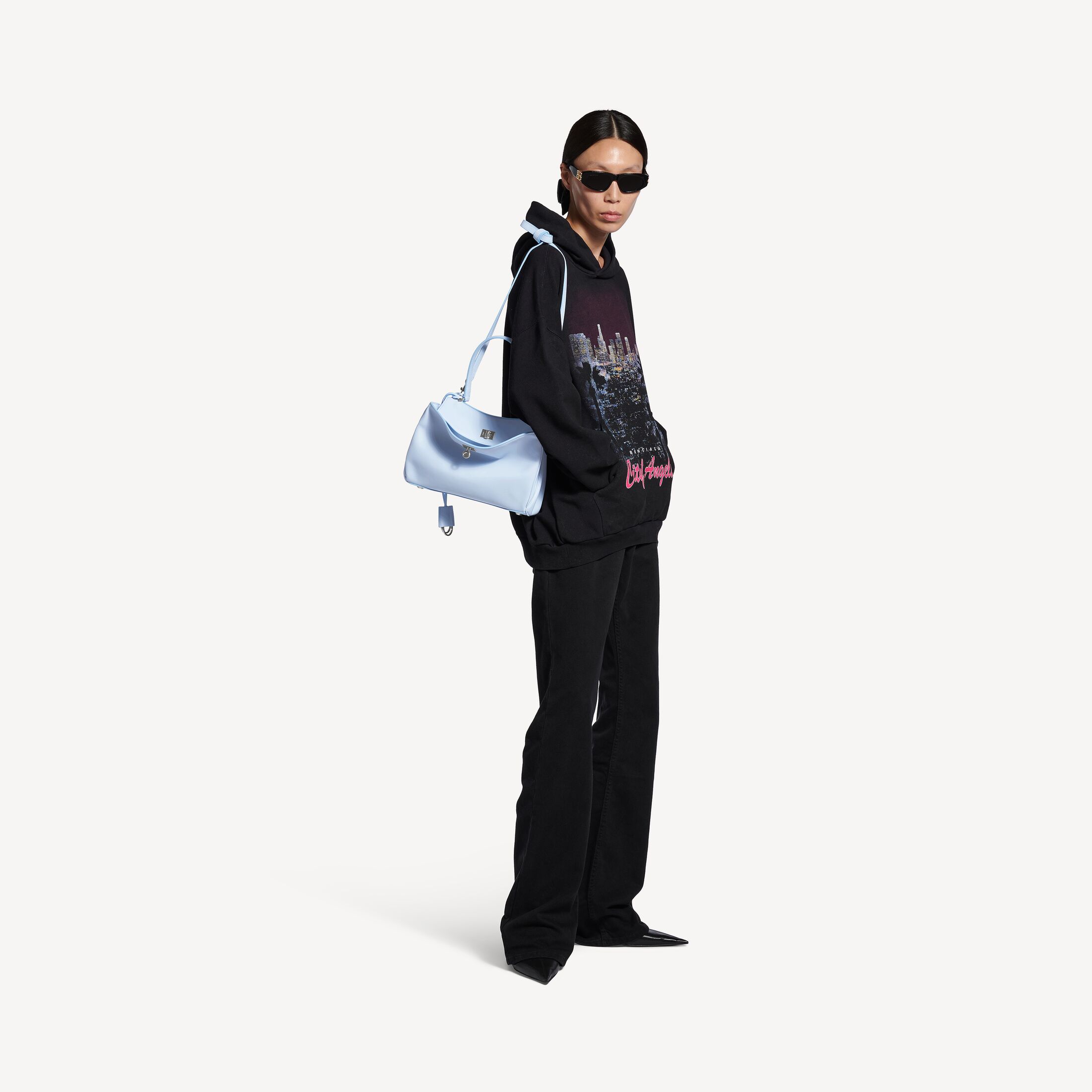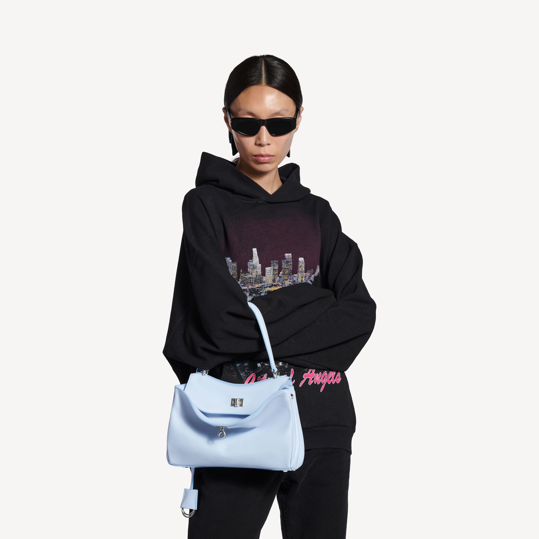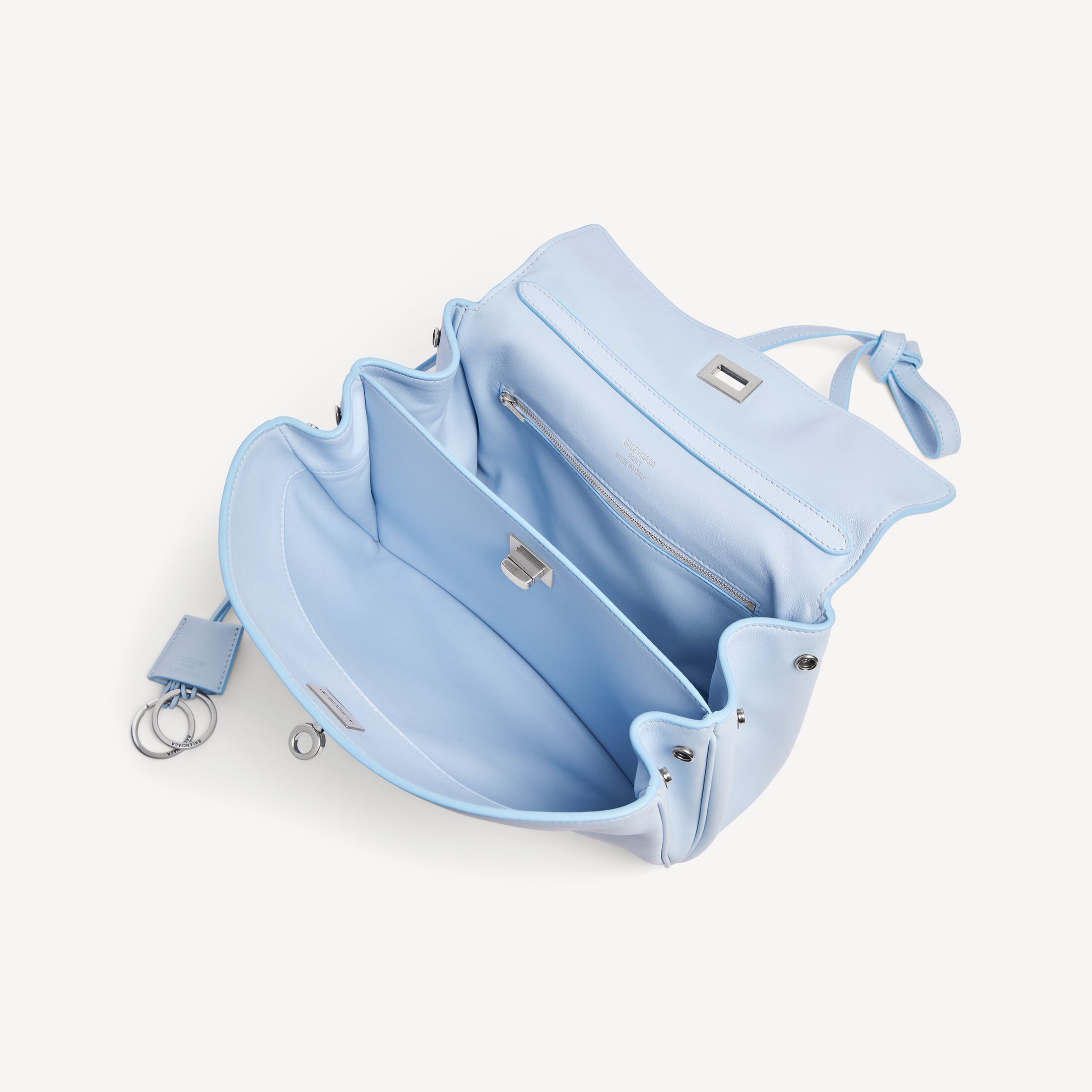 Rodeo云蓝色光滑牛皮革小号手提包,饰以做旧银色金属配件此商品支持花呗分期• 光滑牛皮革