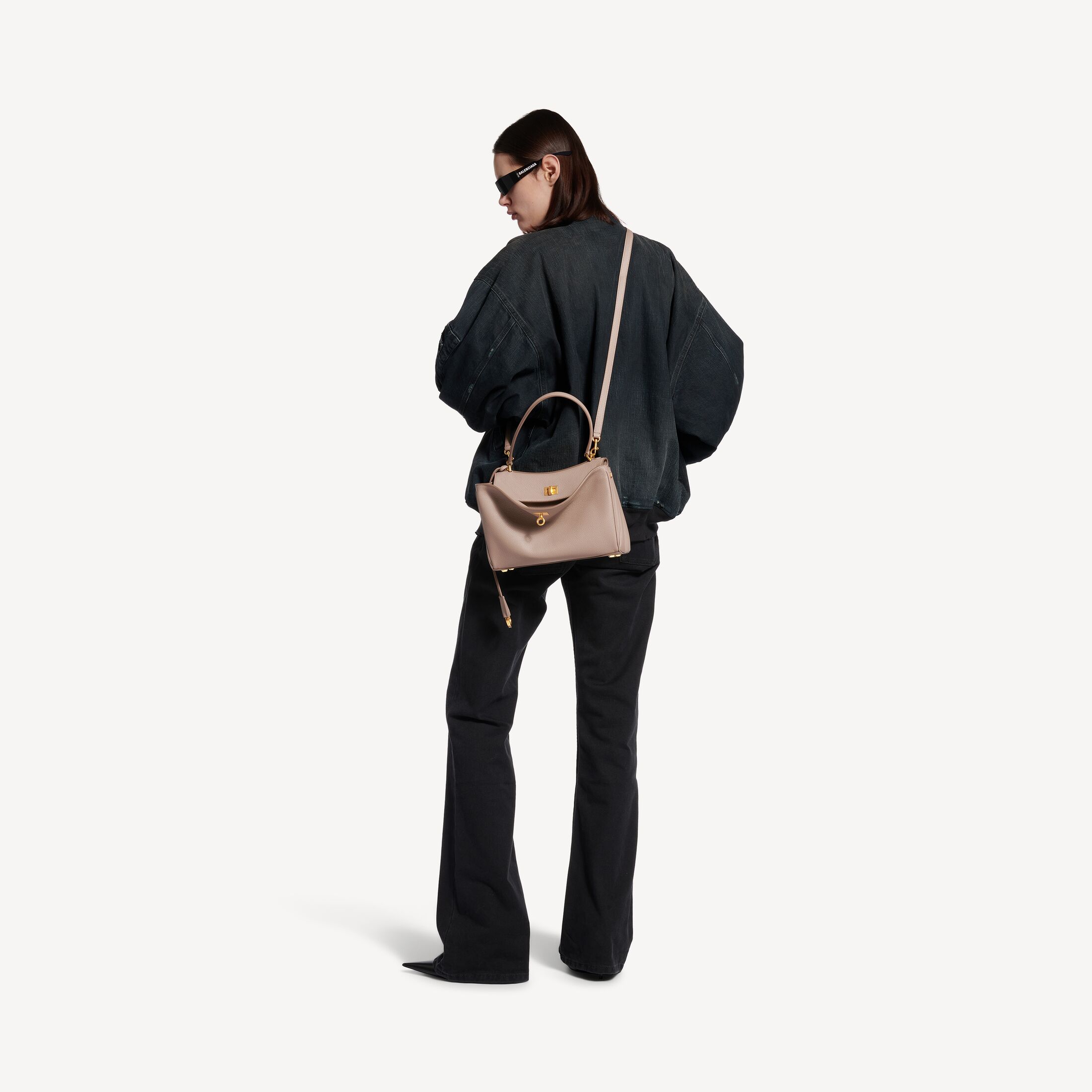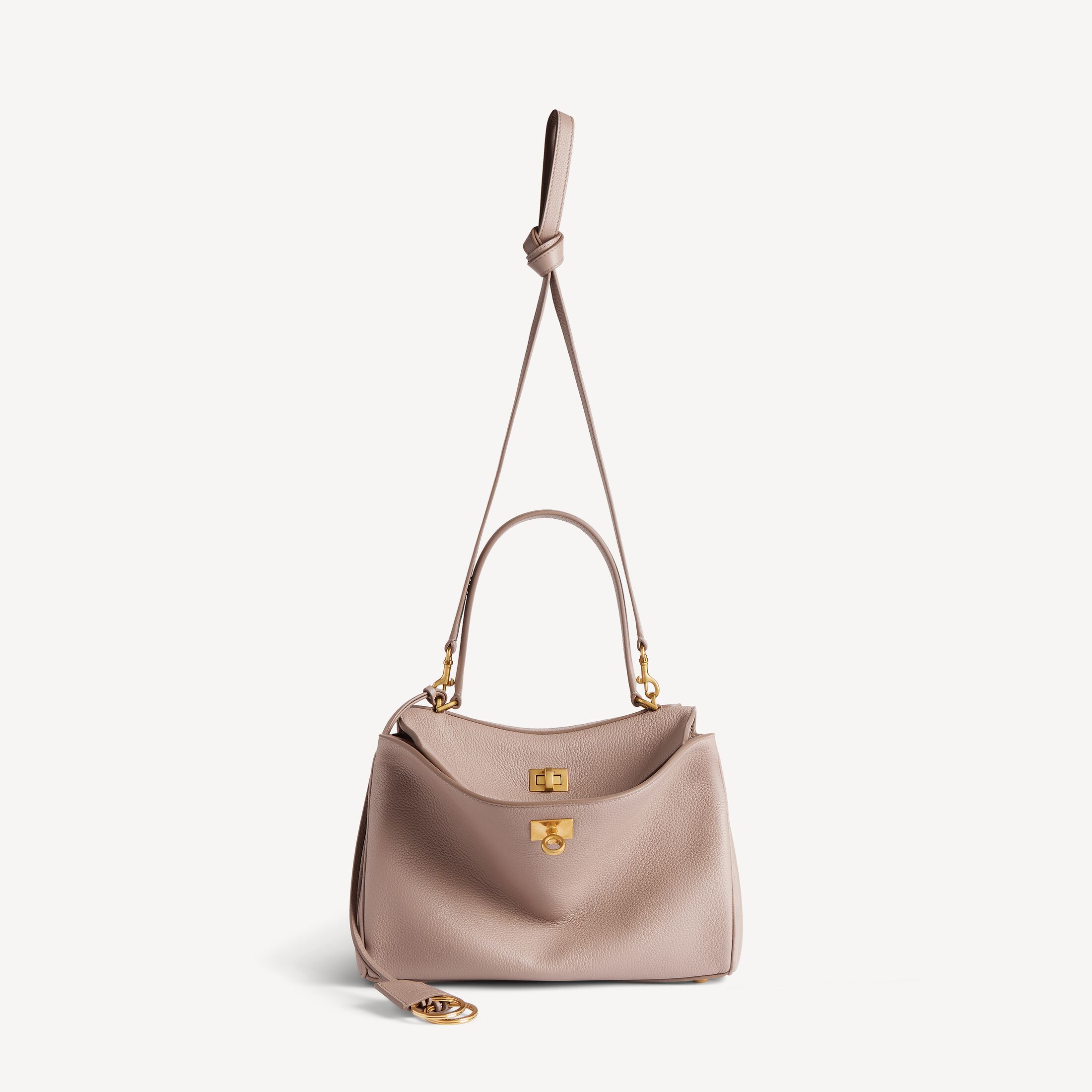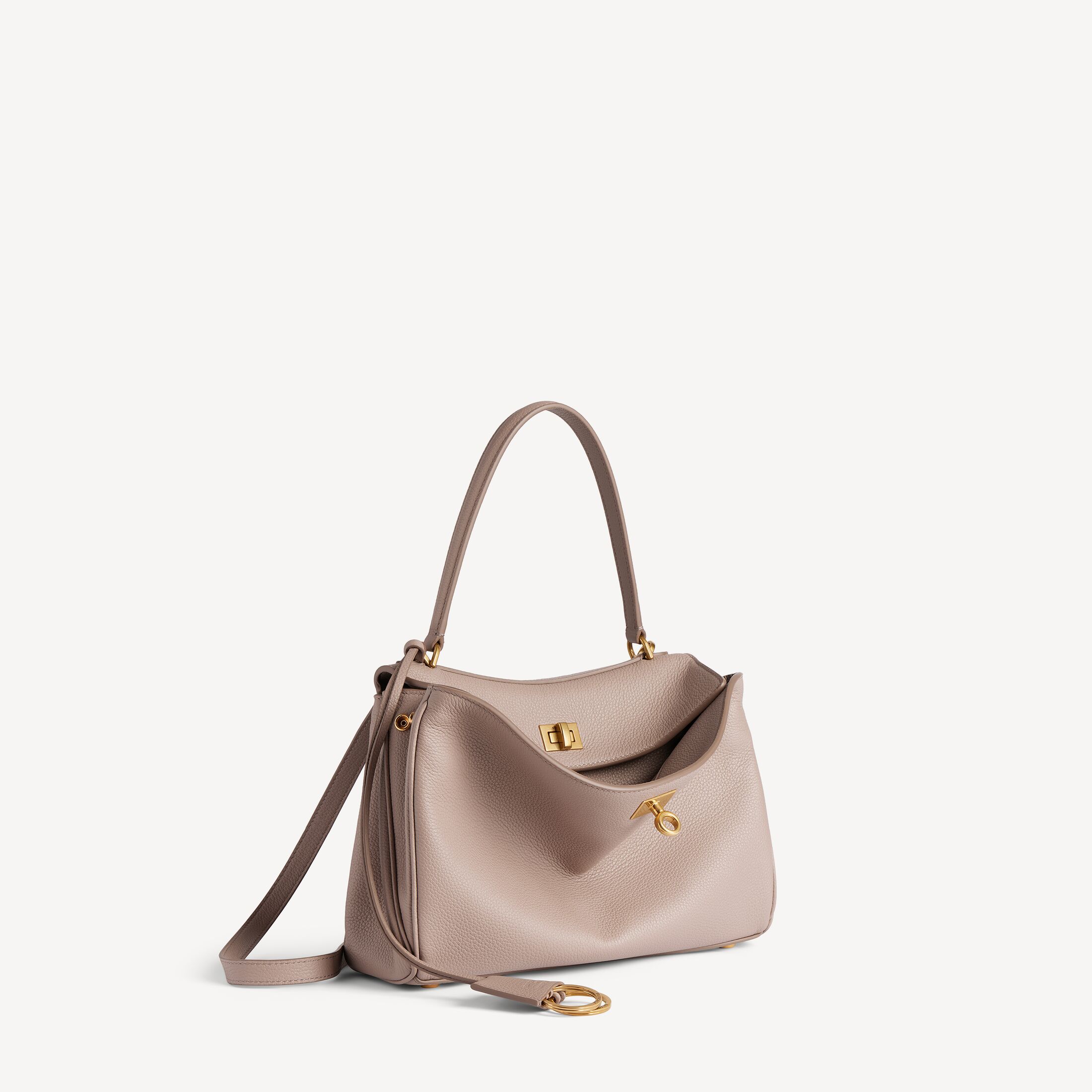 Rodeo芝麻色粒面牛皮革小号手提包,饰以做旧金色金属配件 此商品支持花呗分期• 粒面牛皮革