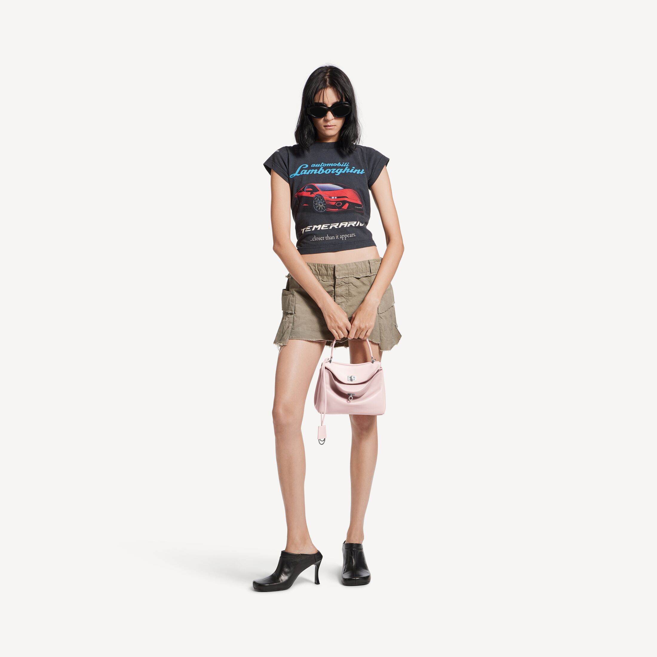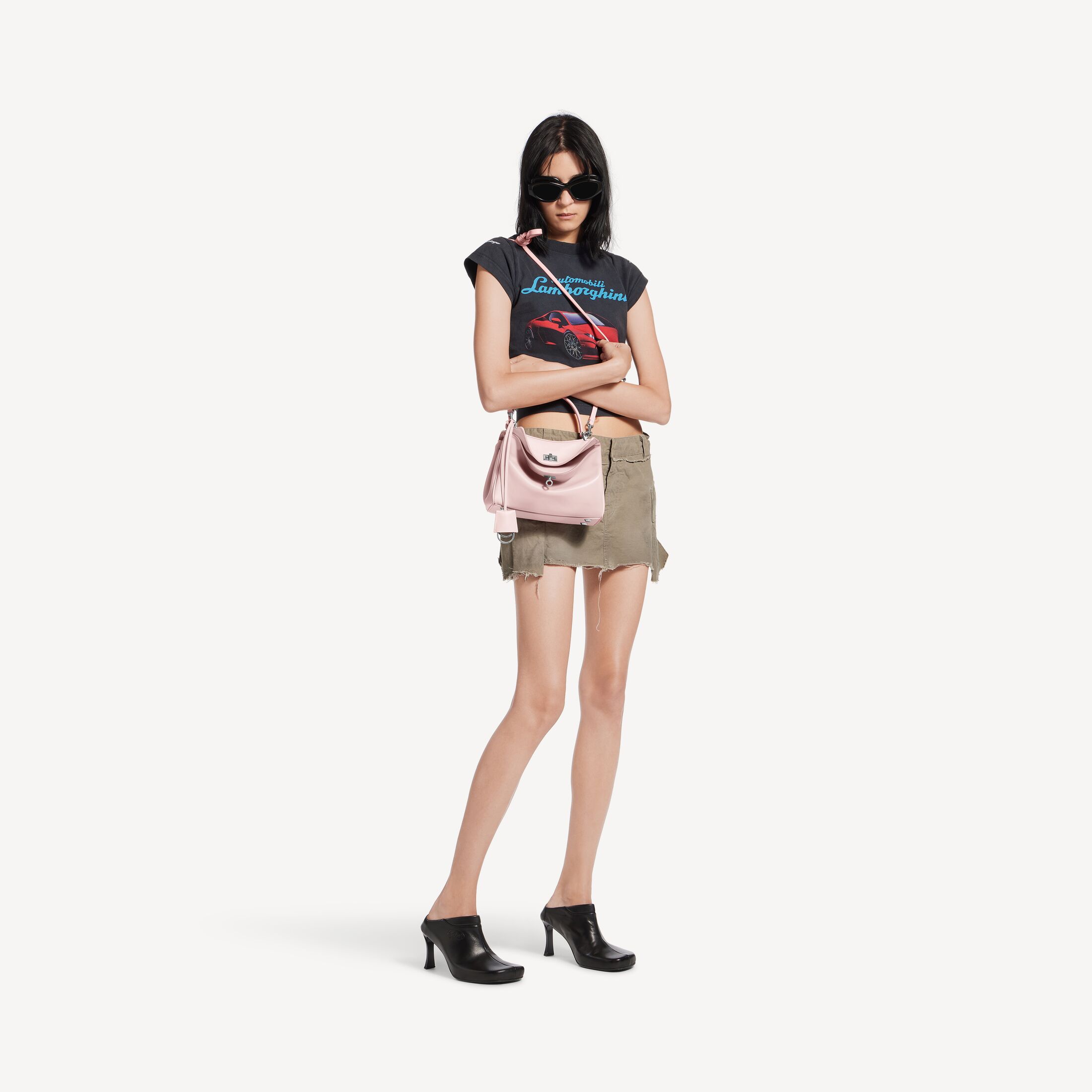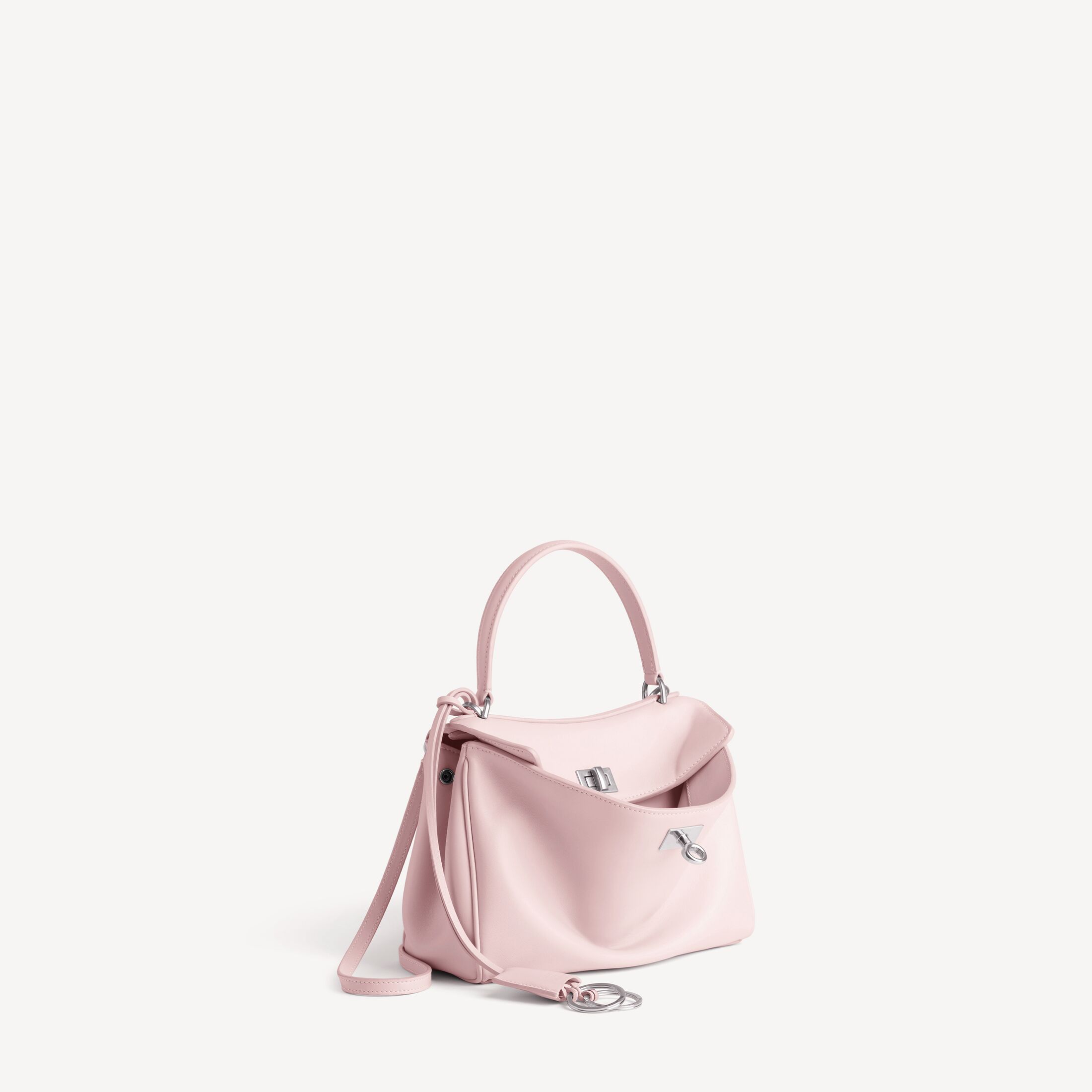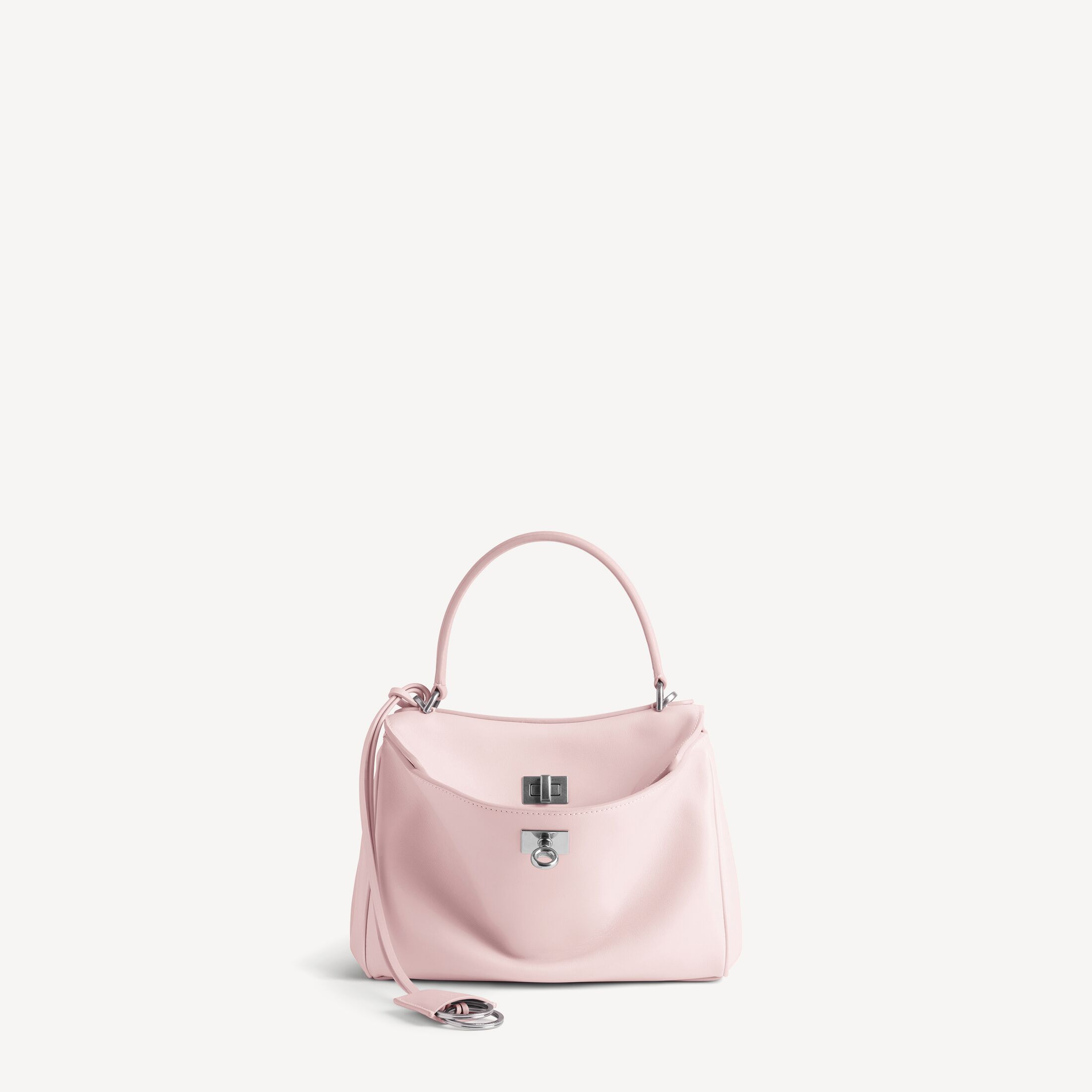 Rodeo柔粉色光滑牛皮革迷你手提包,饰以做旧银色金属配件 此商品支持花呗分期• 光滑牛皮革