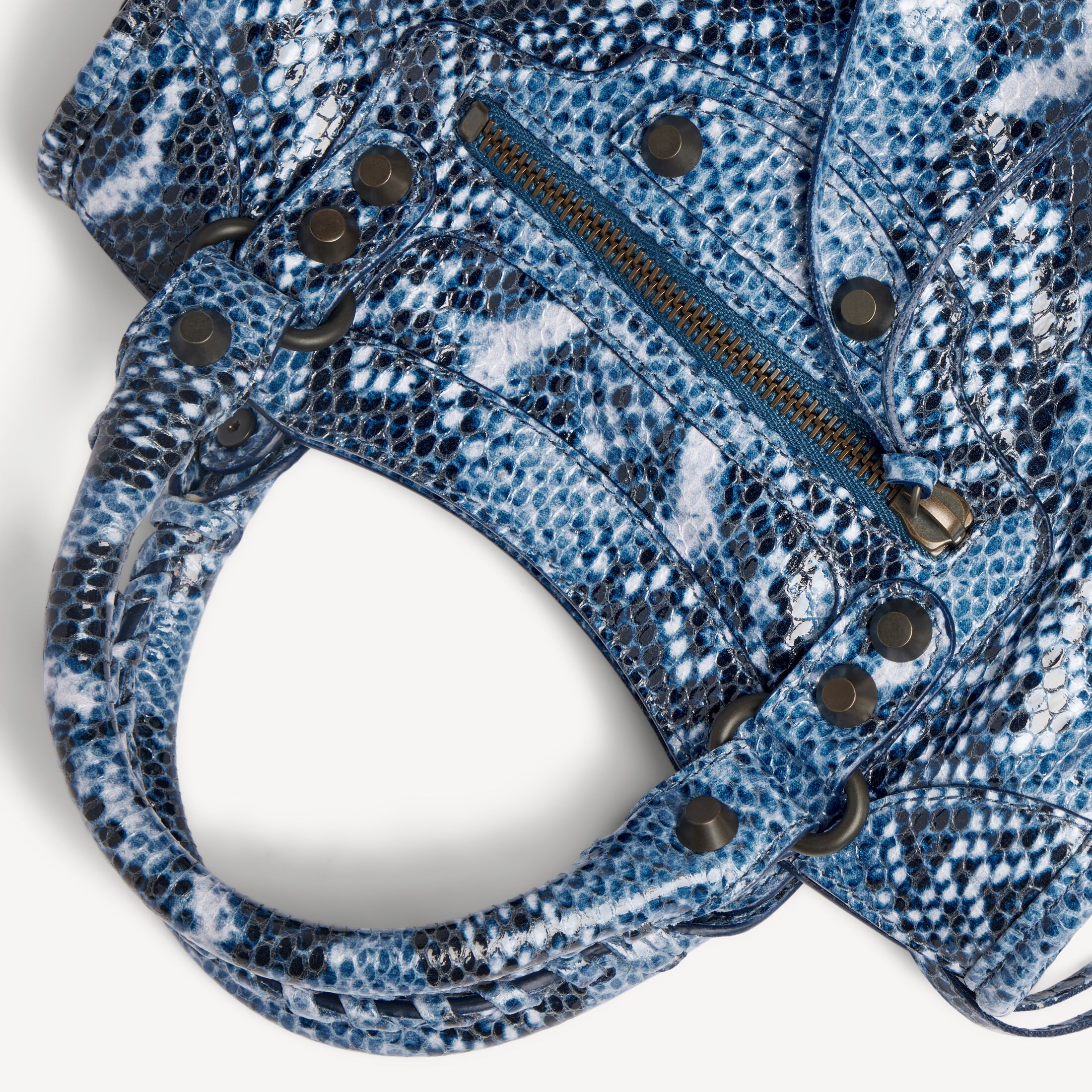 Le City蓝色蟒蛇纹压纹牛皮革迷你手袋,饰以黄铜金属配件此商品支持花呗分期