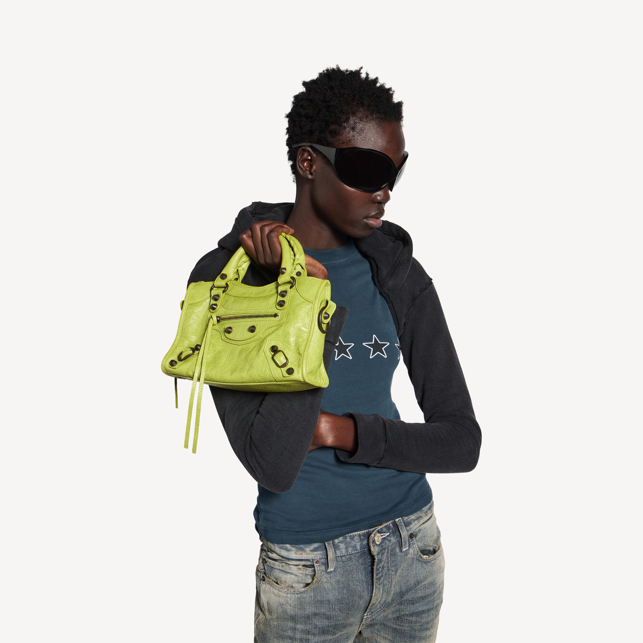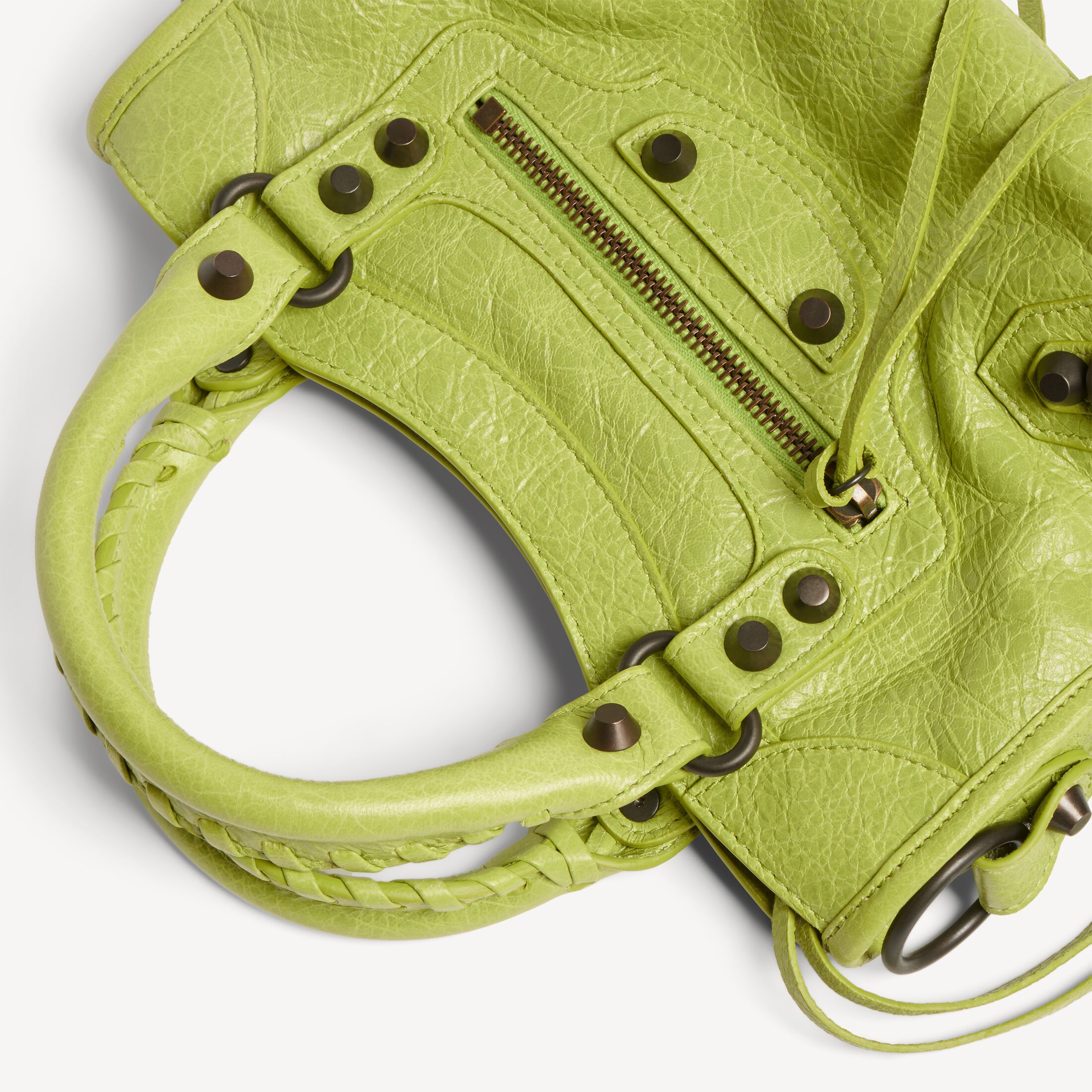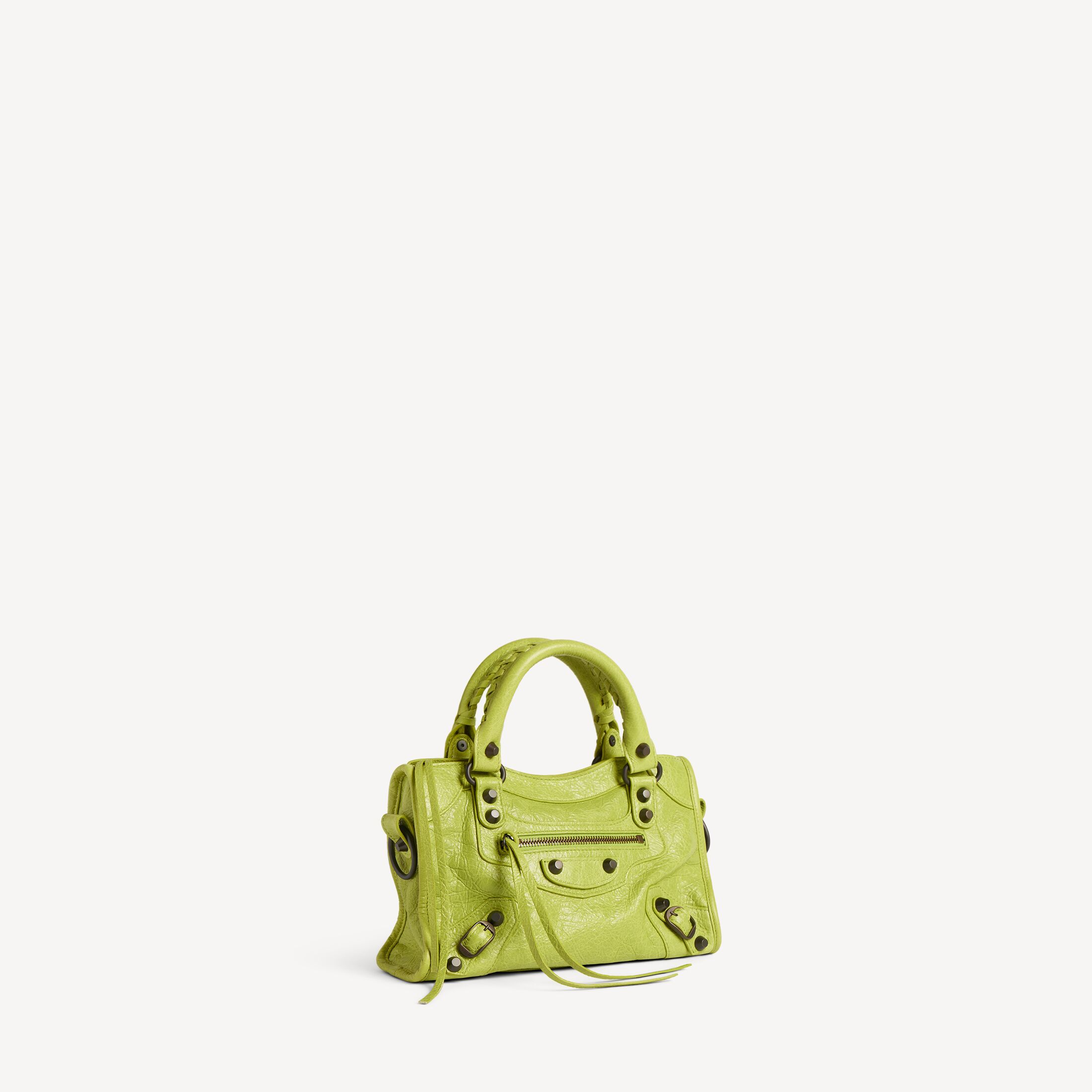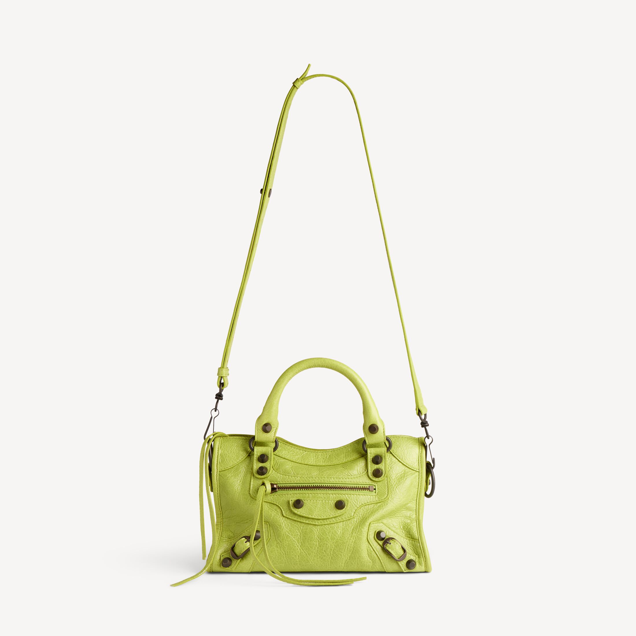 Le City开心果绿色细纹羊皮革迷你手袋,饰以黄铜金属配件此商品支持花呗分期产品细节