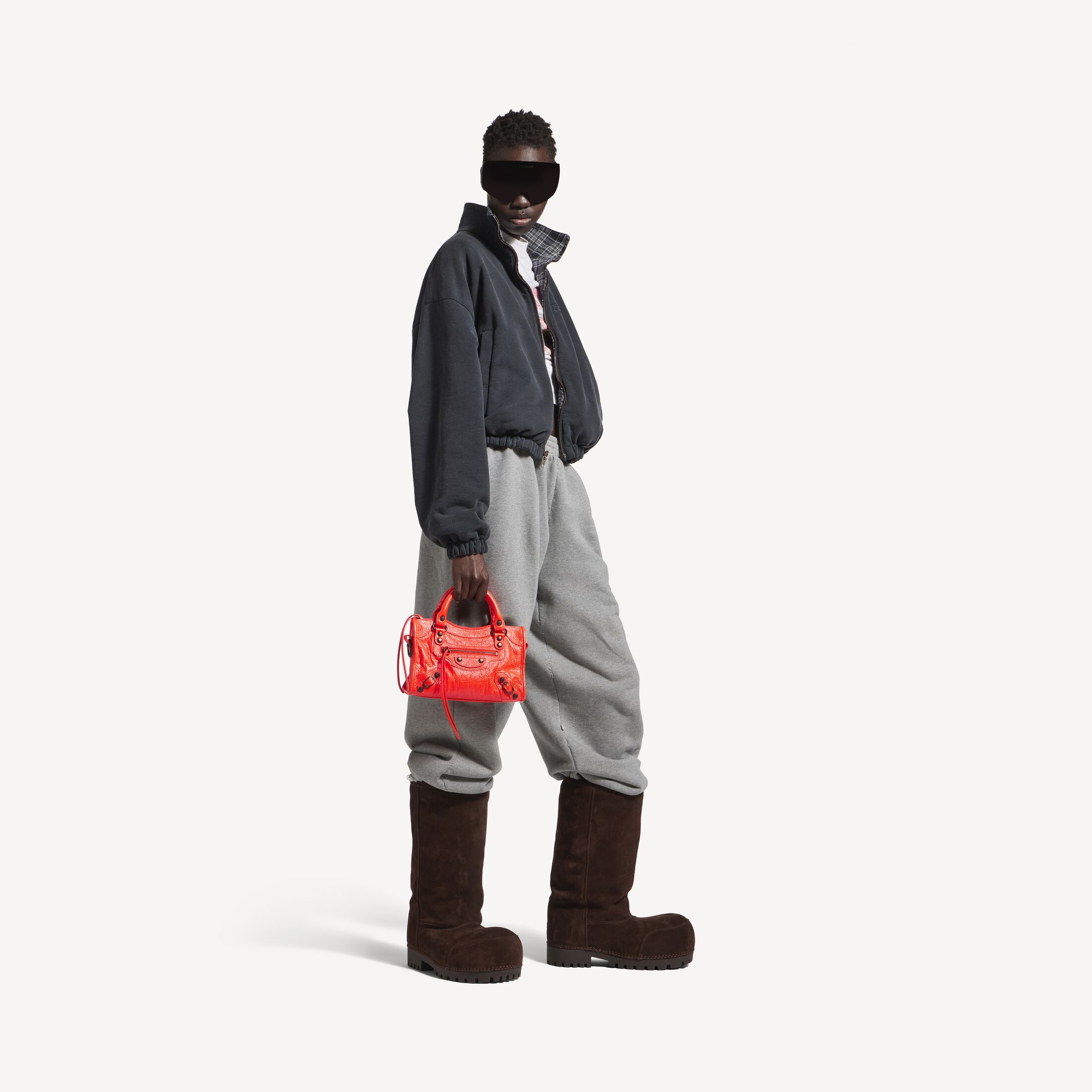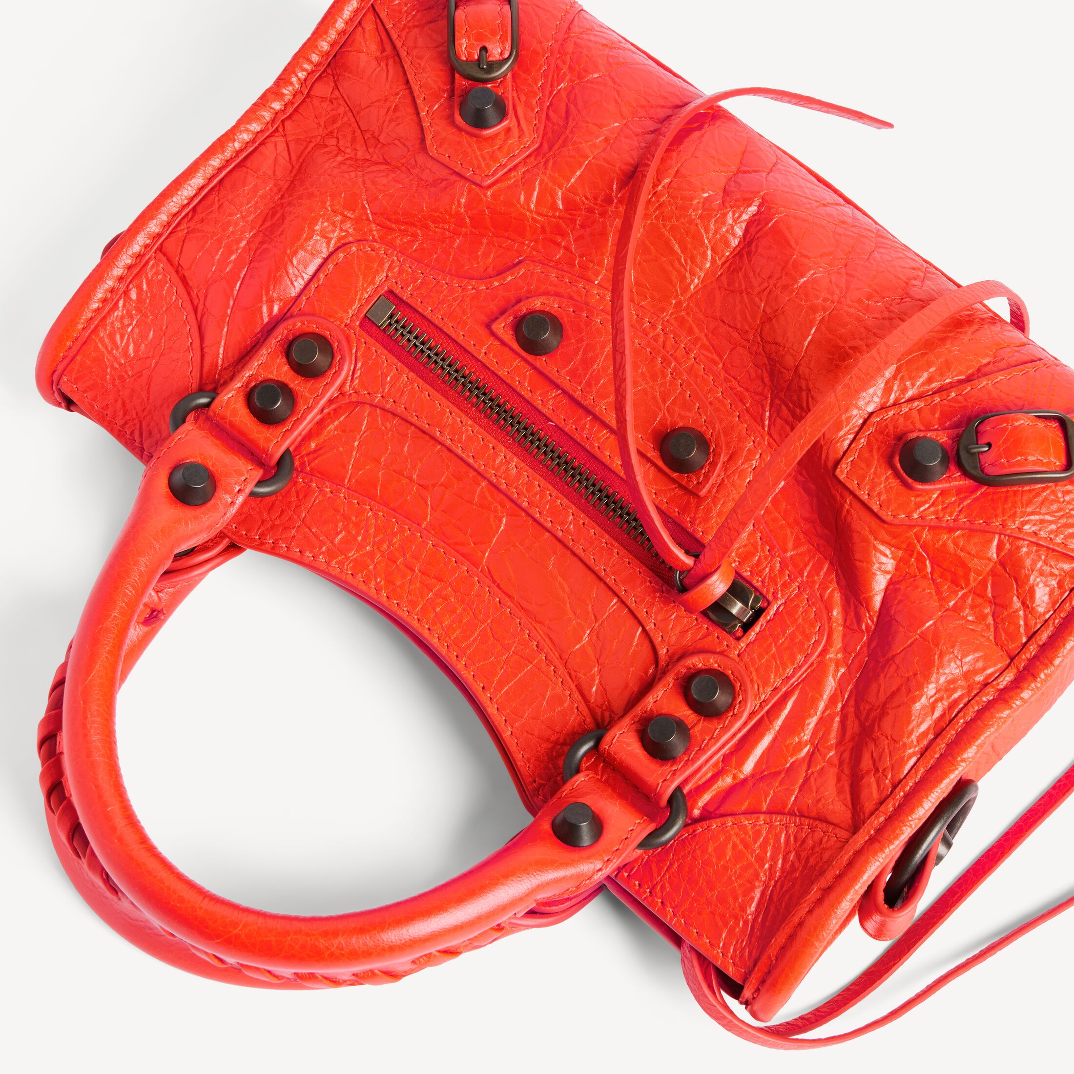 Le City活力橙色细纹羊皮革迷你手袋,饰以黄铜金属配件此商品支持花呗分期• 细纹羊皮革