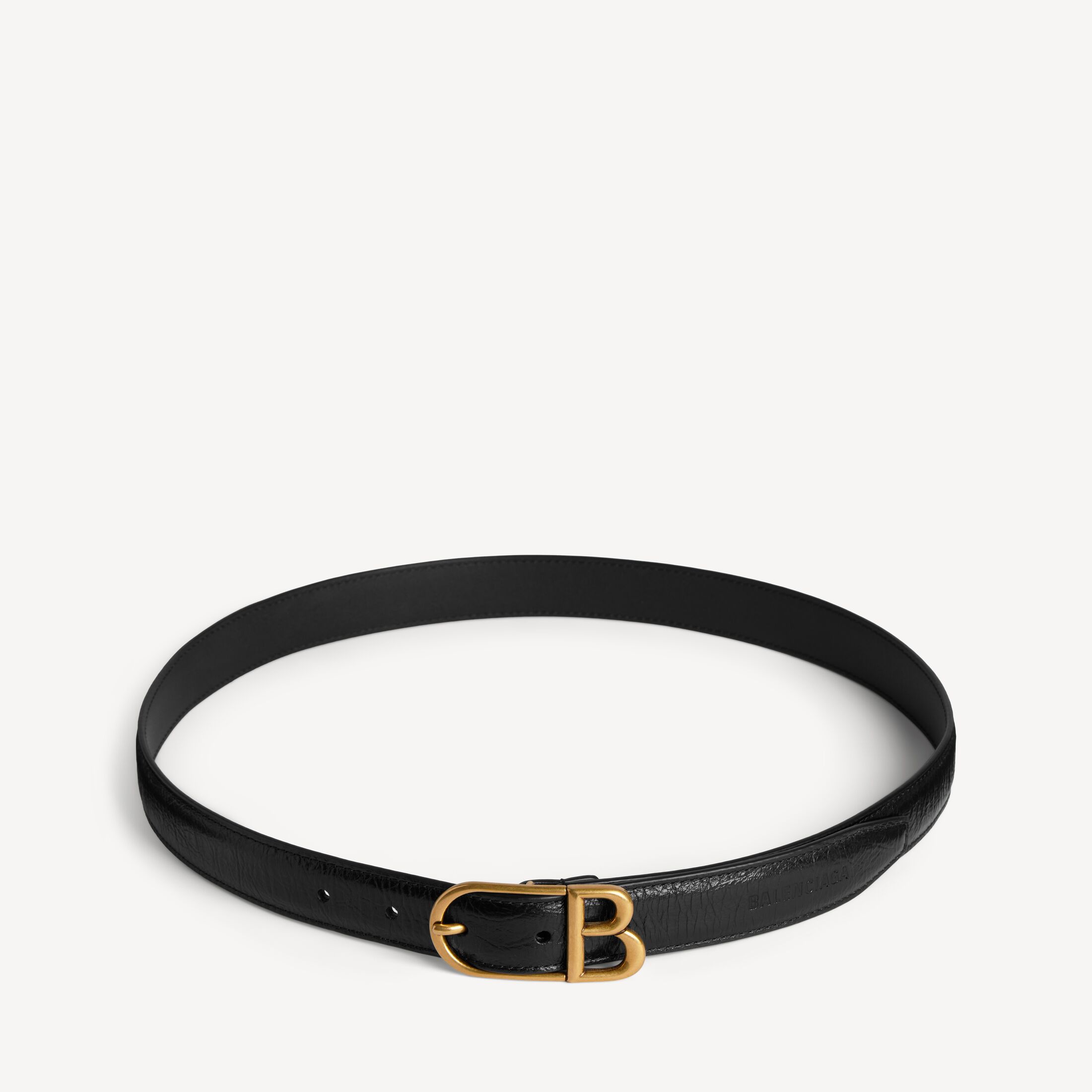 Classic B黑色细纹牛皮革腰带,饰以做旧金色金属配件 此商品支持花呗分期