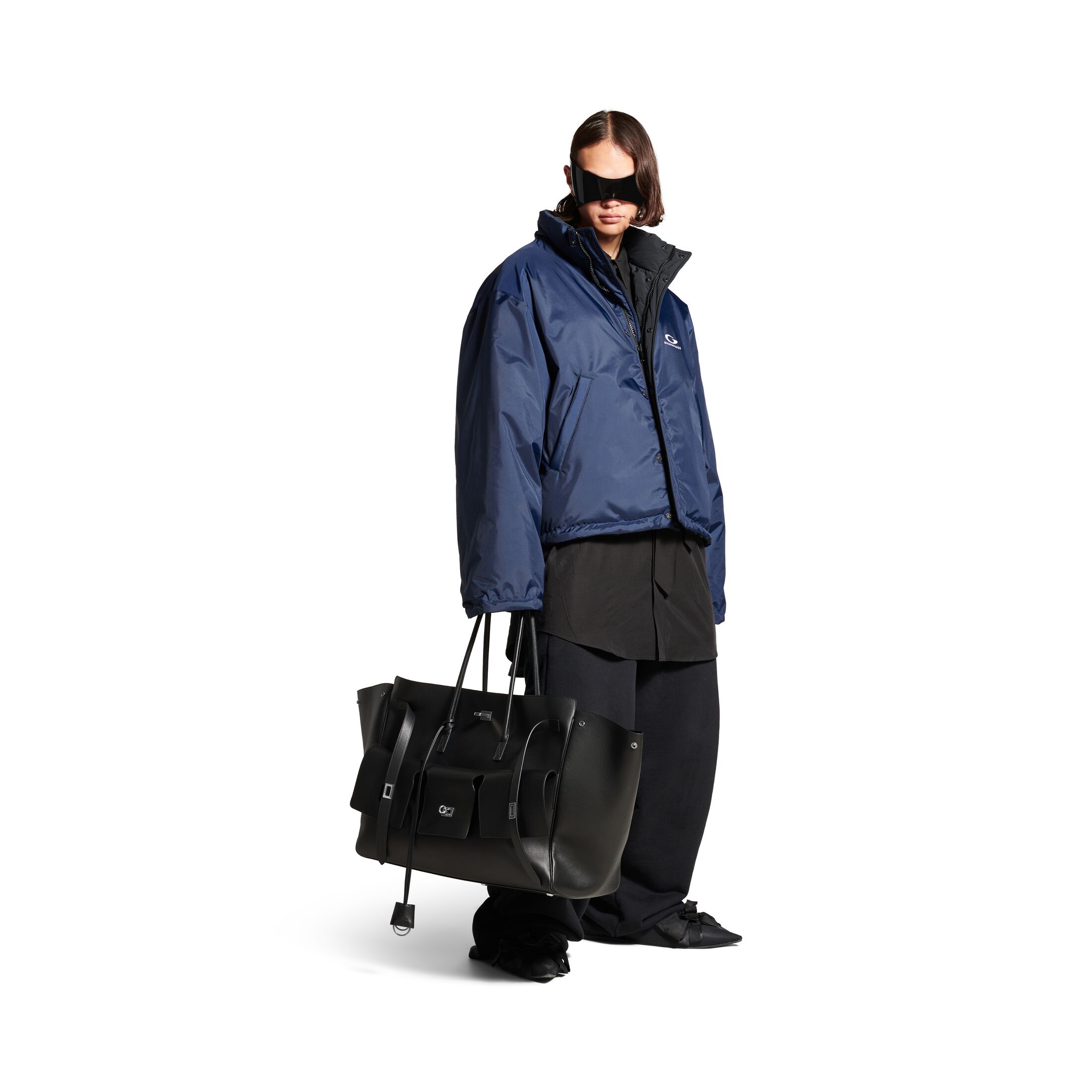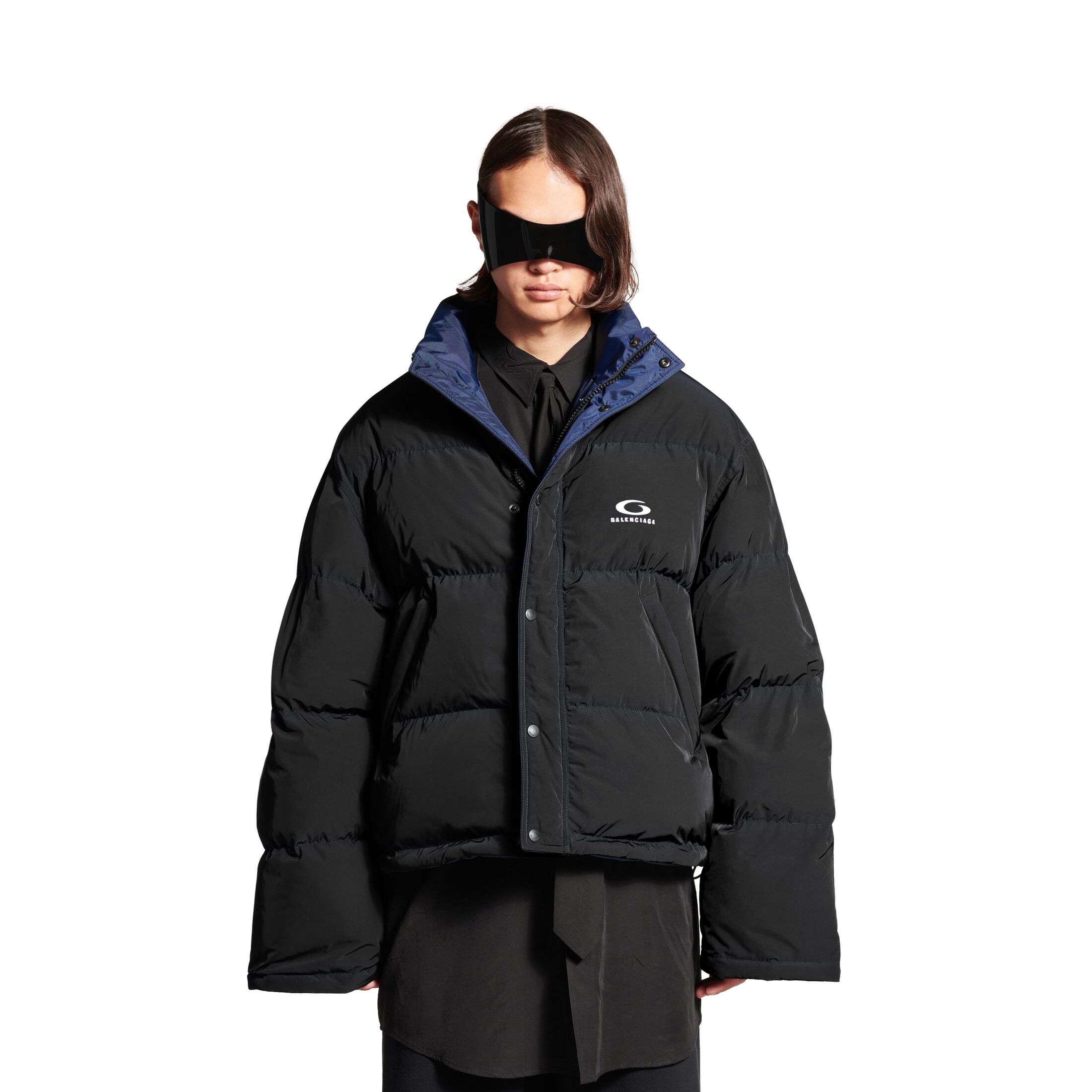 Puffer黑色哑光科技斜纹和深蓝色双面外套,亮相于Balenciaga 2024冬季系列Look 33。此商品支持花呗分期