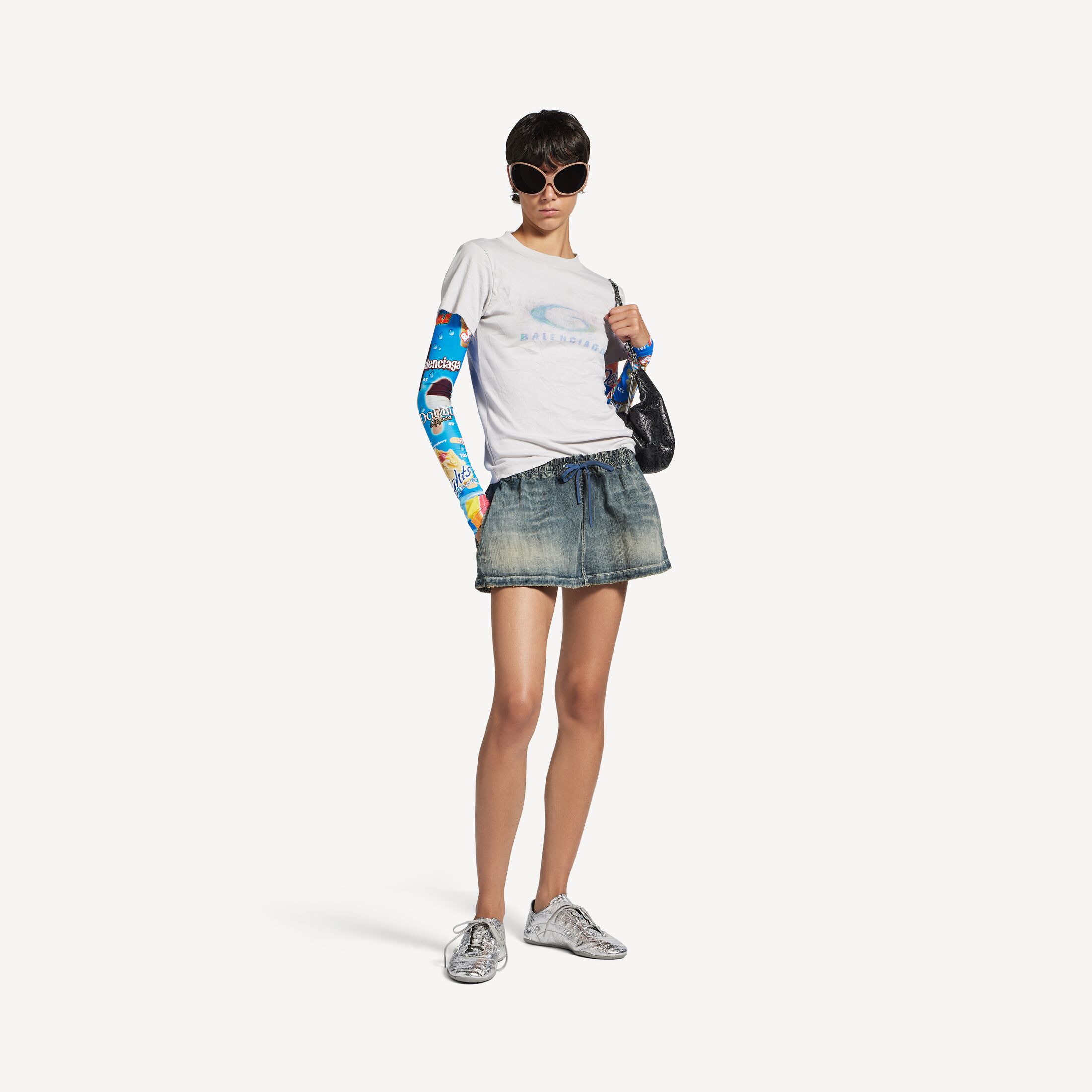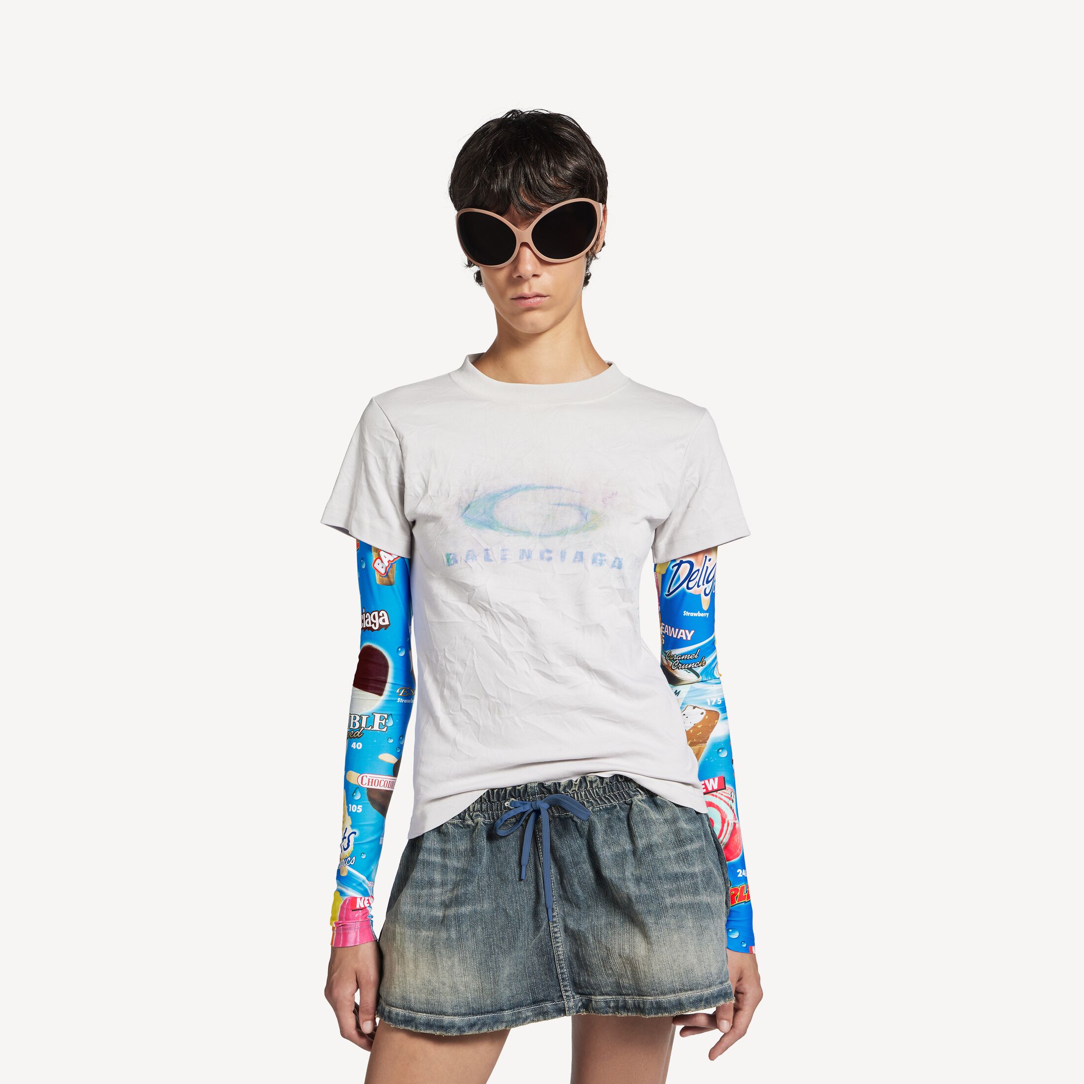 Washed Crayon Loop做旧白色和蓝色双面弹力平纹针织双袖T恤 此商品支持花呗分期尺码 (法国)