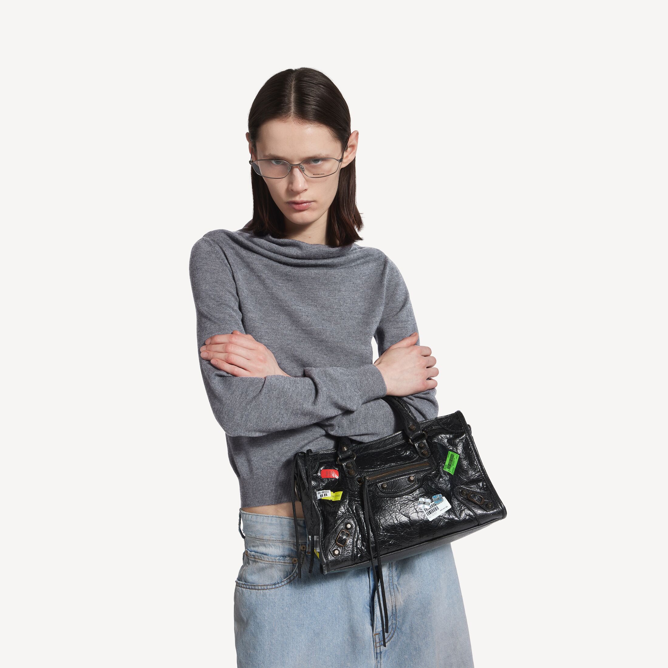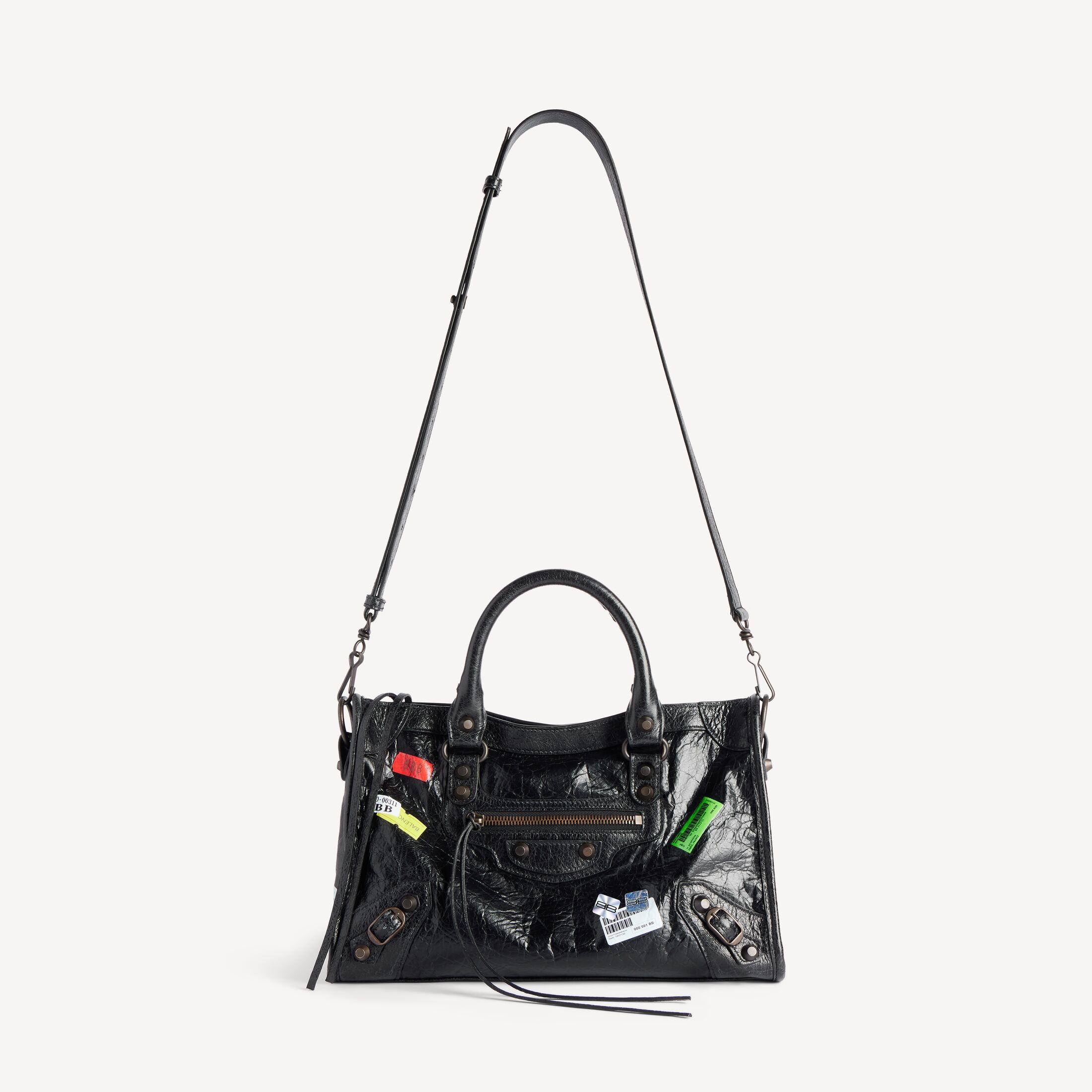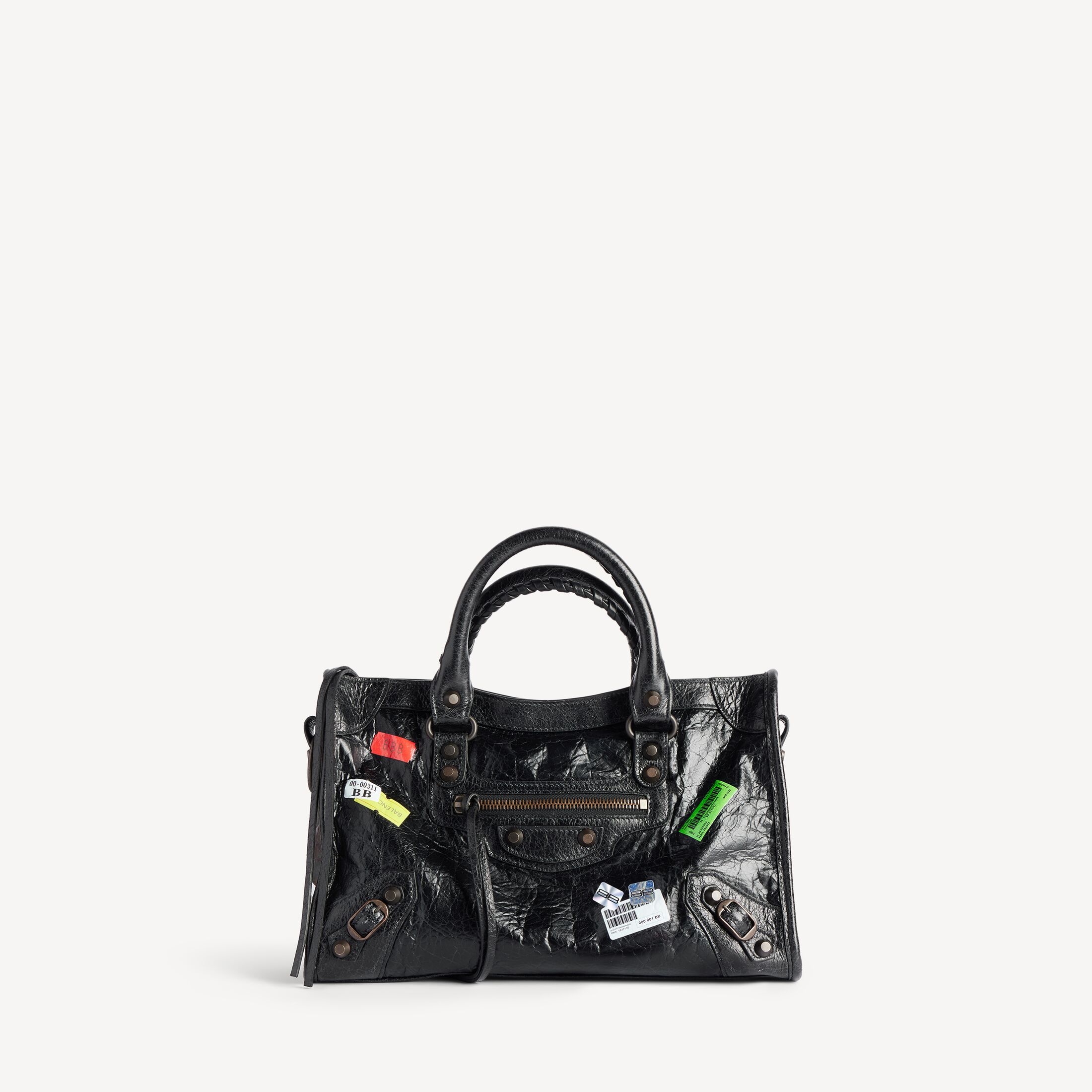 Le City黑色细纹羊皮革小号手袋,饰以贴饰印花和黄铜金属配件此商品支持花呗分期• 细纹羊皮革