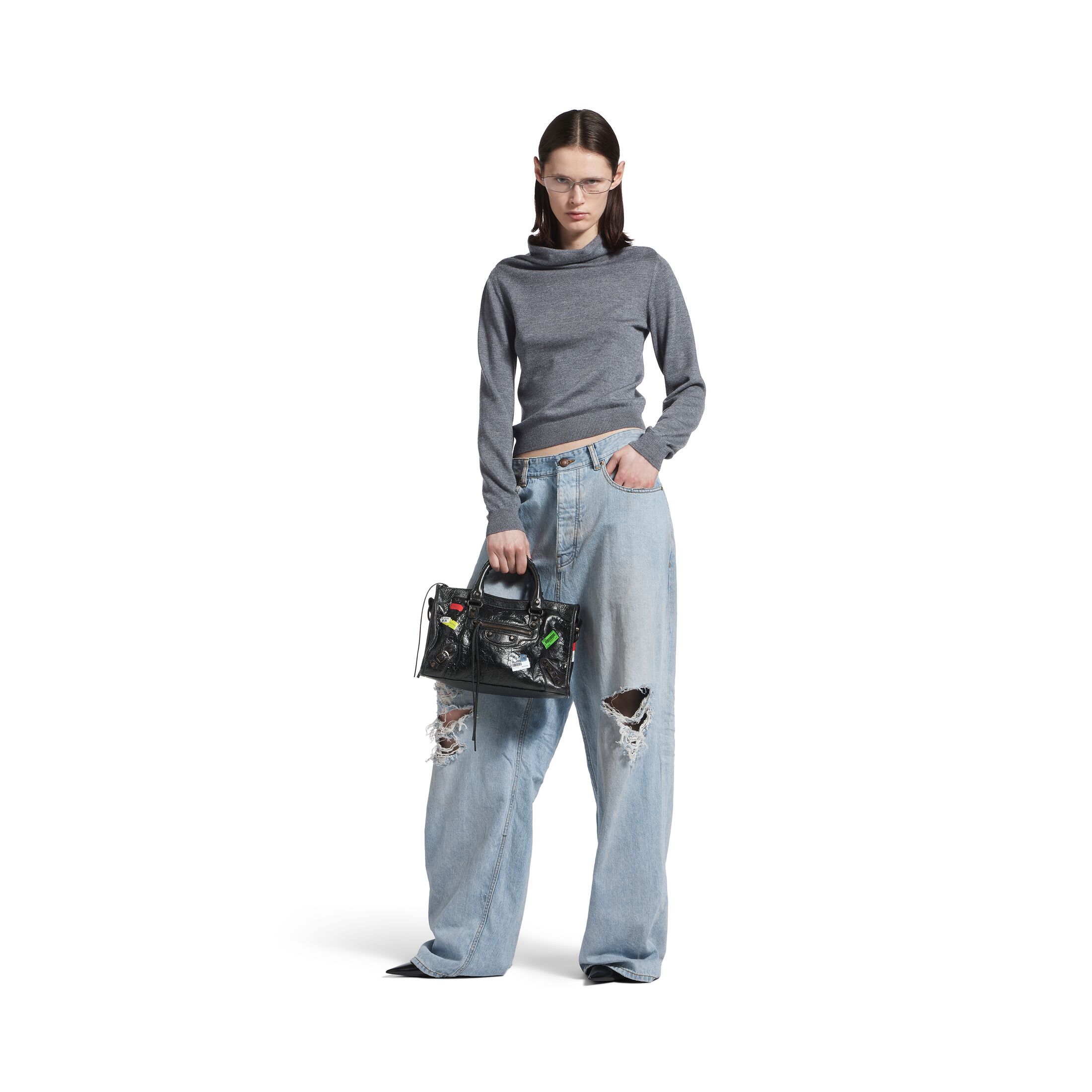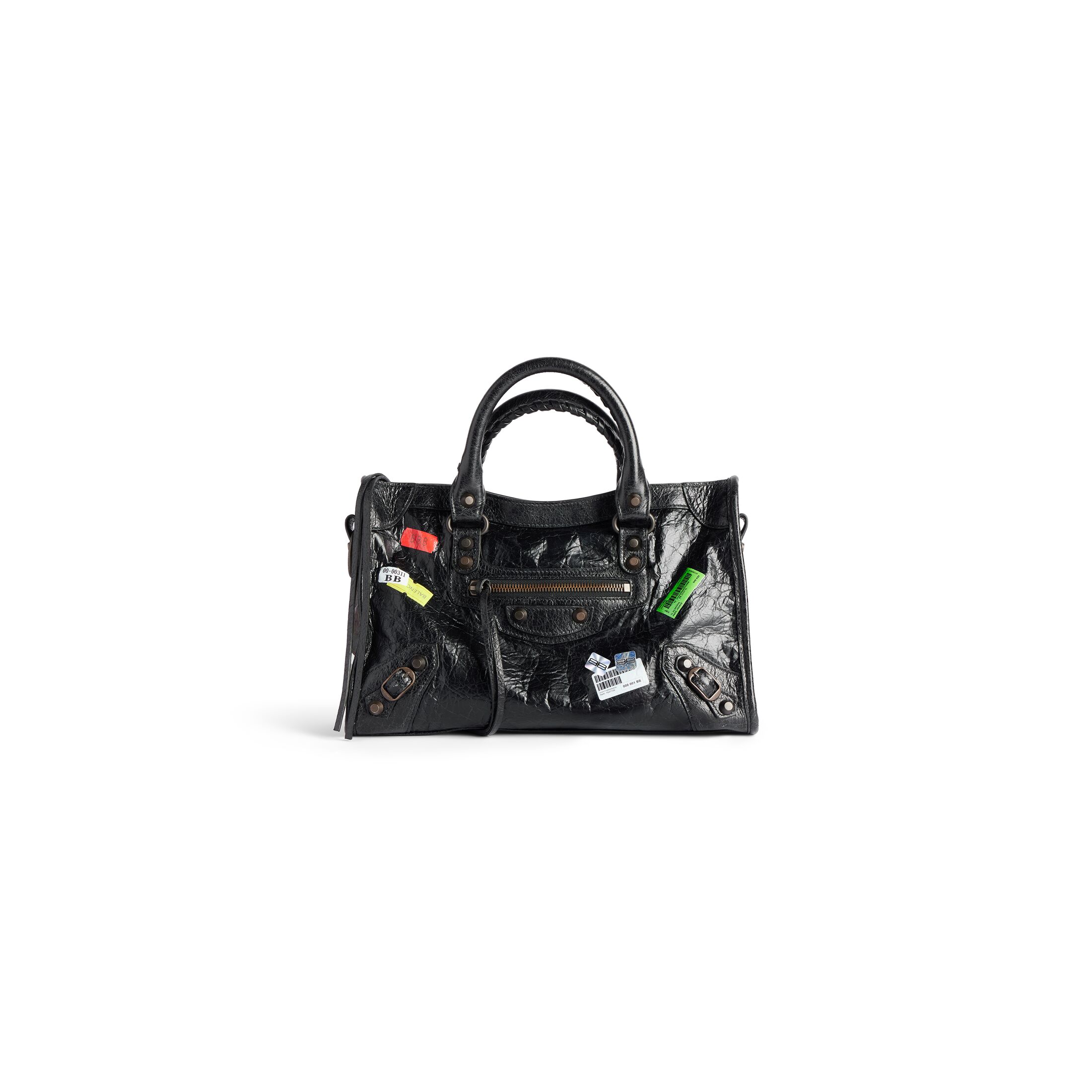 Le City黑色Storico细纹羊皮革小号手袋,饰以贴饰印花和黄铜金属配件此商品支持花呗分期• Storico细纹羊皮革,饰以贴饰印花