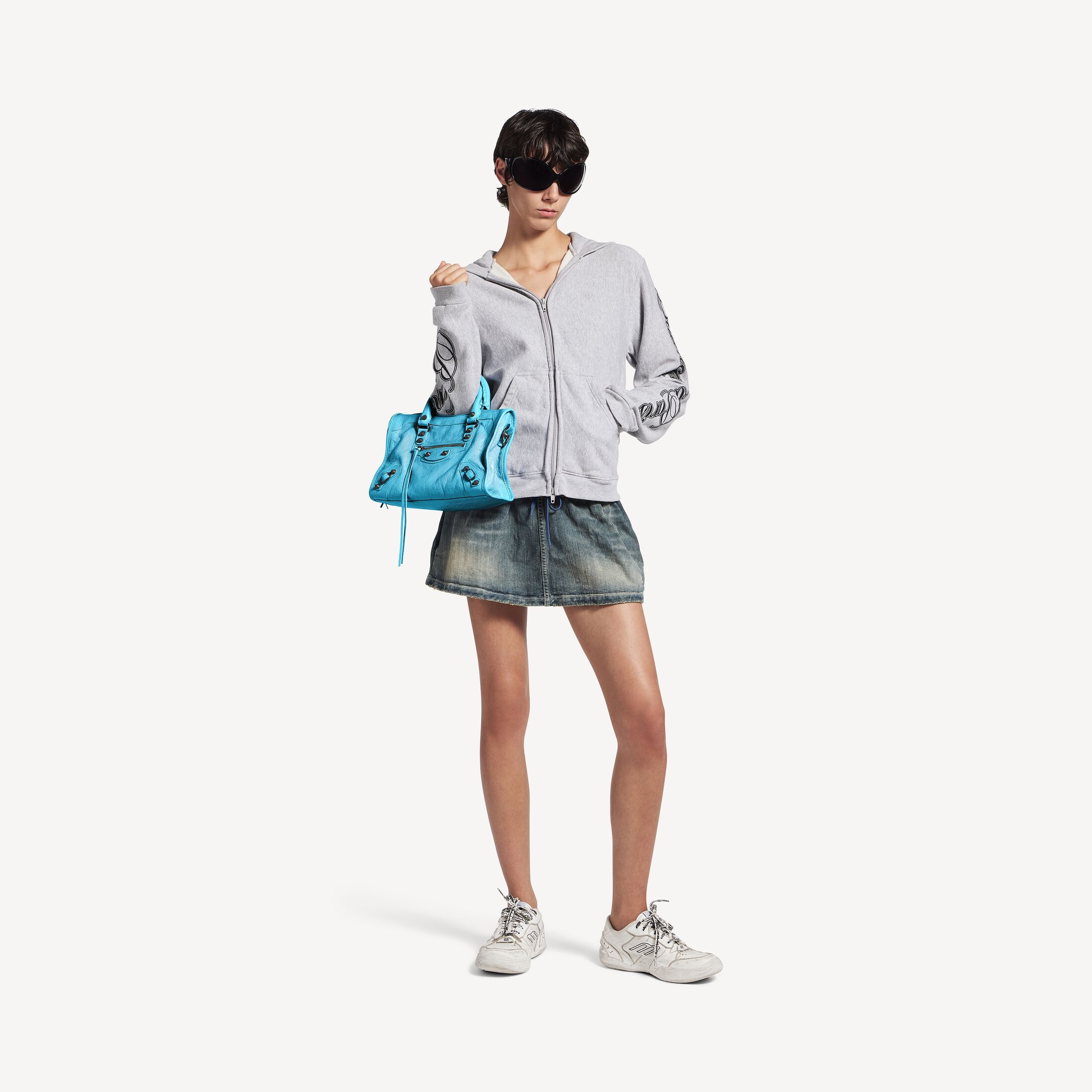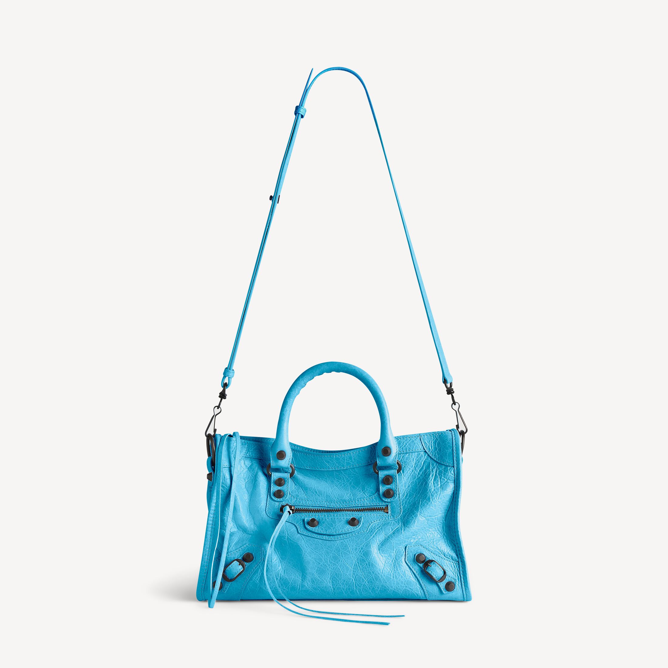 Le City蓝青色羊皮革小号手袋,饰以黄铜金属配件此商品支持花呗分期产品细节
