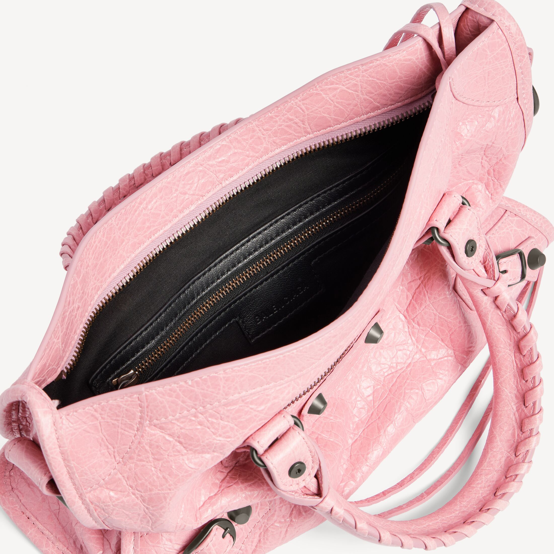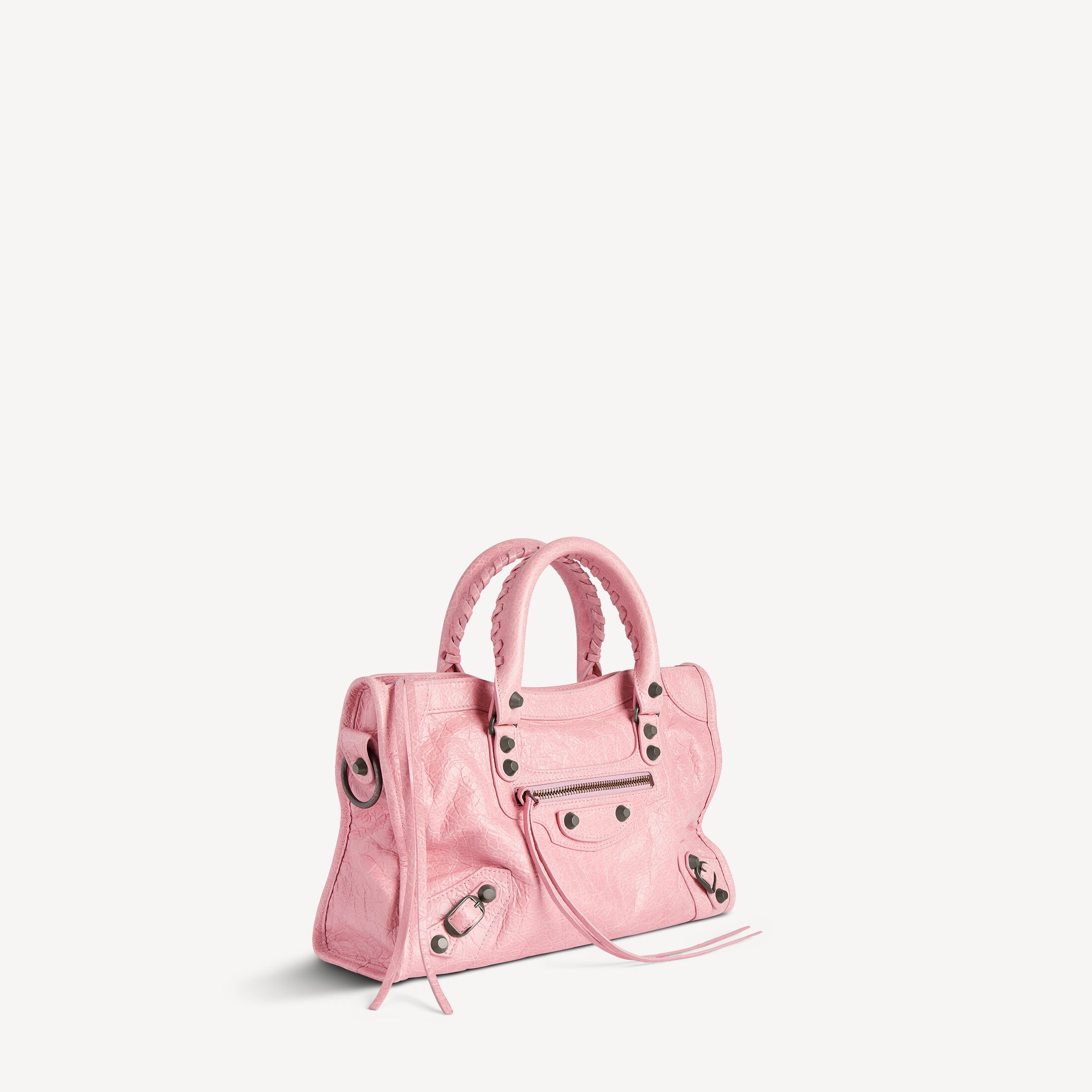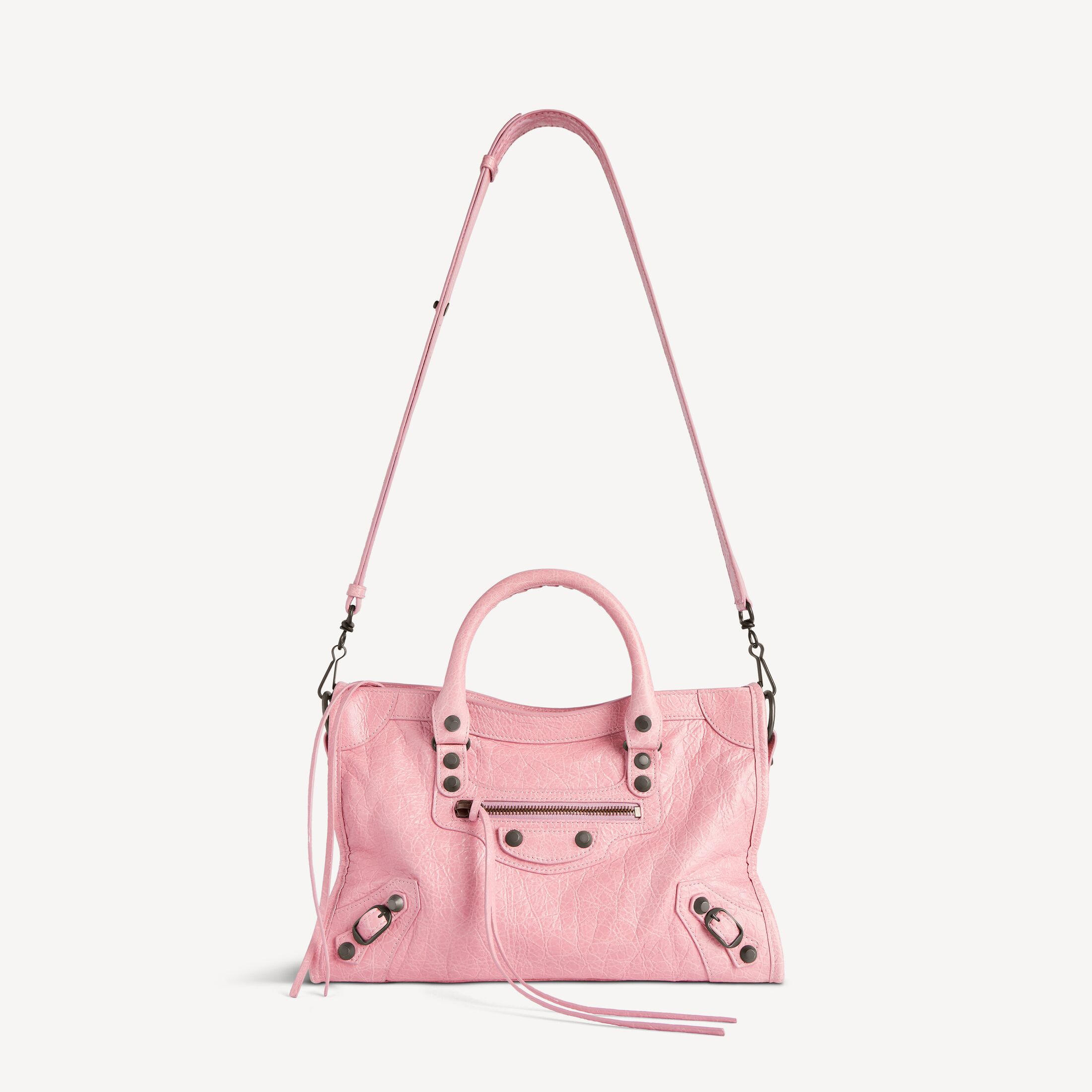 Le City复古粉色细纹羊皮革小号手袋,饰以黄铜金属配件此商品支持花呗分期