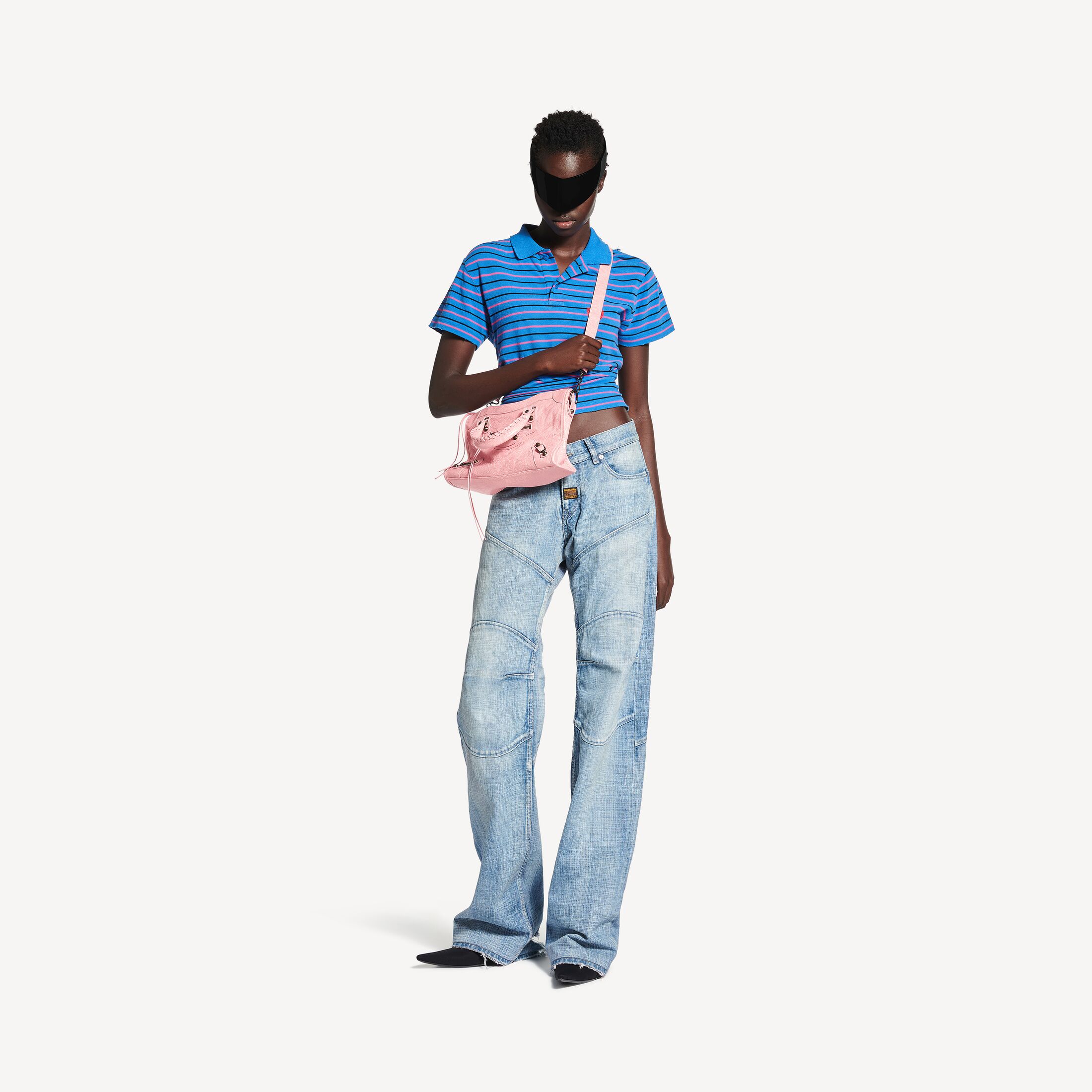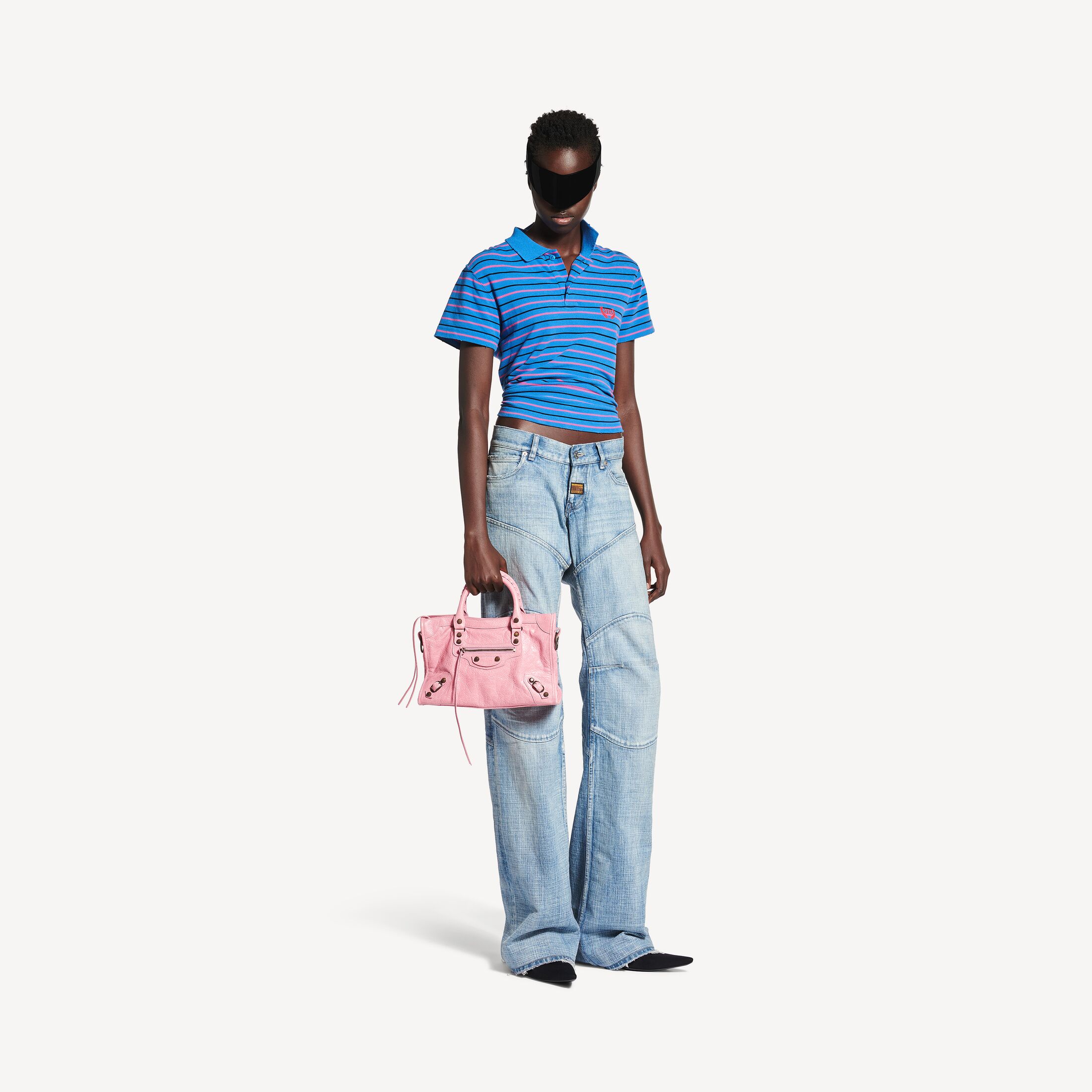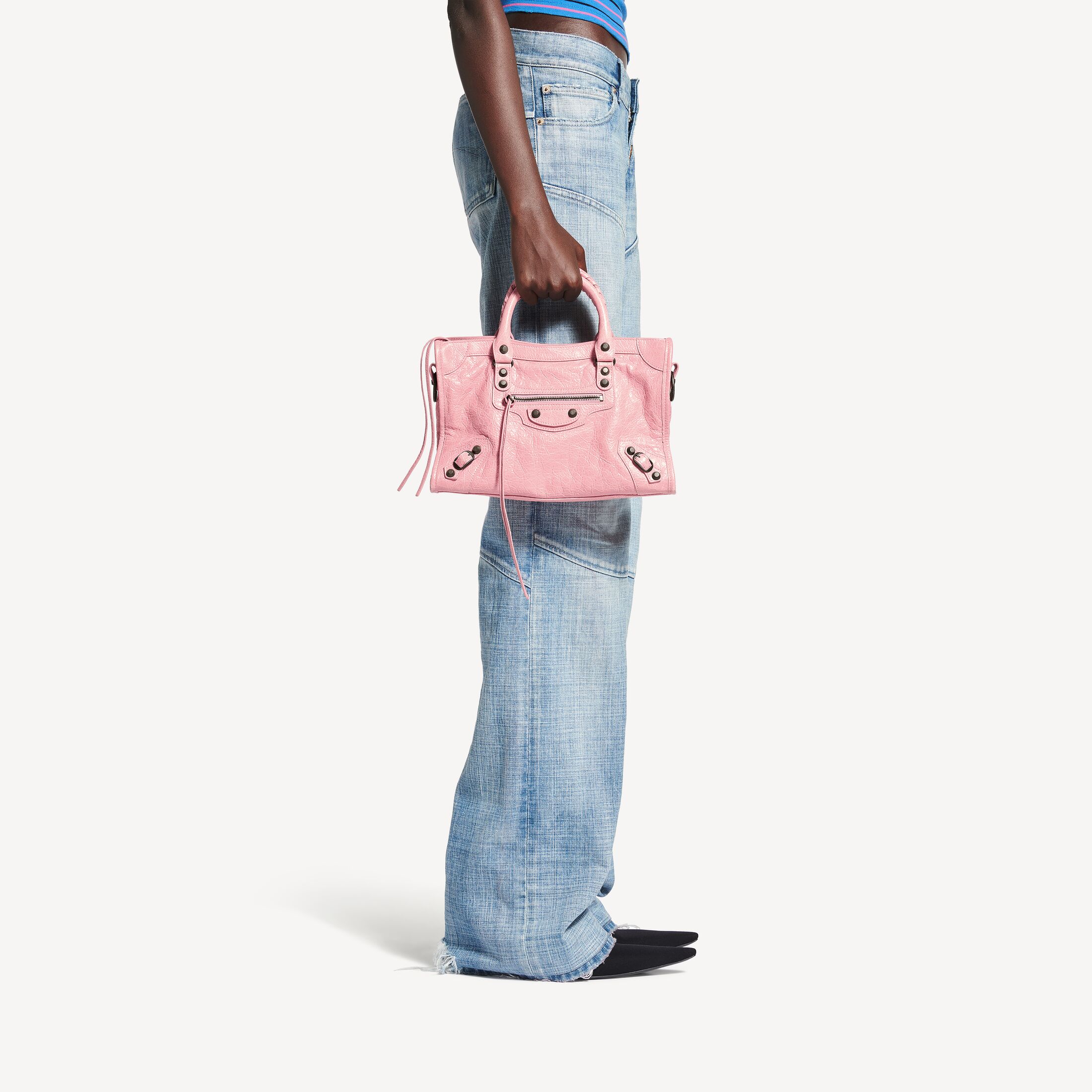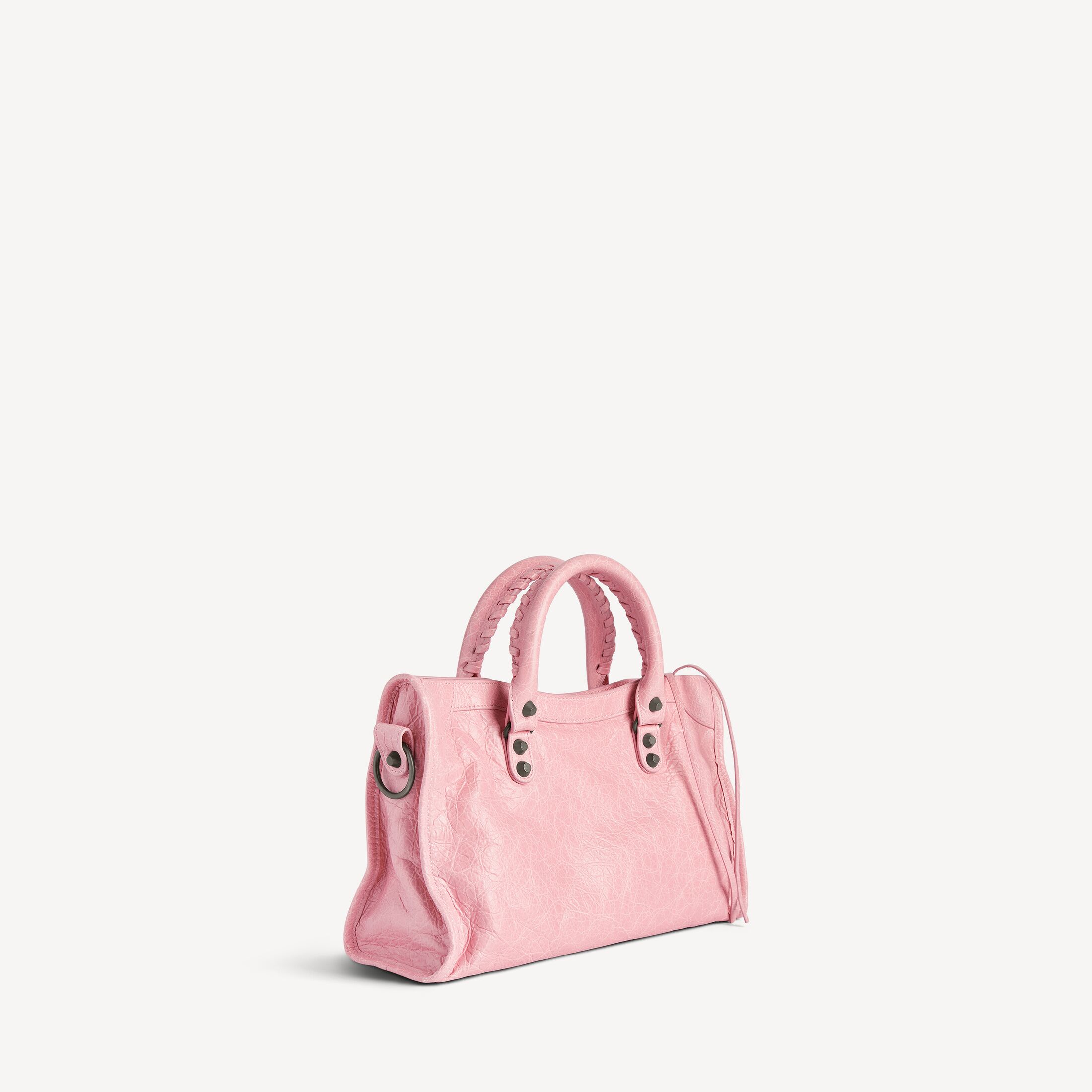 Le City复古粉色细纹羊皮革小号手袋,饰以黄铜金属配件此商品支持花呗分期