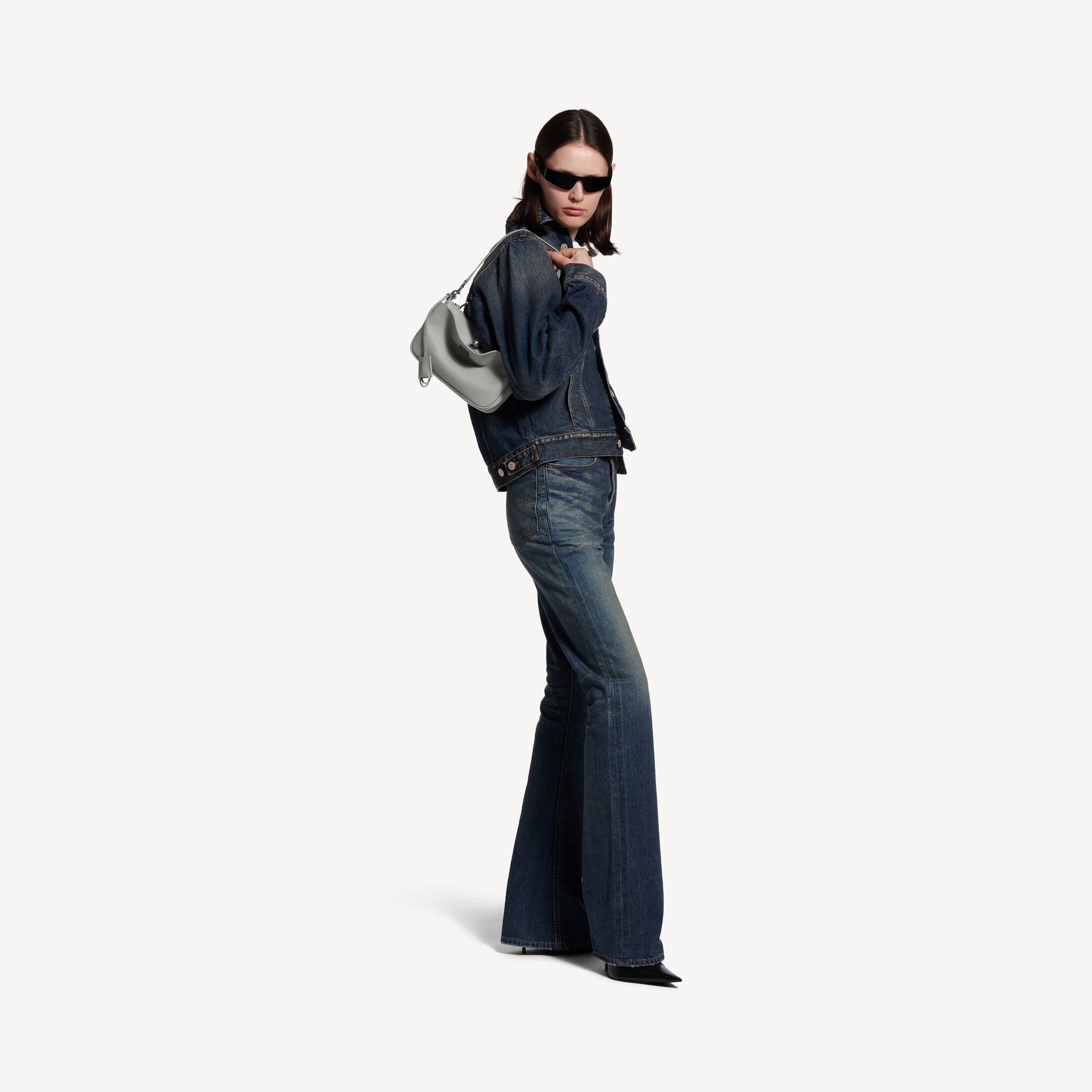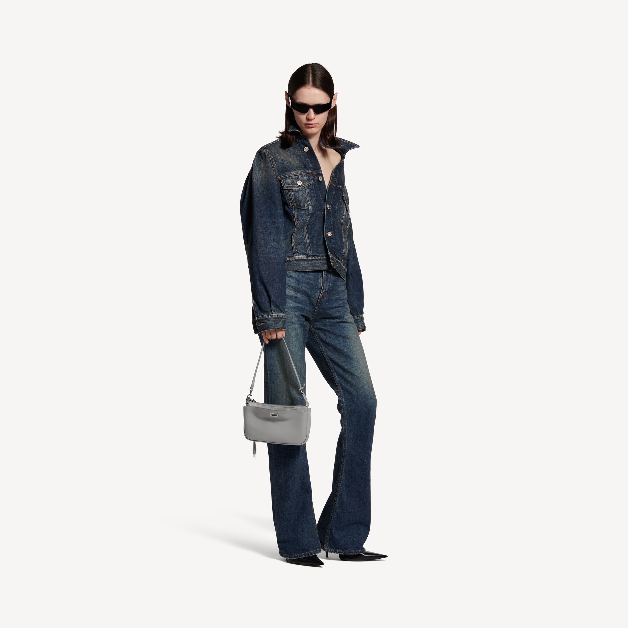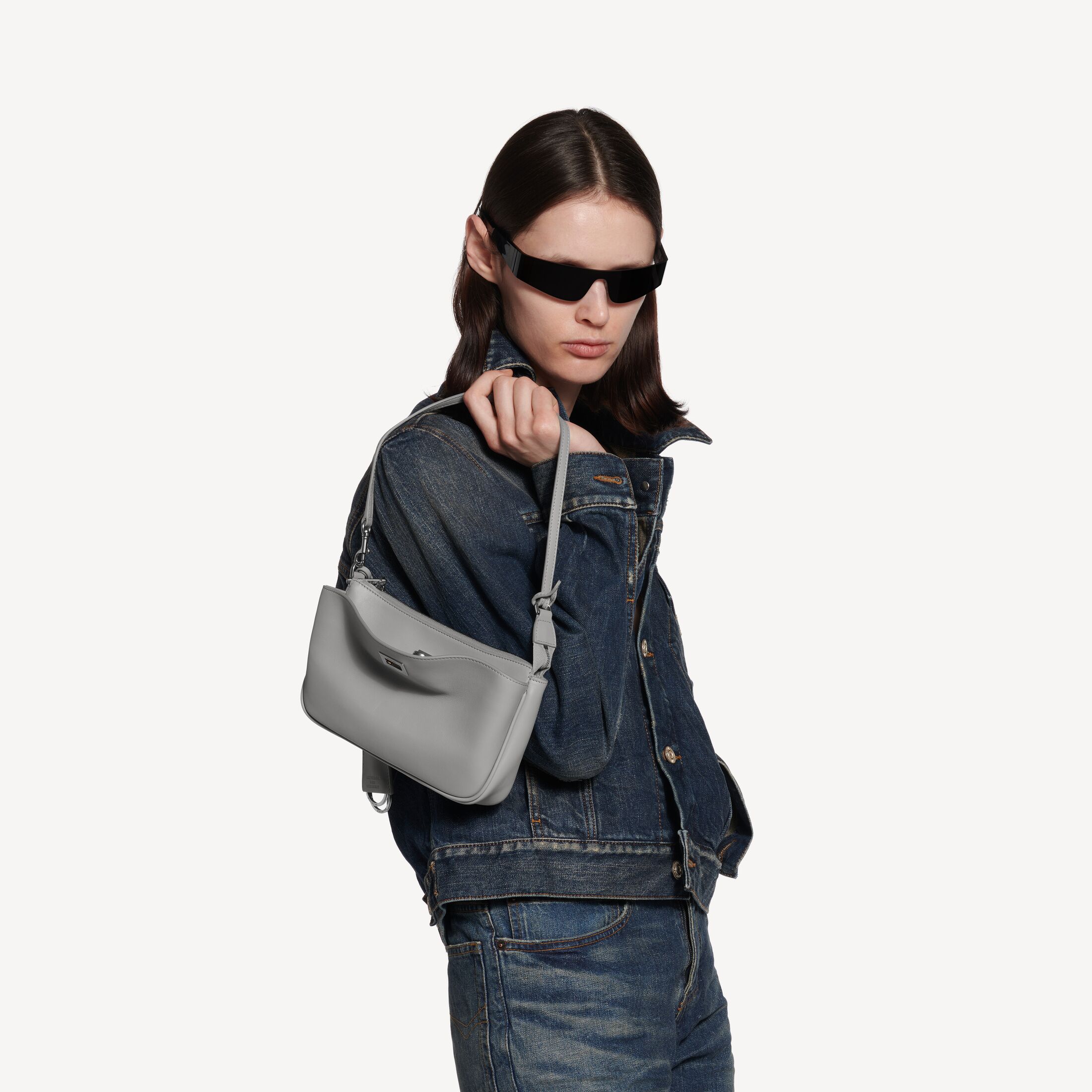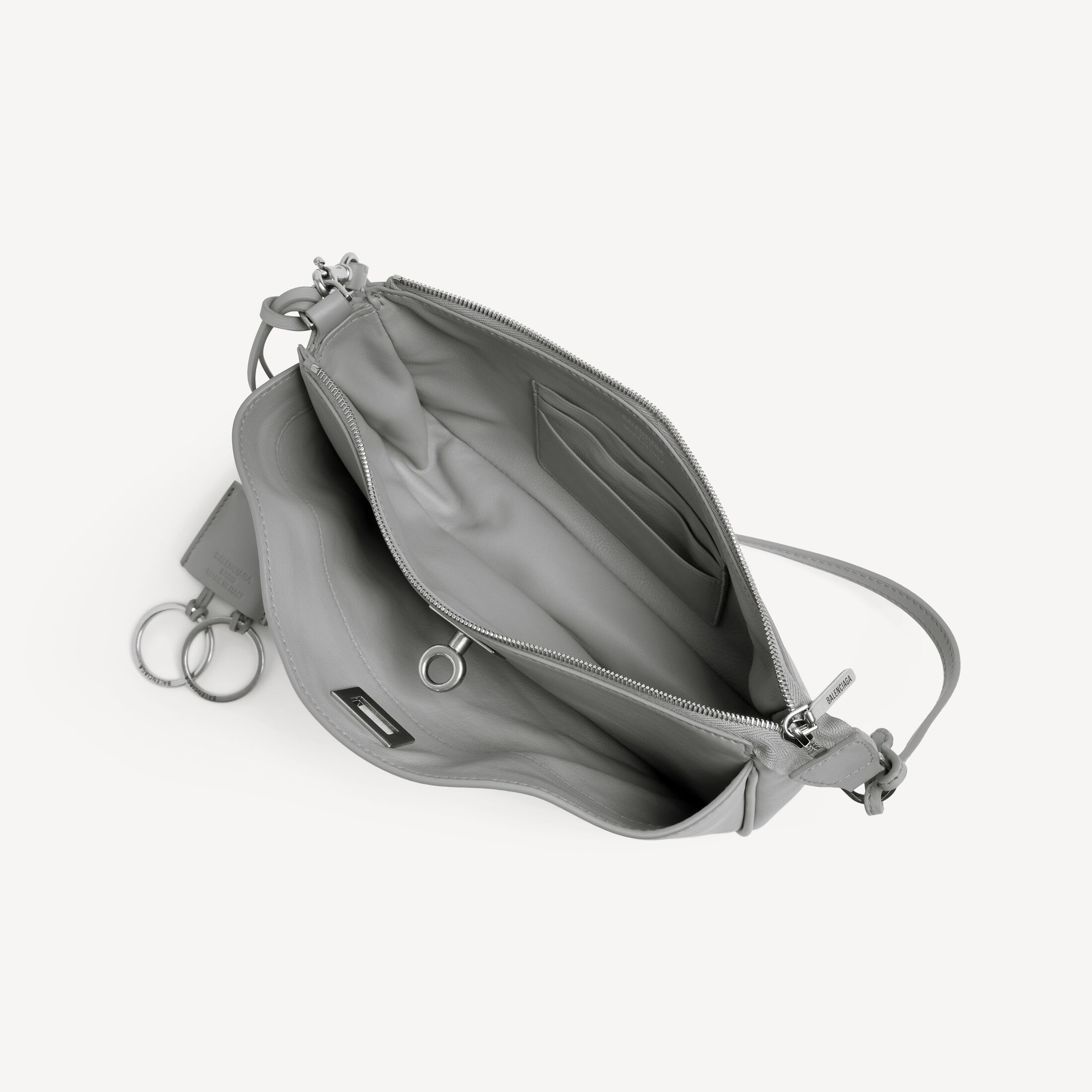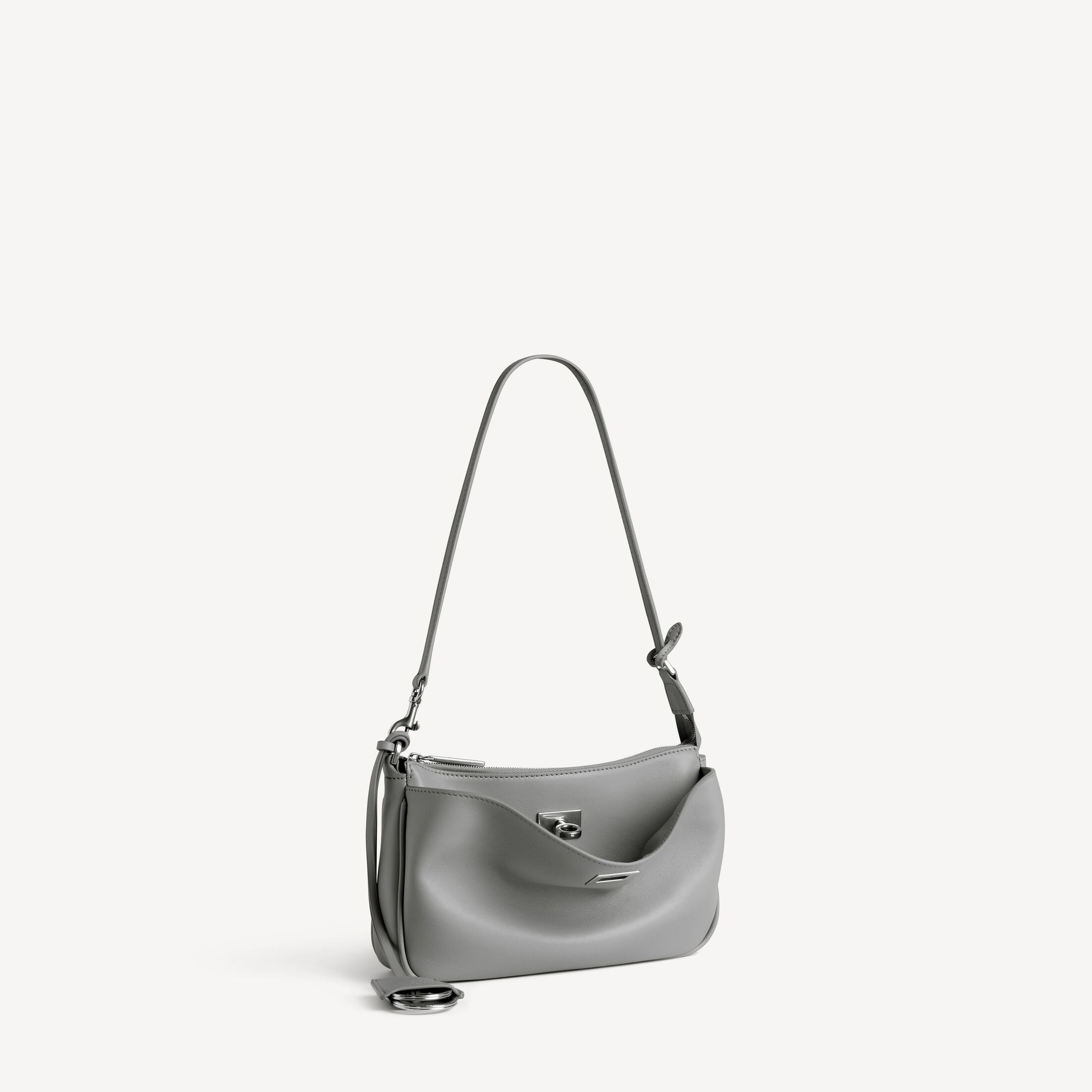 Rodeo云灰色光滑牛皮革单肩包,饰以做旧银色金属配件 此商品支持花呗分期• 光滑牛皮革