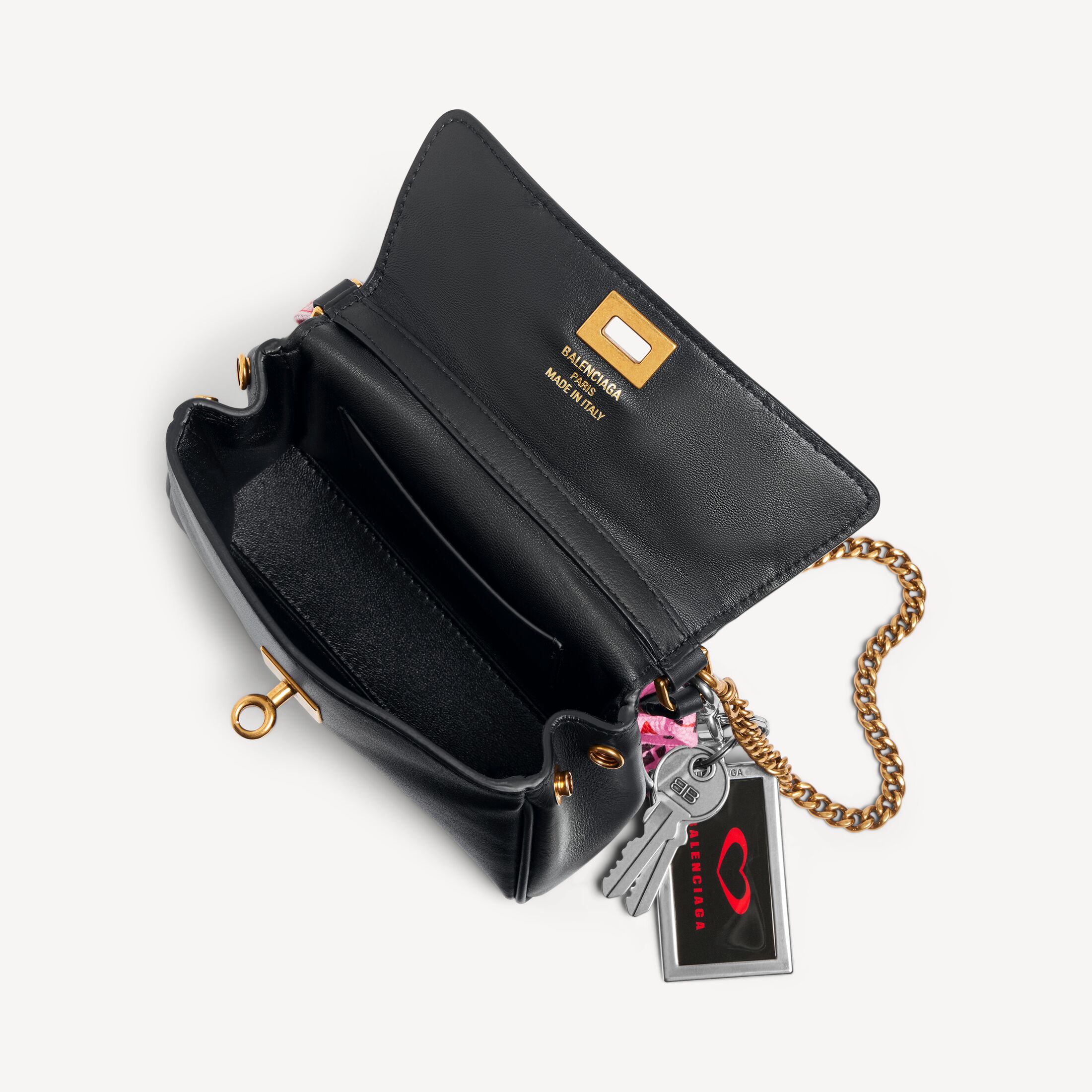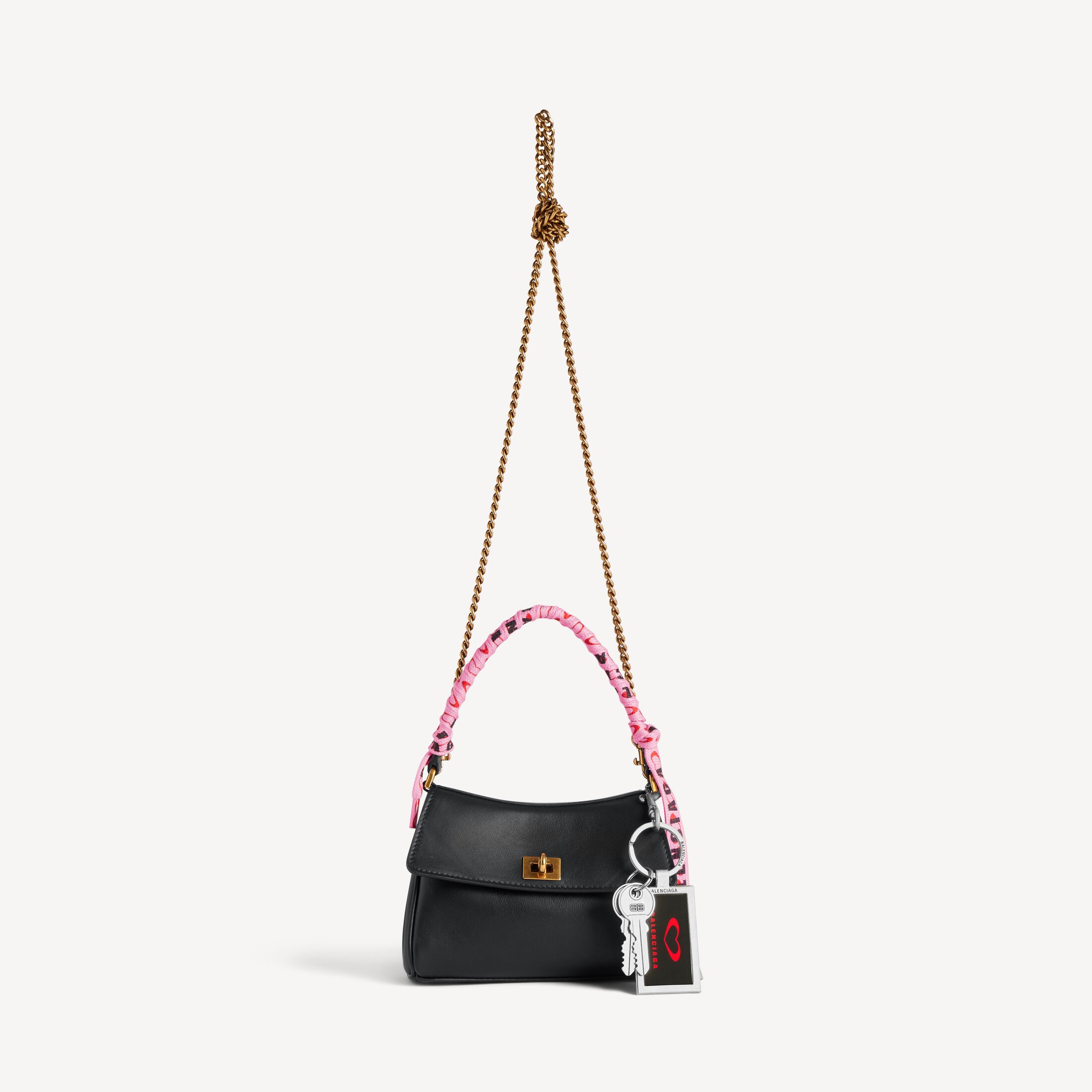 Rodeo Nano黑色光滑牛皮革饰链手袋,点缀鞋带、挂饰和做旧金色金属配件 此商品支持花呗分期• 尺寸:长16 x 高9.9 x 宽4.5厘米