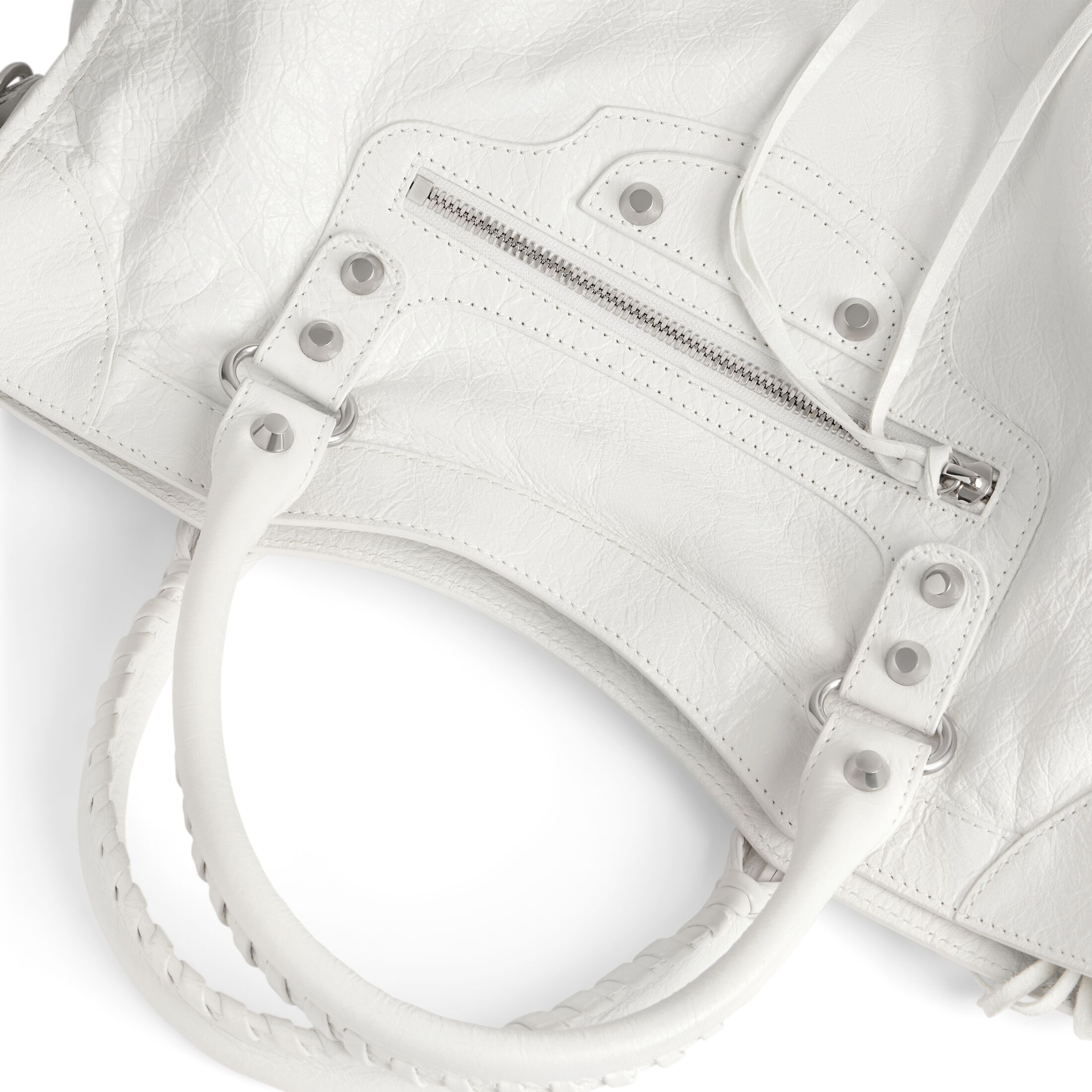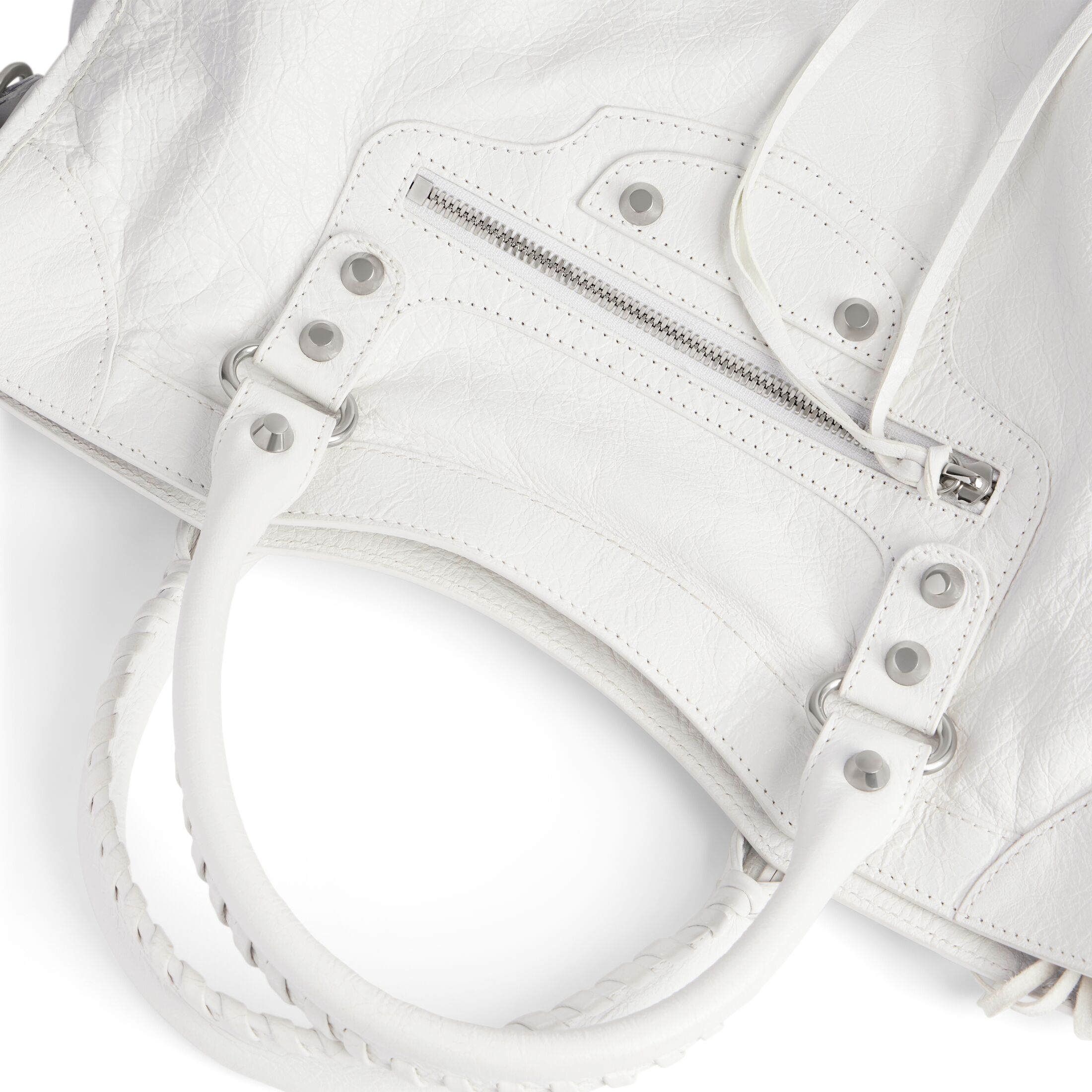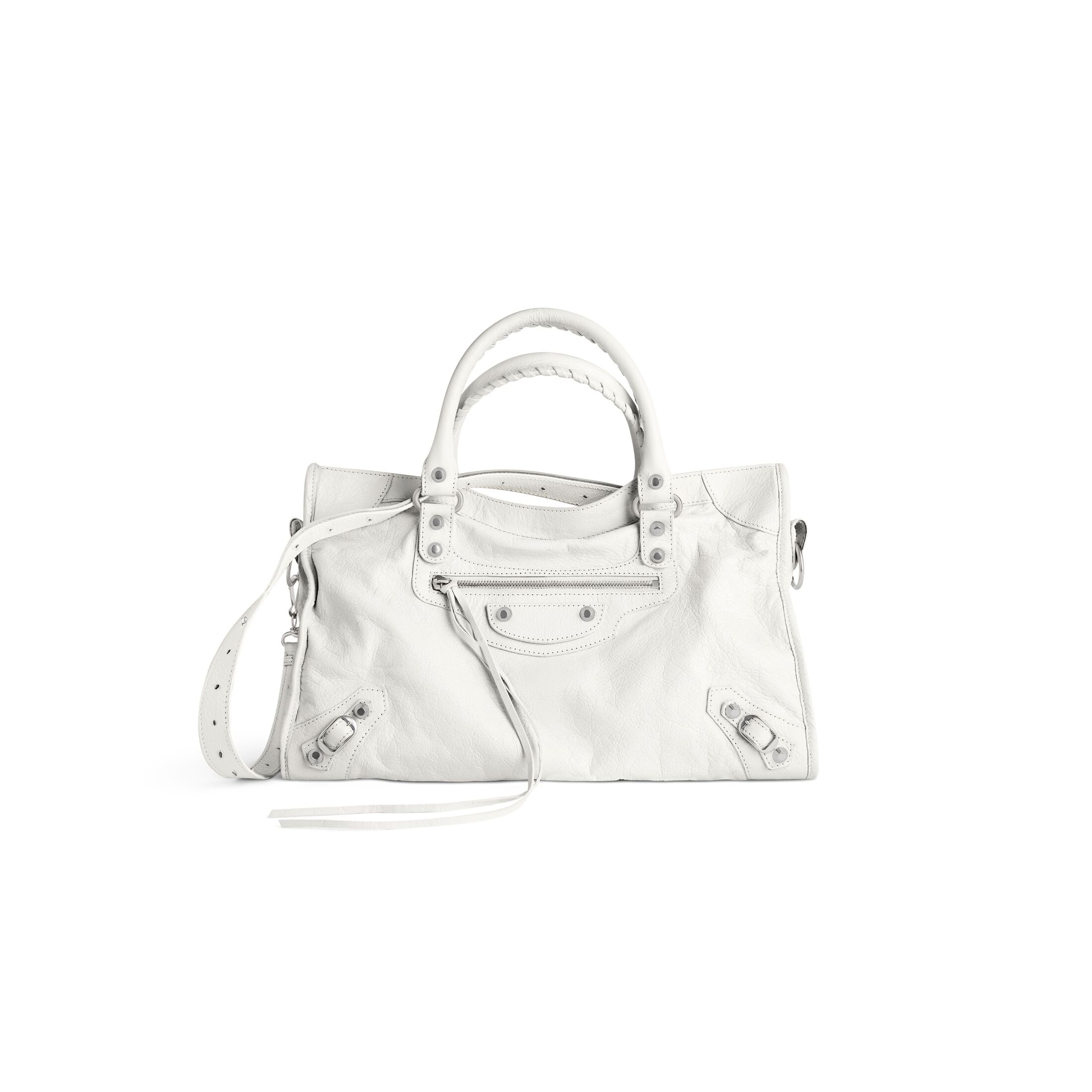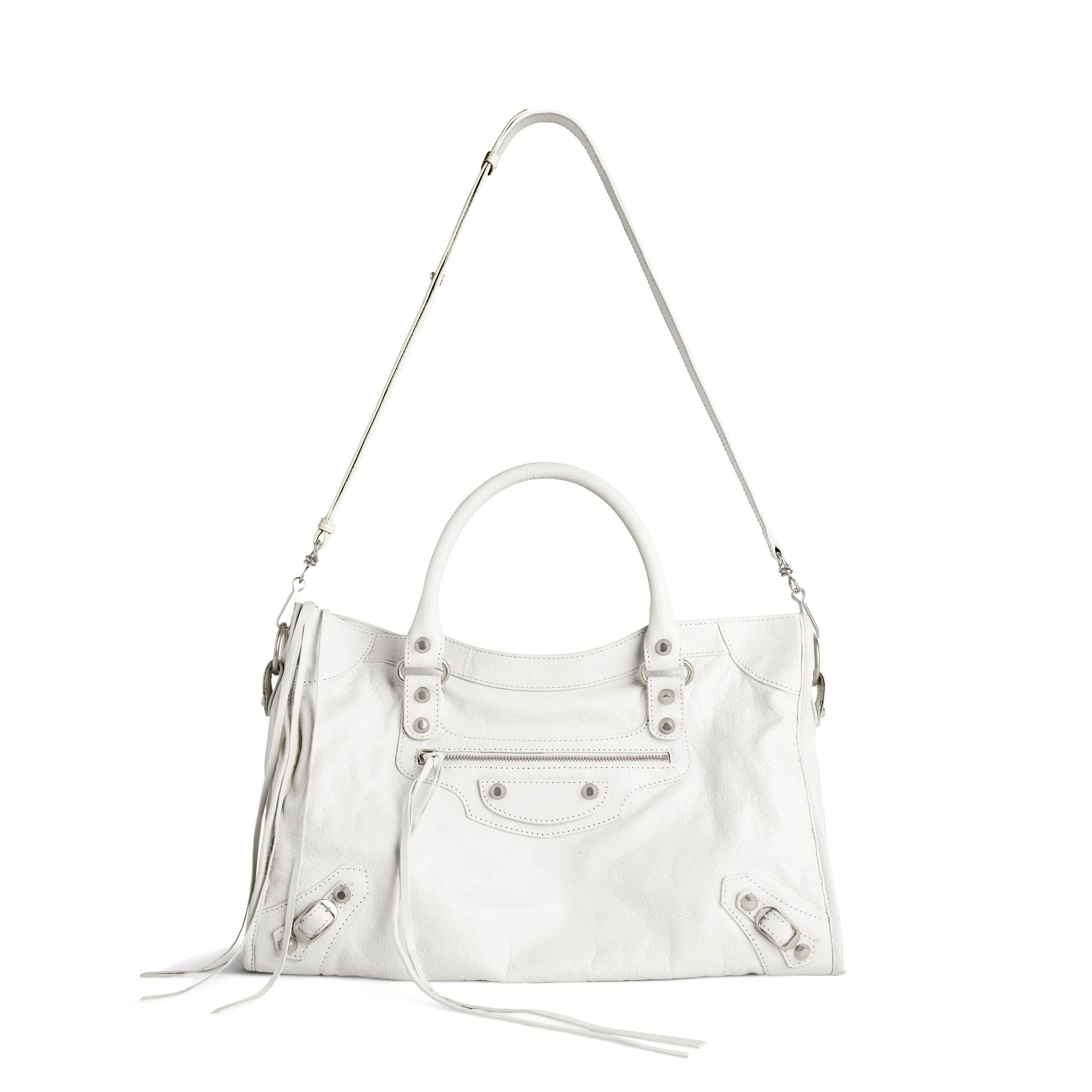 Le City亮白色细纹羊皮革中号手袋,饰以闪亮银色金属配件此商品支持花呗分期