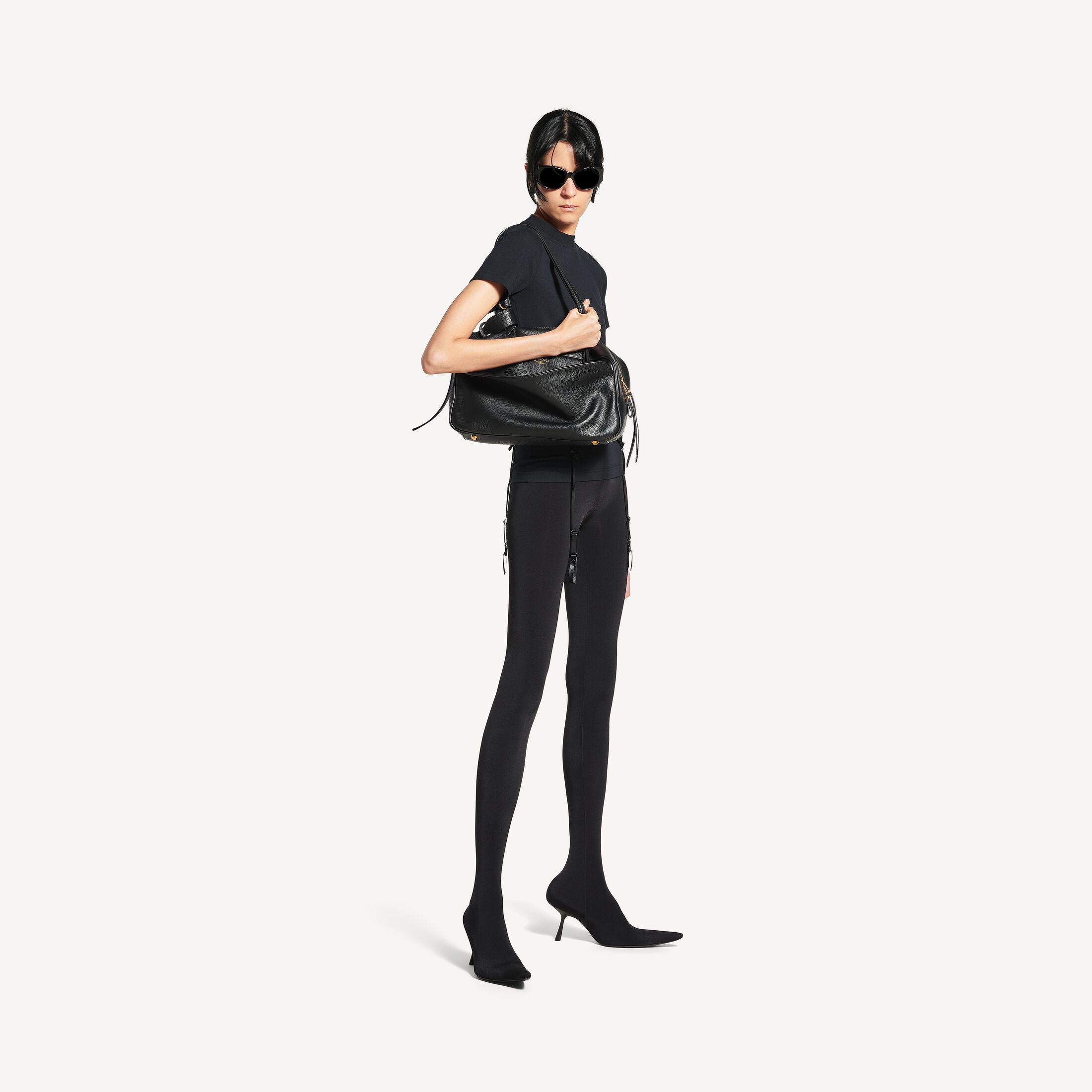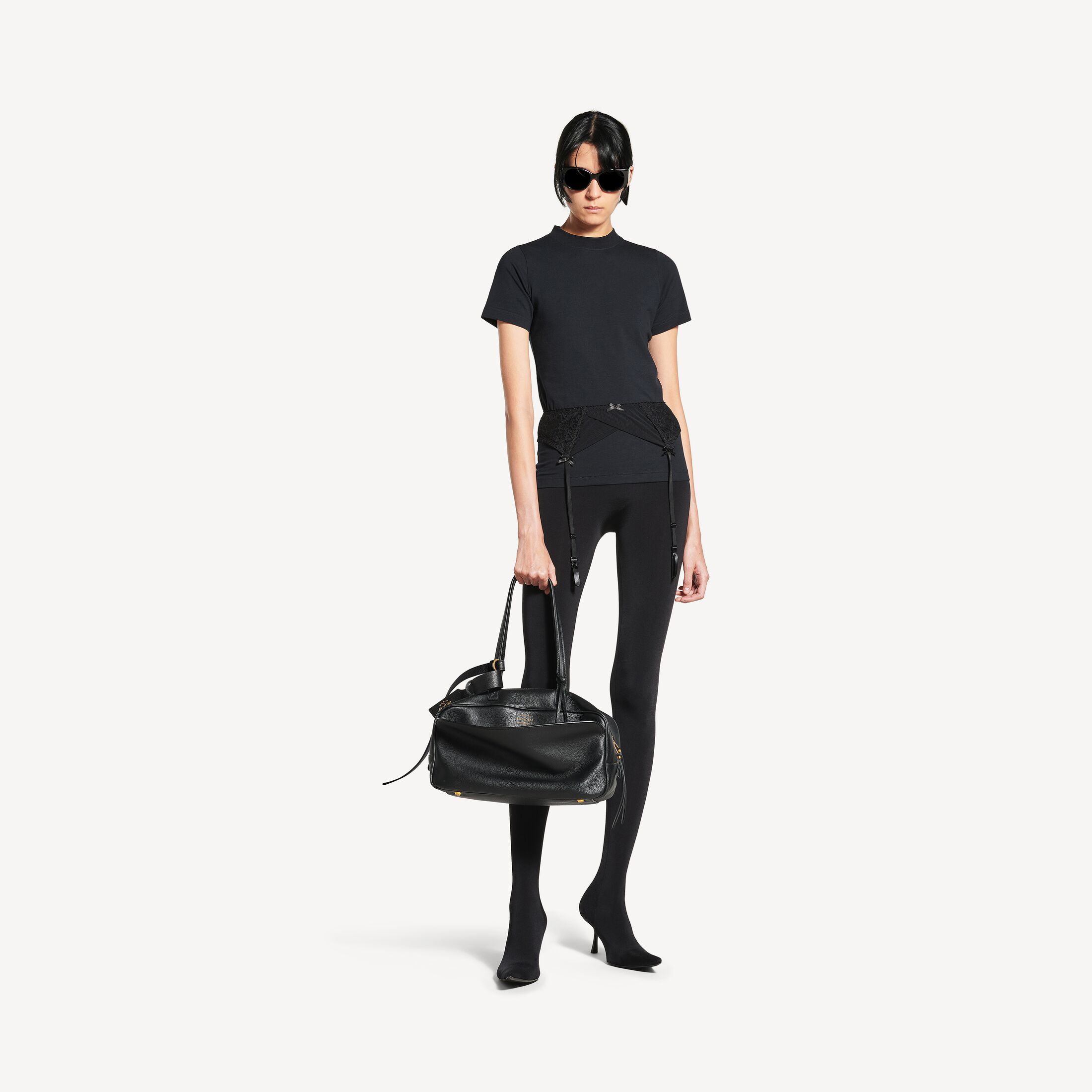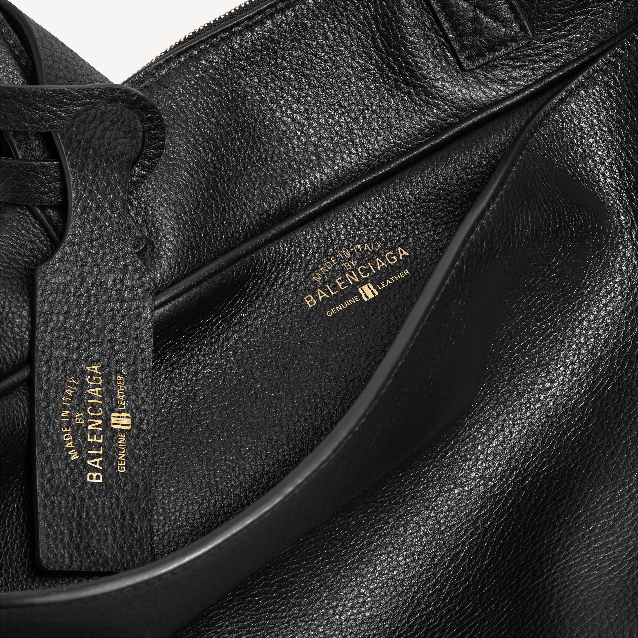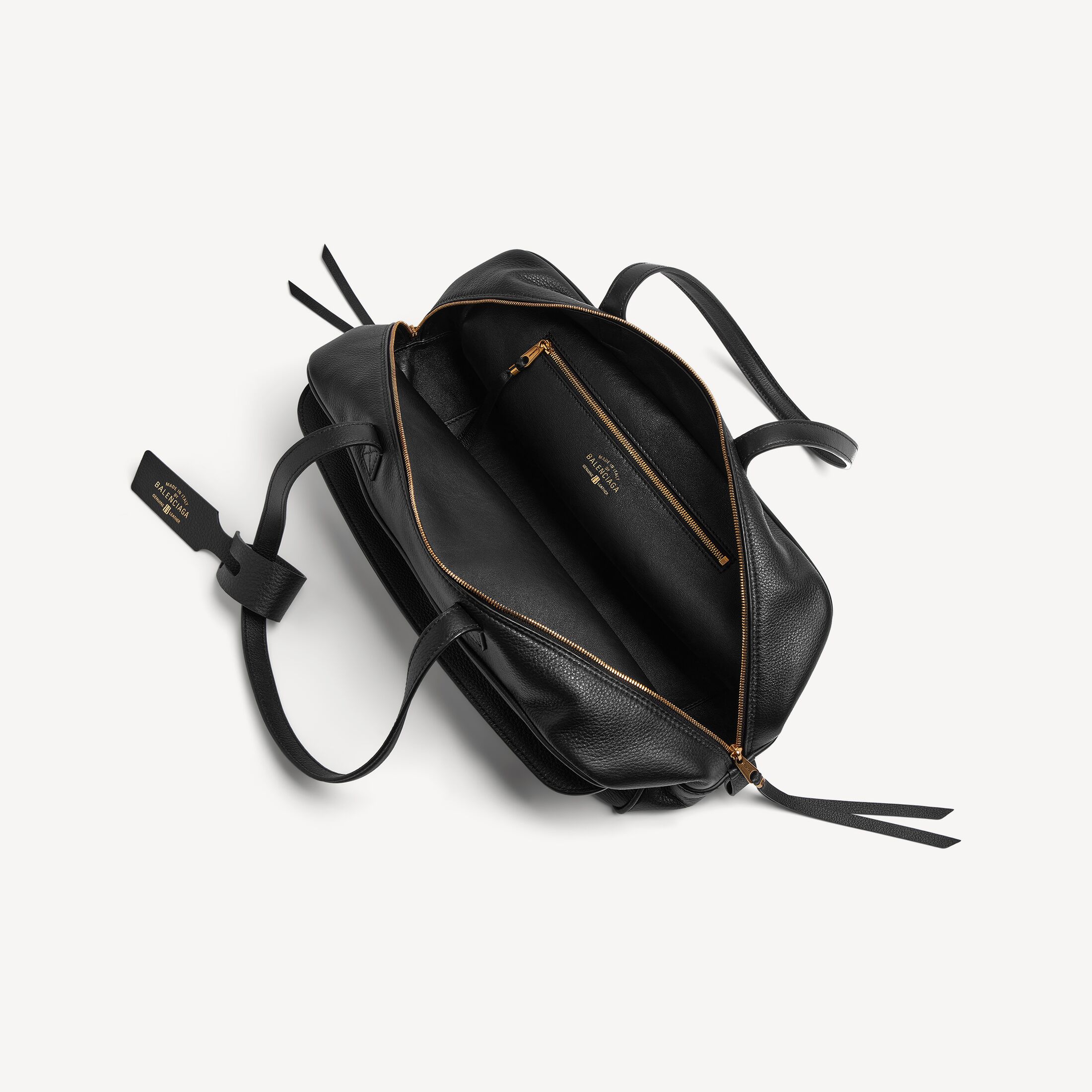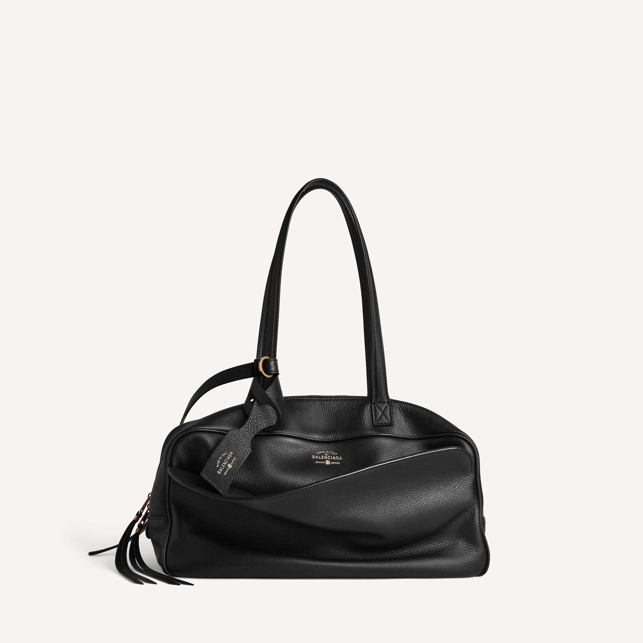Carrie黑色牛皮革中号保龄球包,饰以做旧金色金属配件此商品支持花呗分期