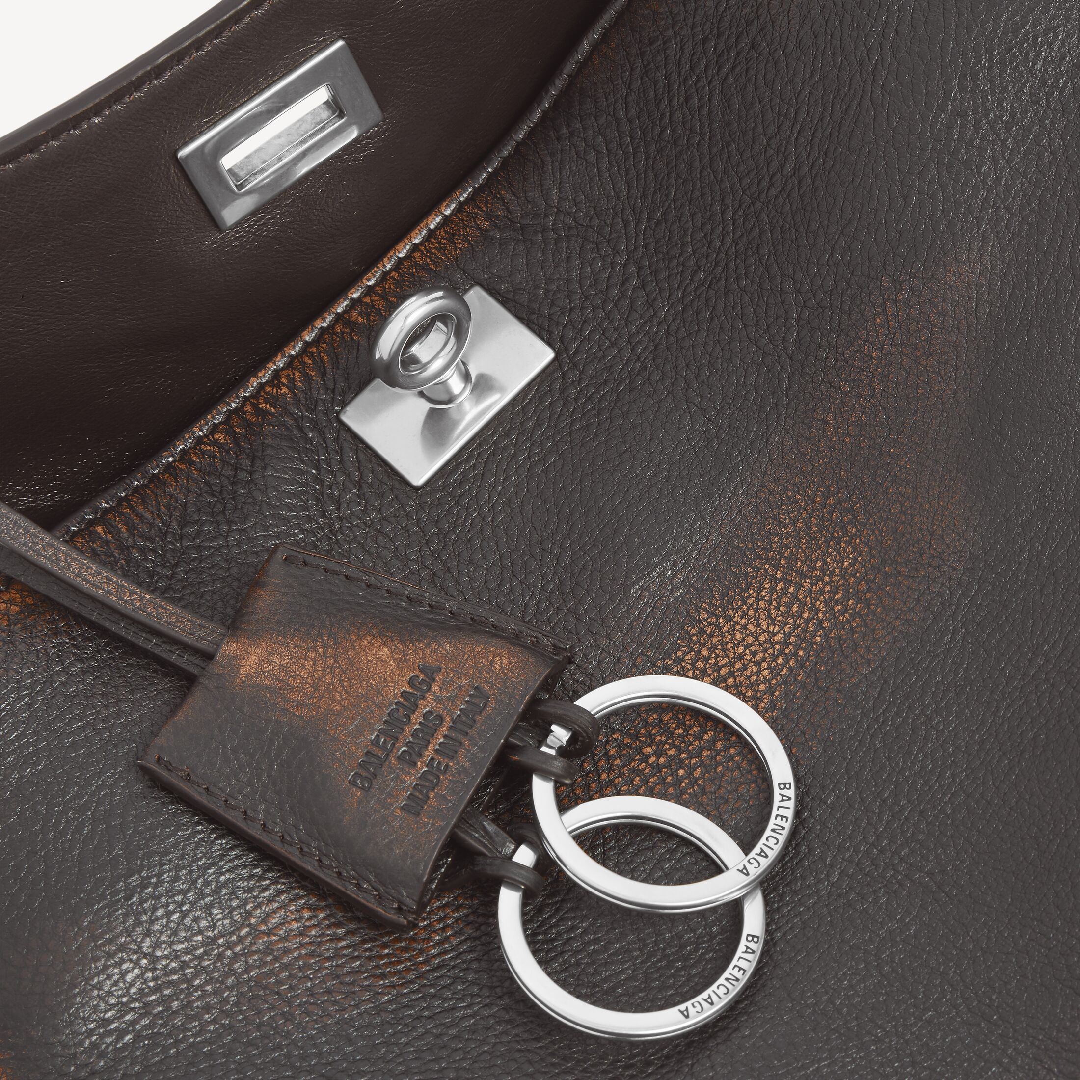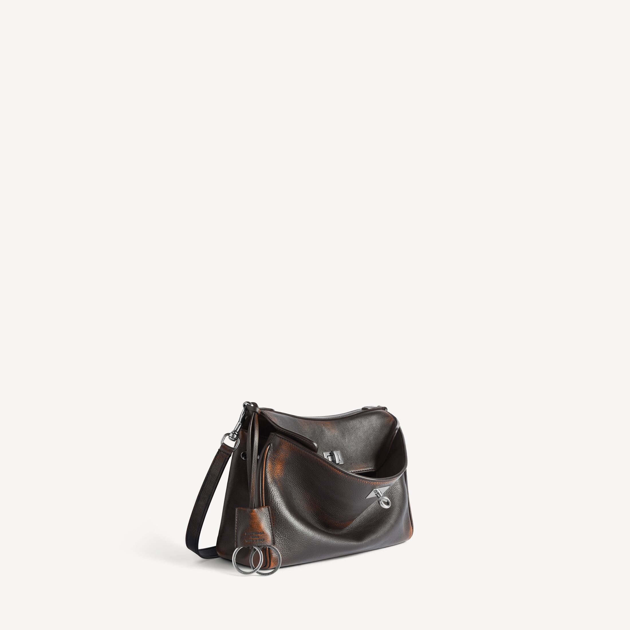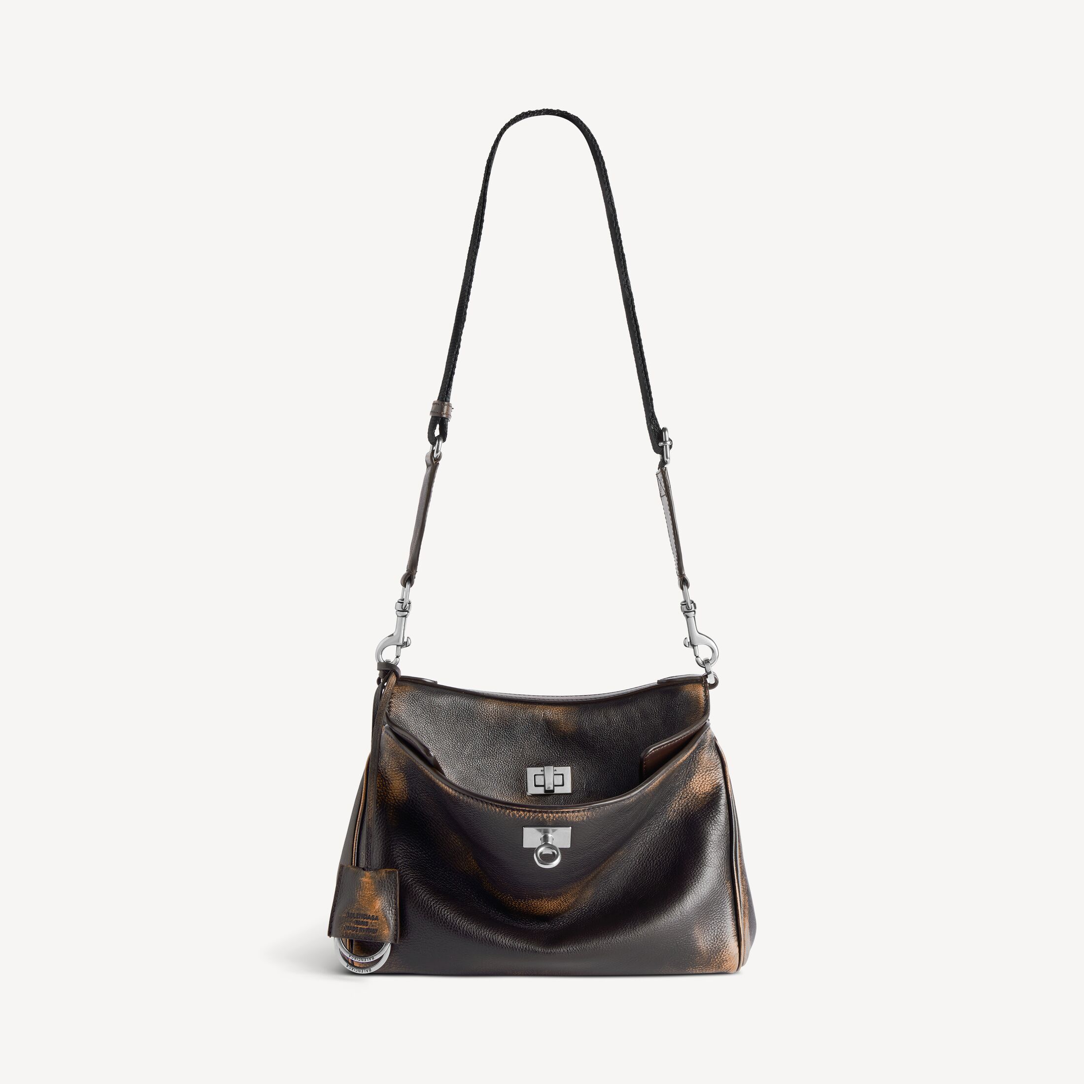 Rodeo浅棕色和深棕色双色做旧效果牛皮革小号邮差包,饰以做旧银色金属配件 此商品支持花呗分期产品细节