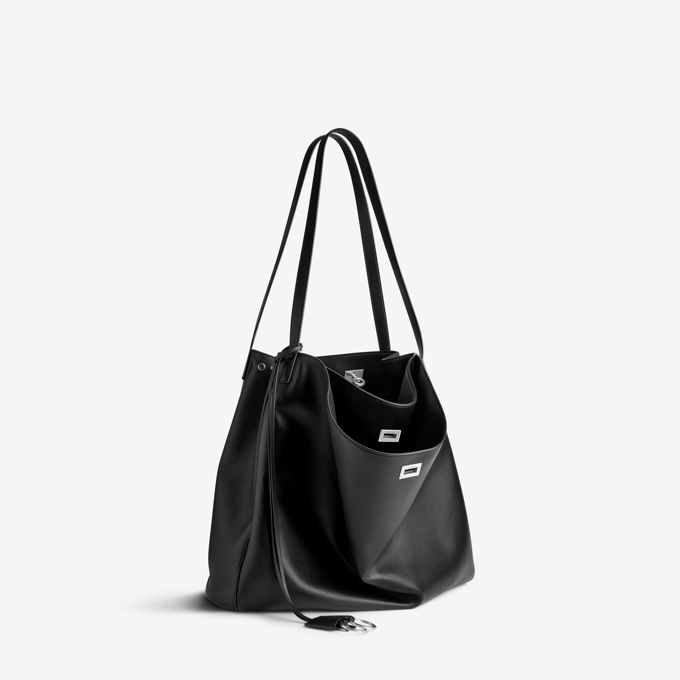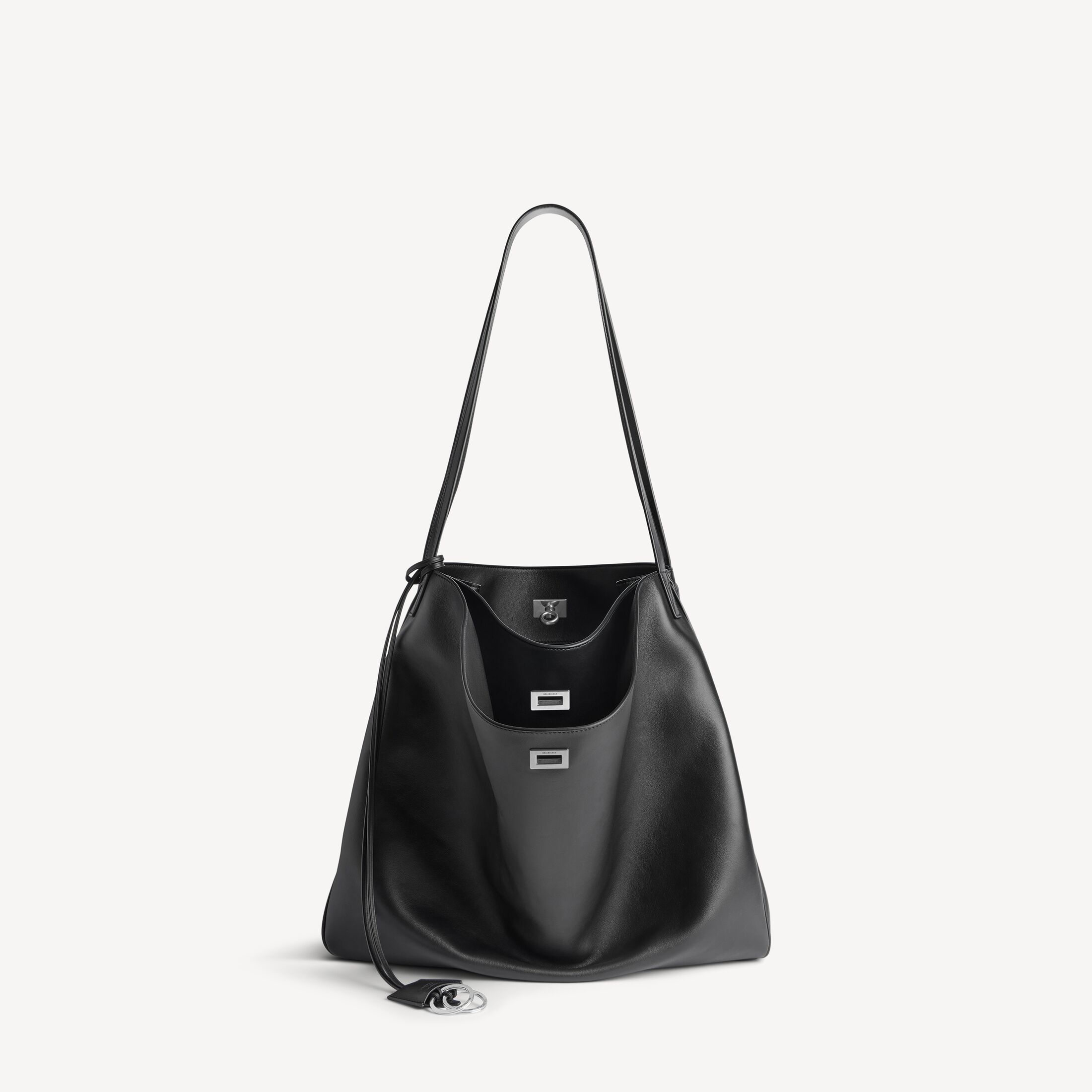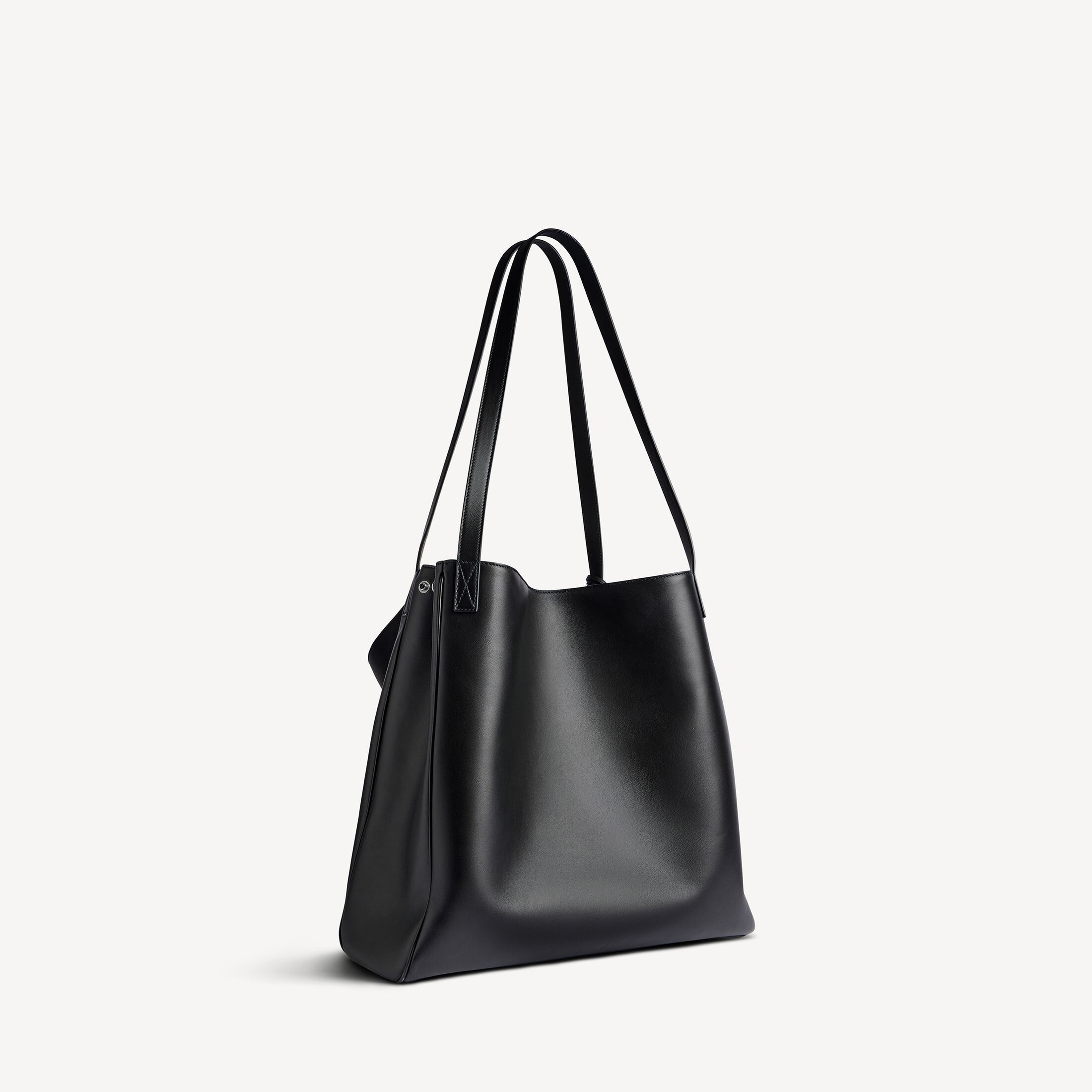 Rodeo黑色光滑牛皮革竖款托特包,饰以做旧银色金属配件 此商品支持花呗分期• 尺寸:长33 x 高24 x 宽9.9厘米