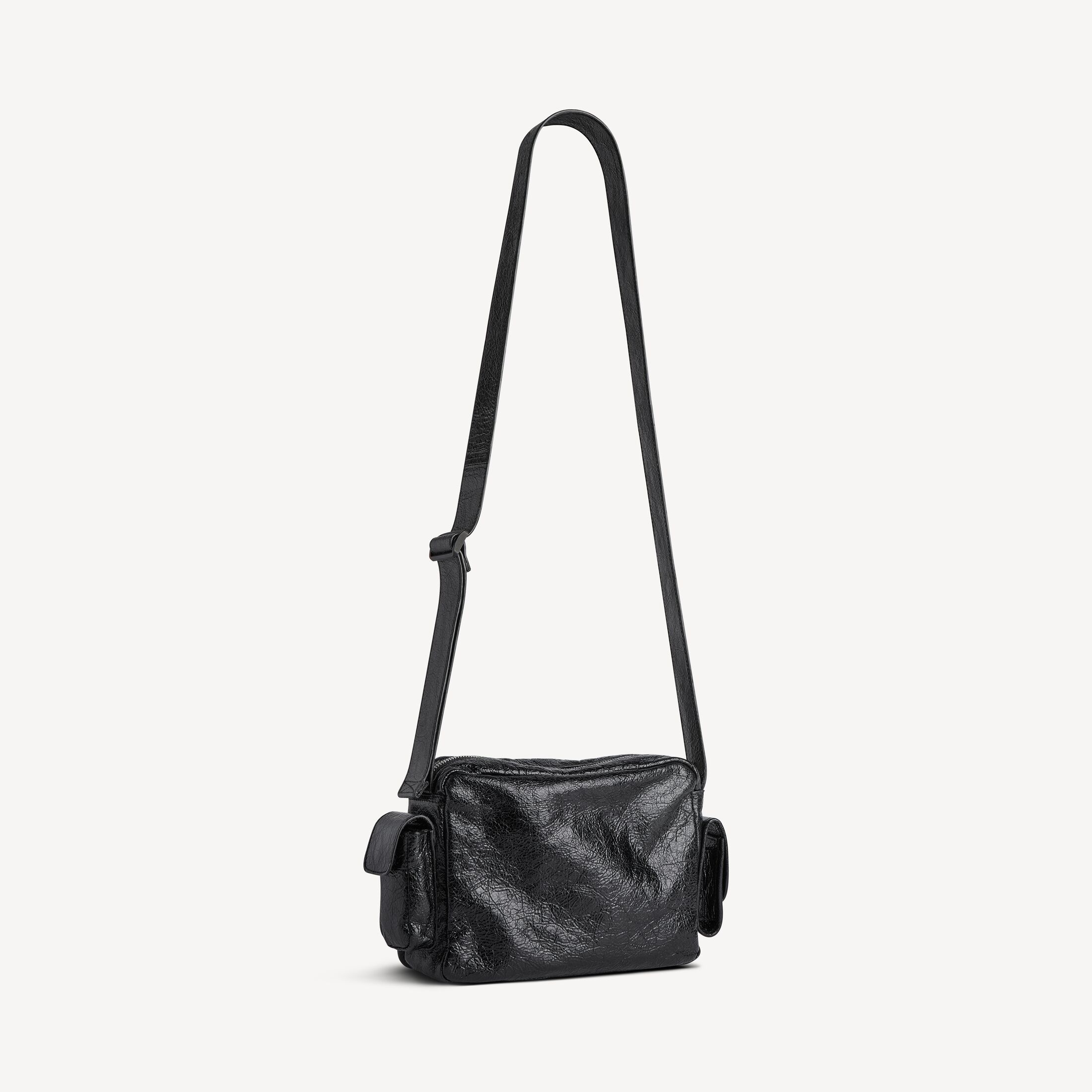 Superbusy黑色细纹羊皮革相机包,饰以做旧银色金属配件 此商品支持花呗分期