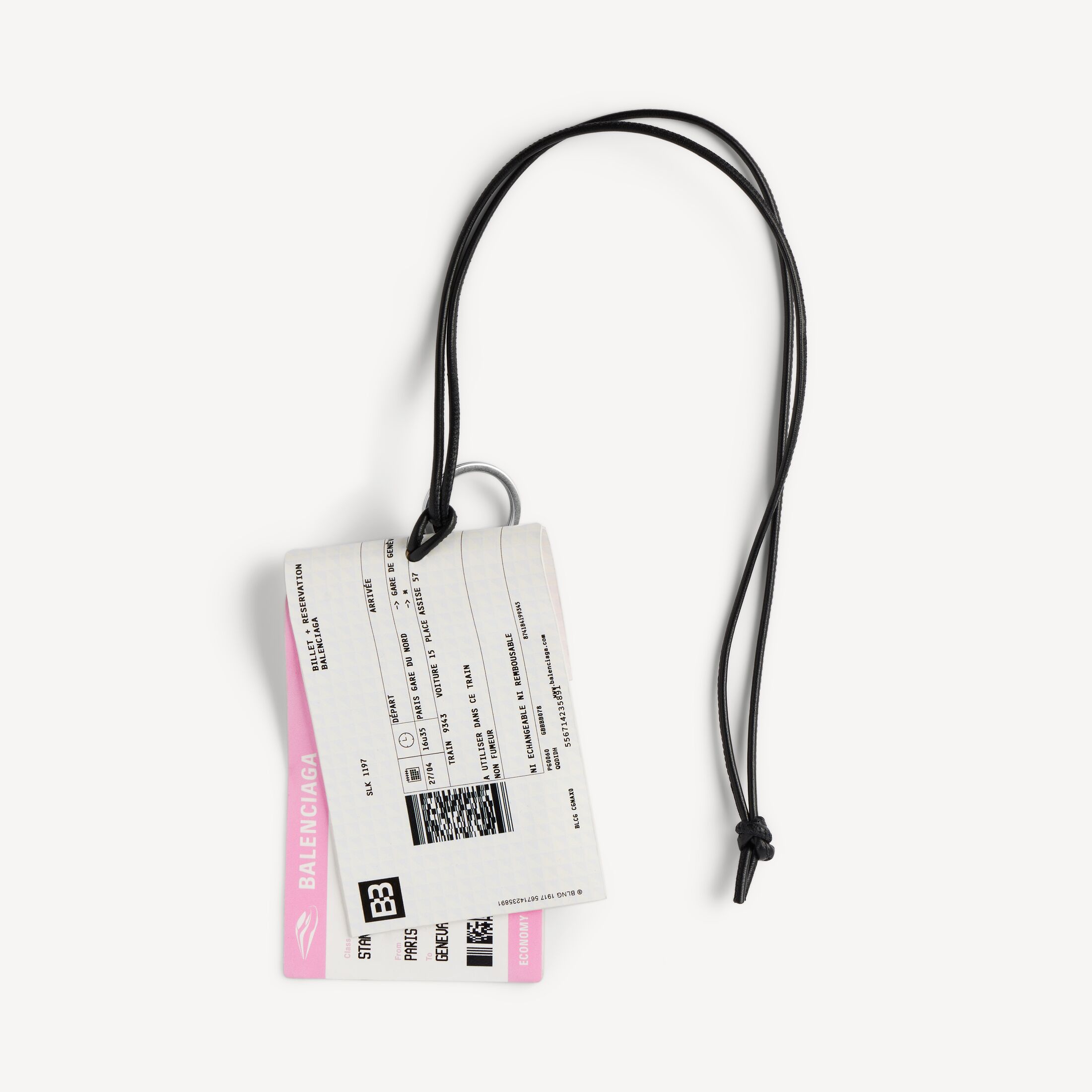 Train Ticket白色、黑色和粉色纤维、羊皮革和聚氨酯吊坠/钥匙环此商品支持花呗分期