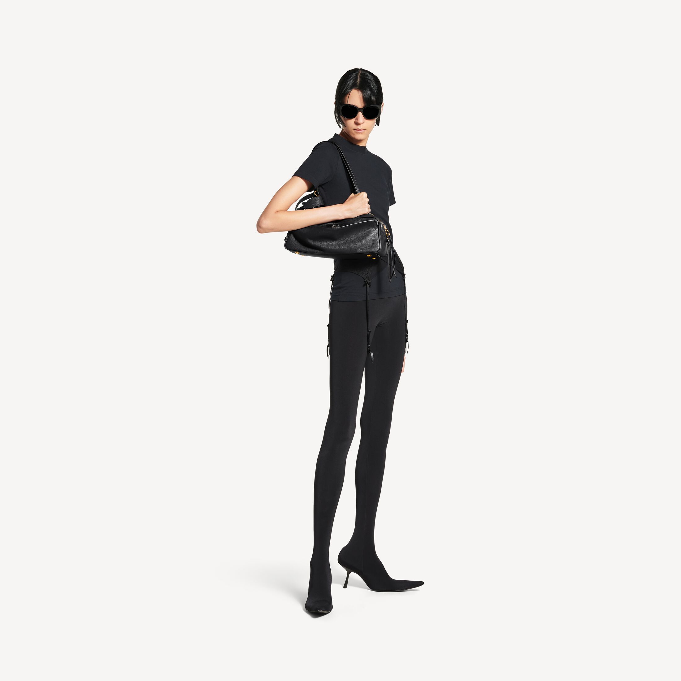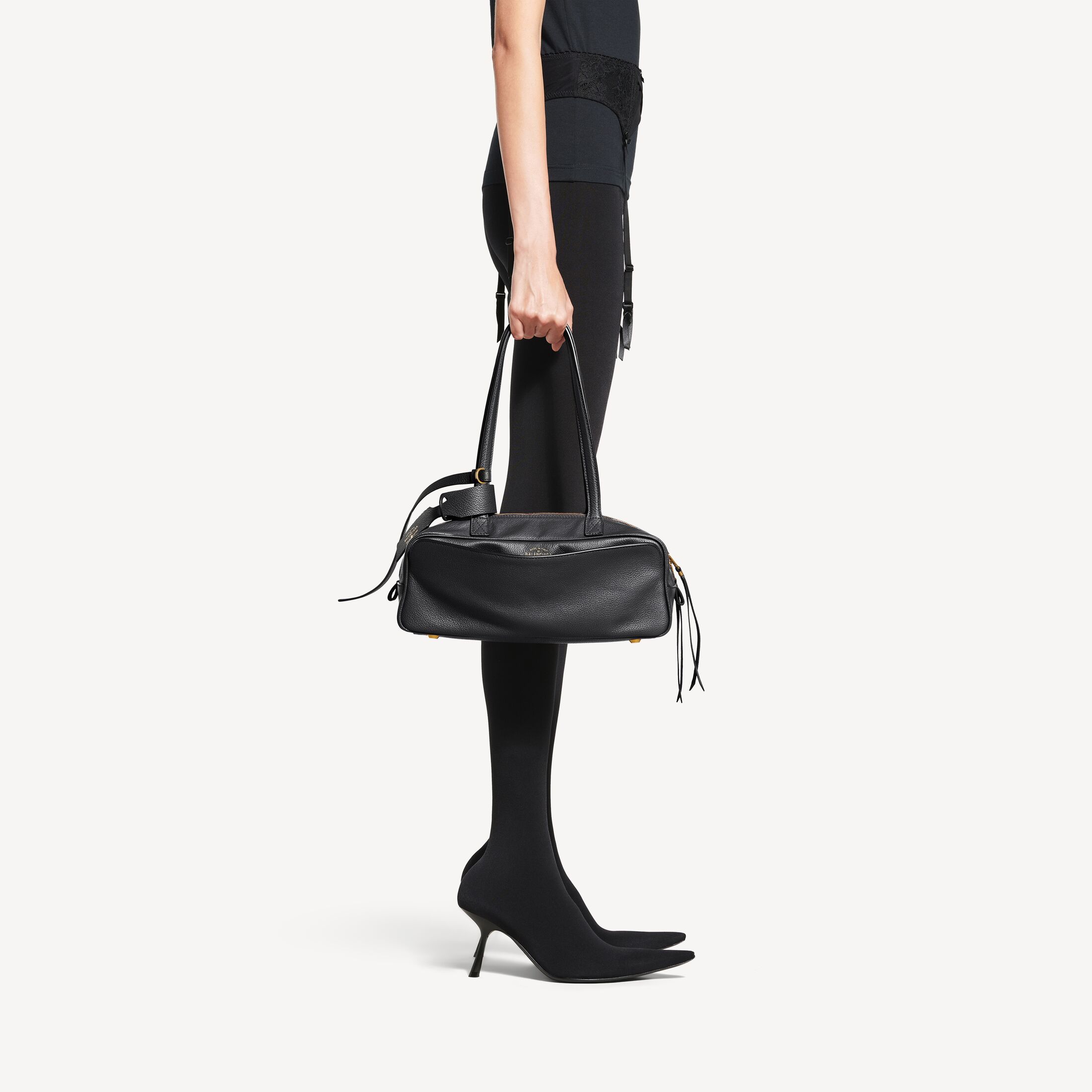 Carrie黑色牛皮革小号保龄球包,饰以做旧金色金属配件此商品支持花呗分期• 牛皮革