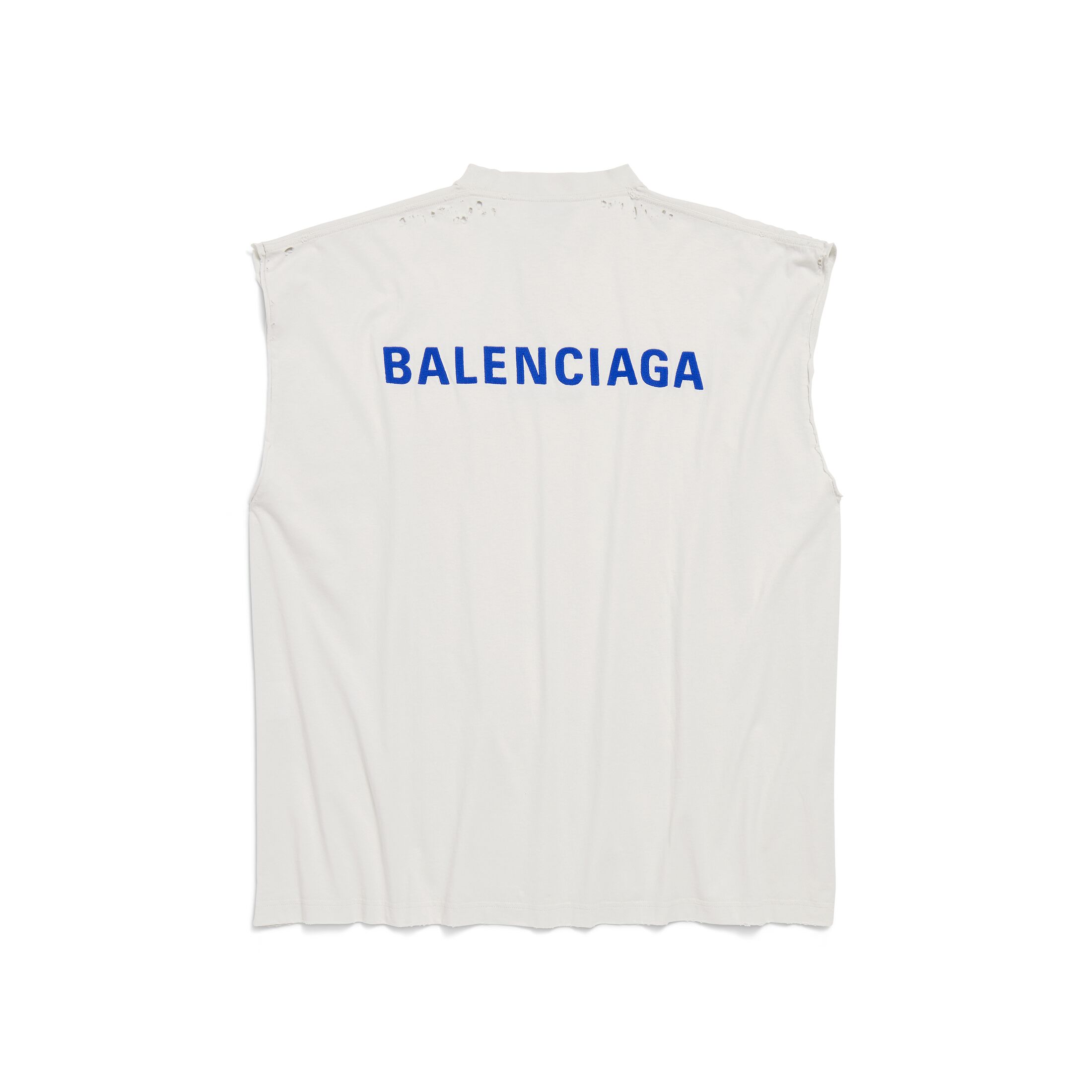 Balenciaga Back做旧白色和蓝色平纹针织无袖T恤此商品支持花呗分期尺码 (法国)