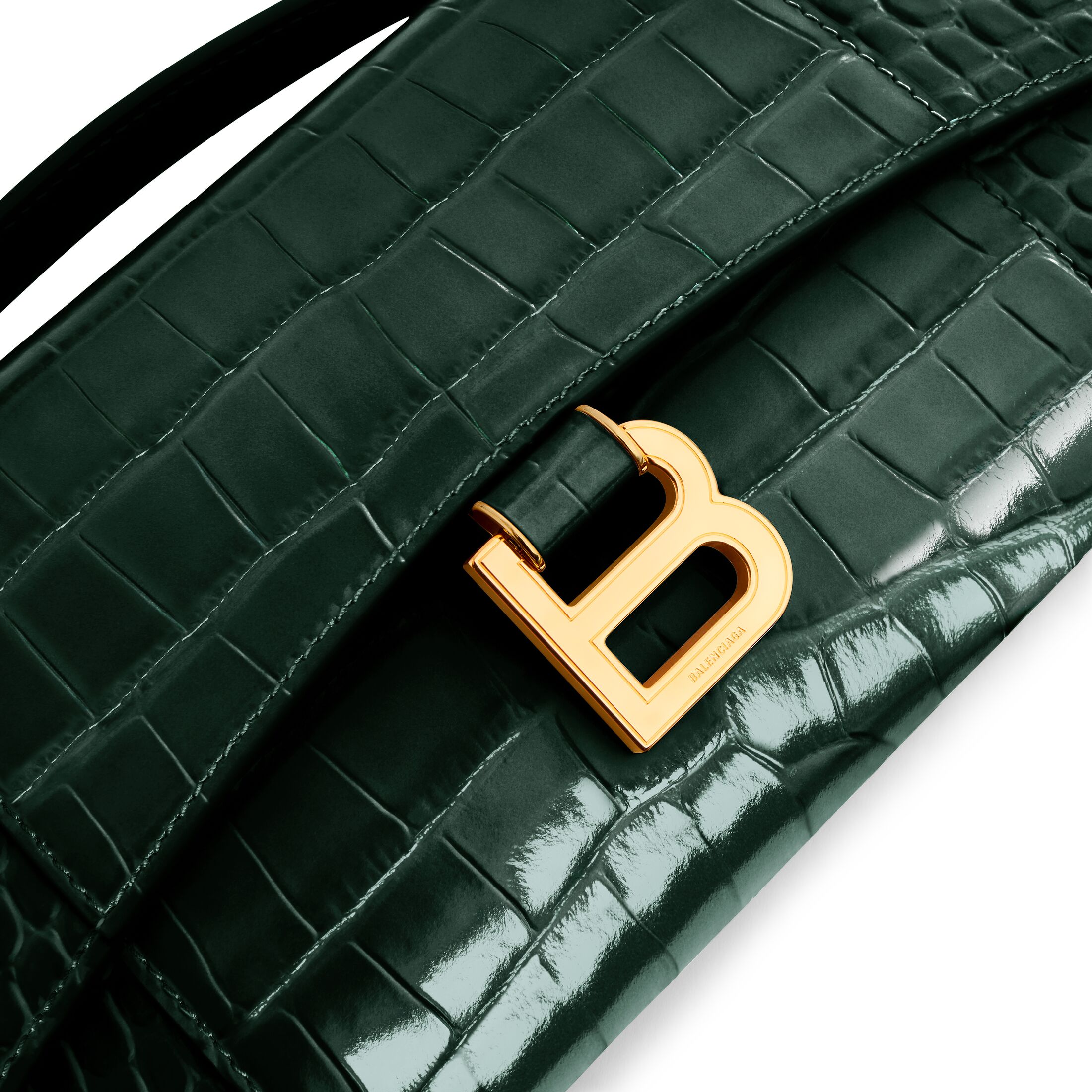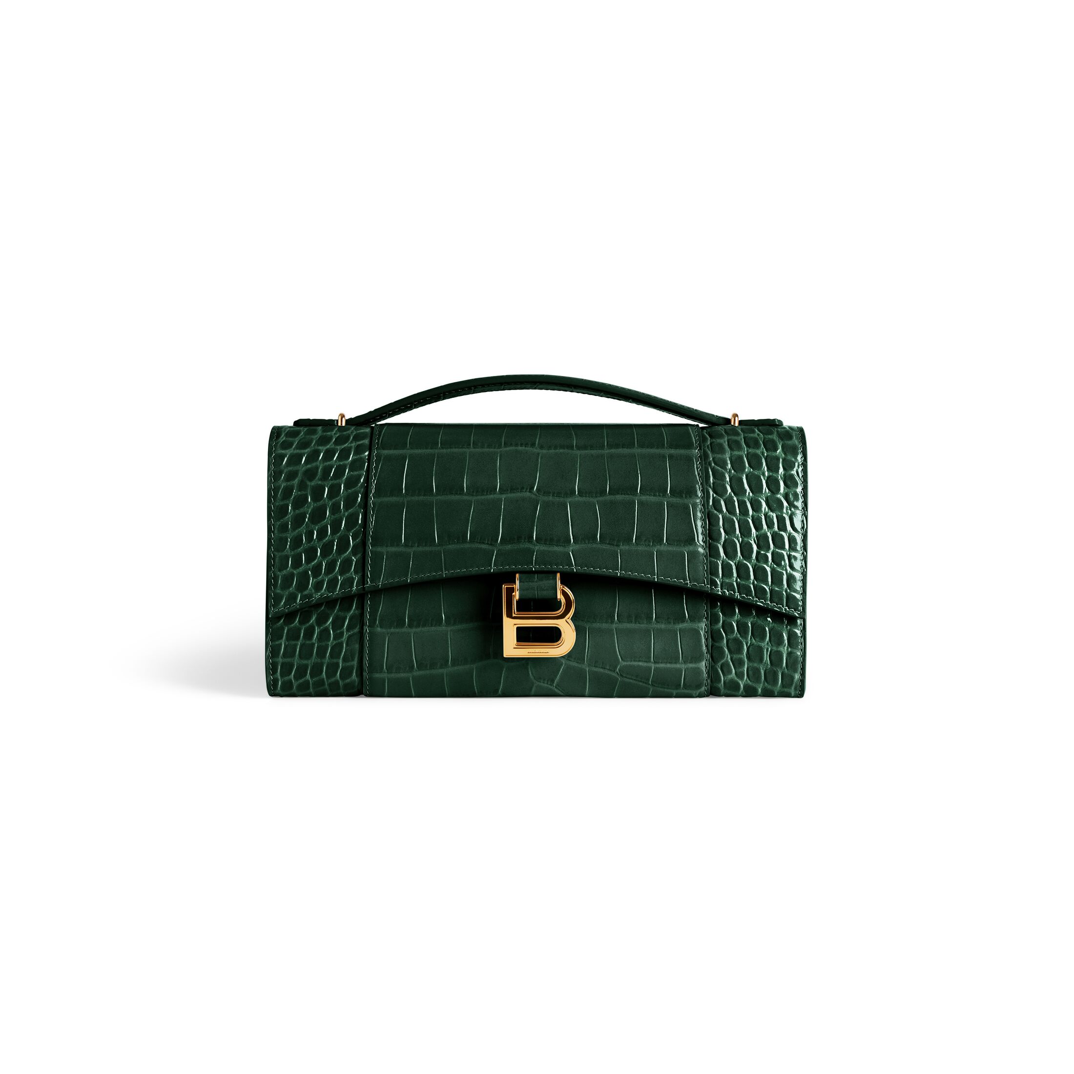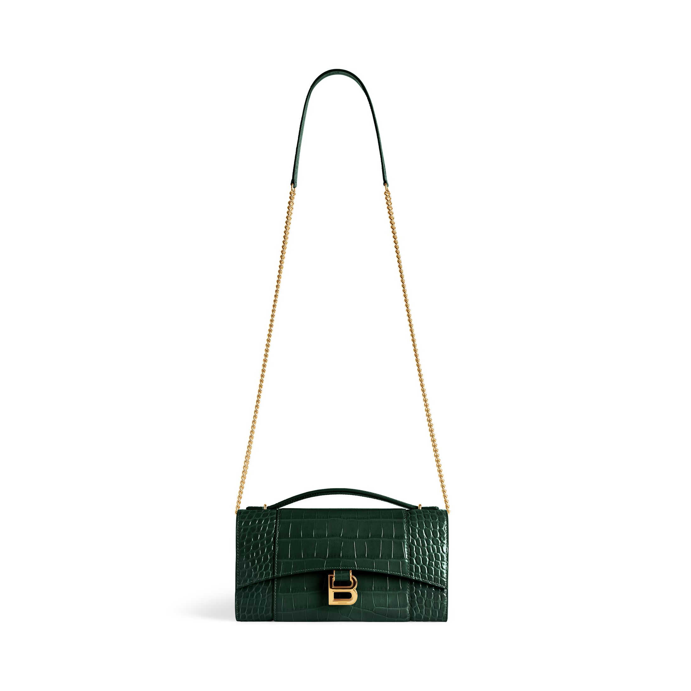 Hourglass森林绿色柔软鳄鱼纹压纹牛皮革饰链手拿包,饰以闪亮金色金属配件 此商品支持花呗分期• 尺寸:长25.9 x 高17 x 宽4.3厘米