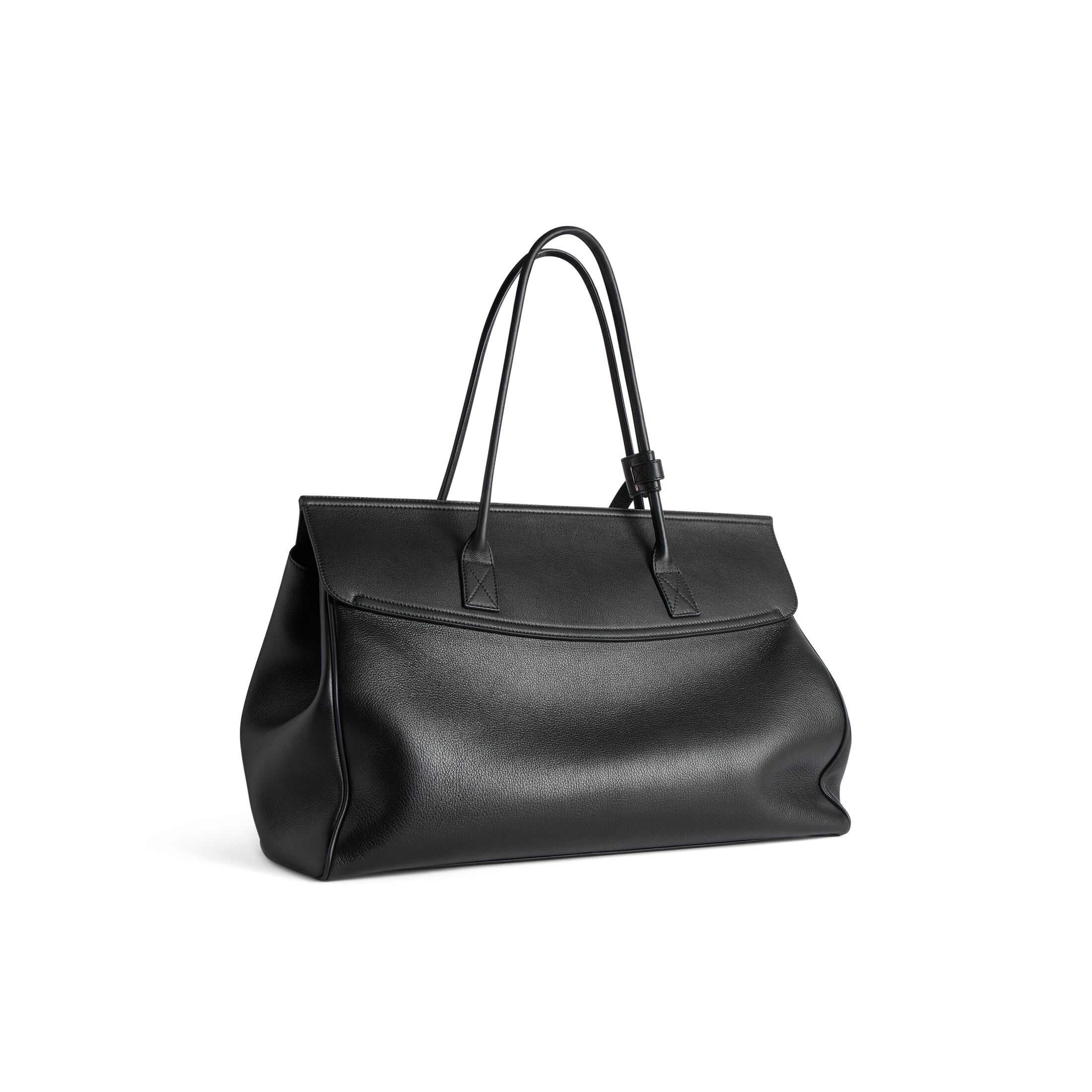 Balenciaga | Automobili Lamborghini Carrie Carry All黑色粒面牛皮革手袋,饰以做旧金色金属配件,亮相于Balenciaga 2025秋季系列Look 17和Look 18。 此商品支持花呗分期• 尺寸:长46.9 x 高39.8 x 宽16厘米