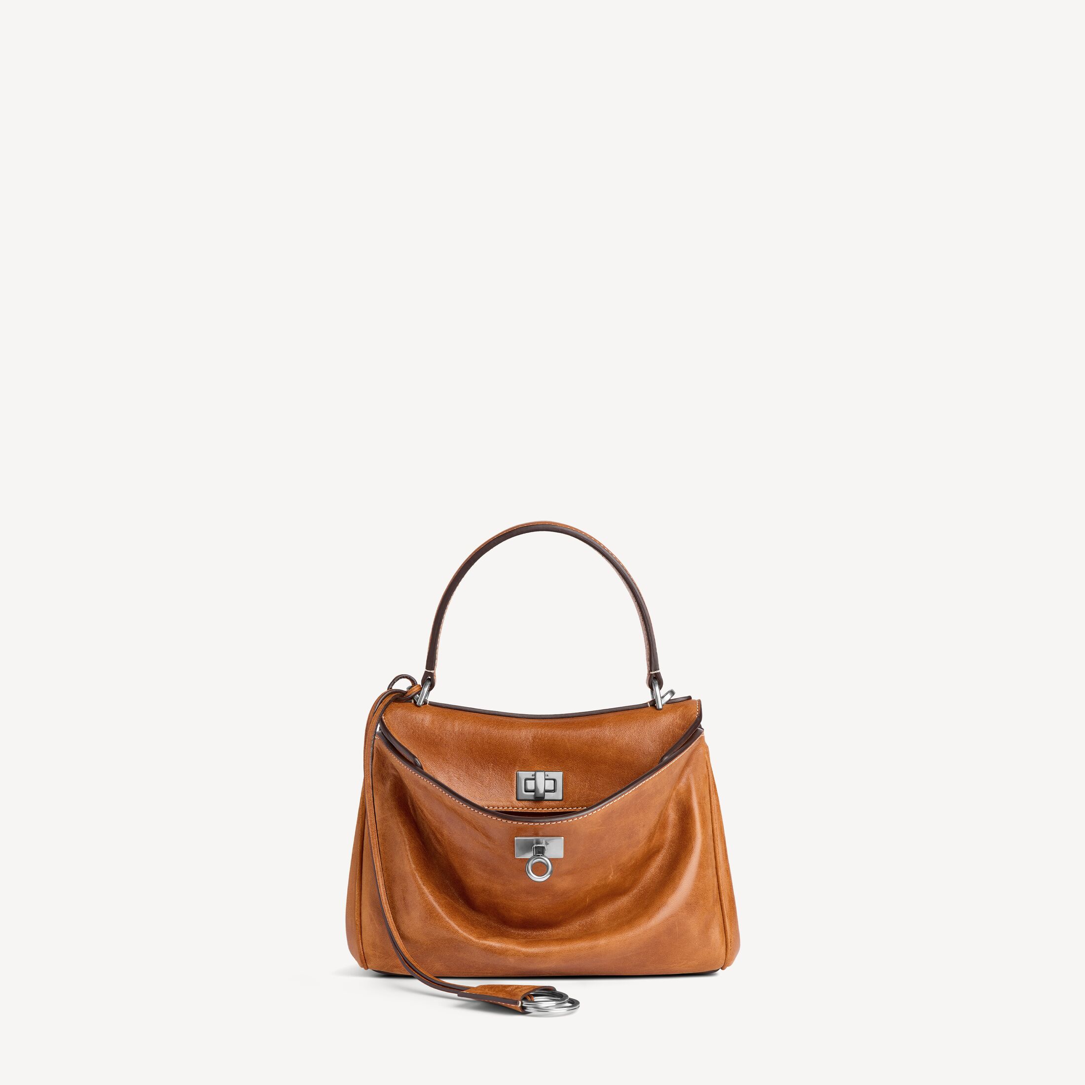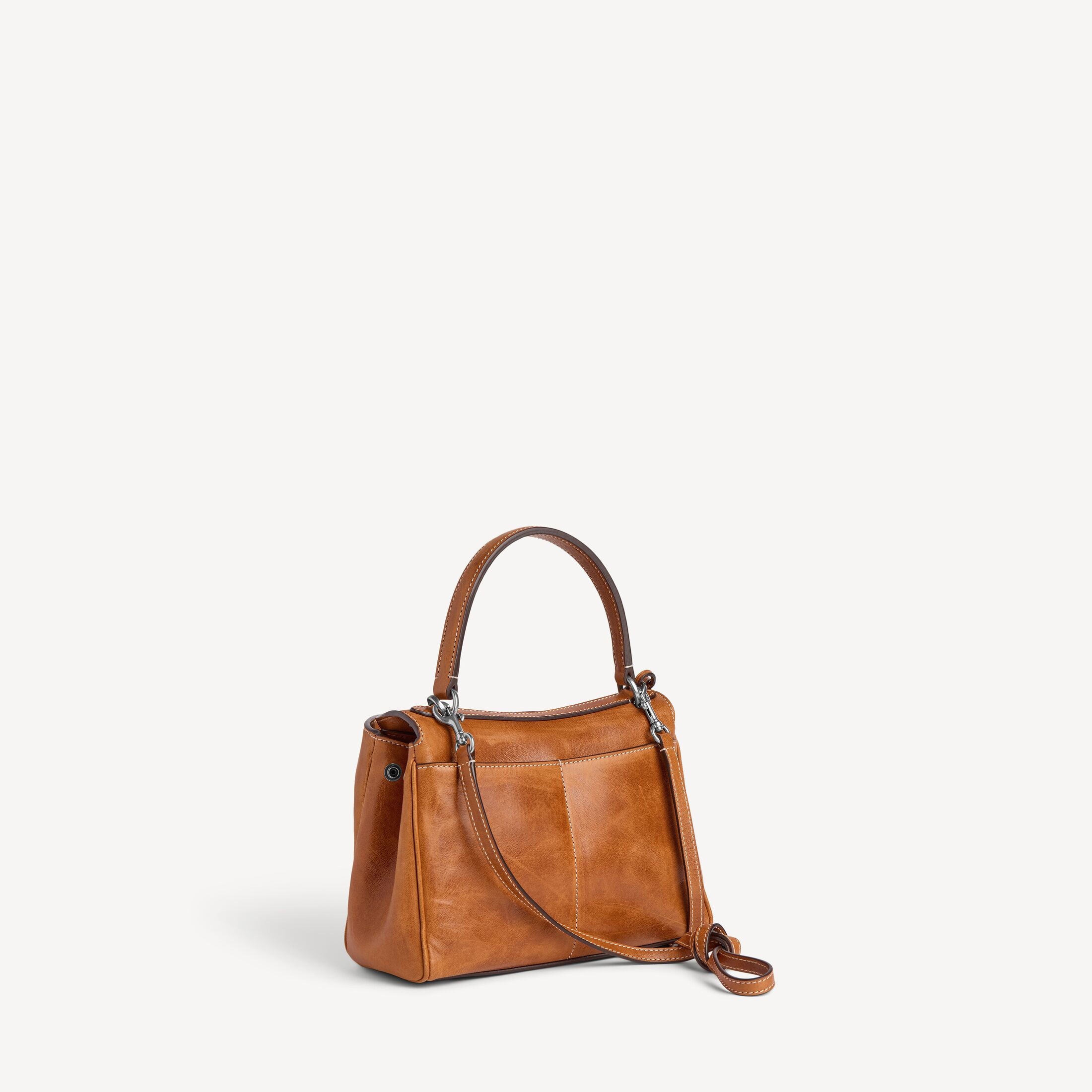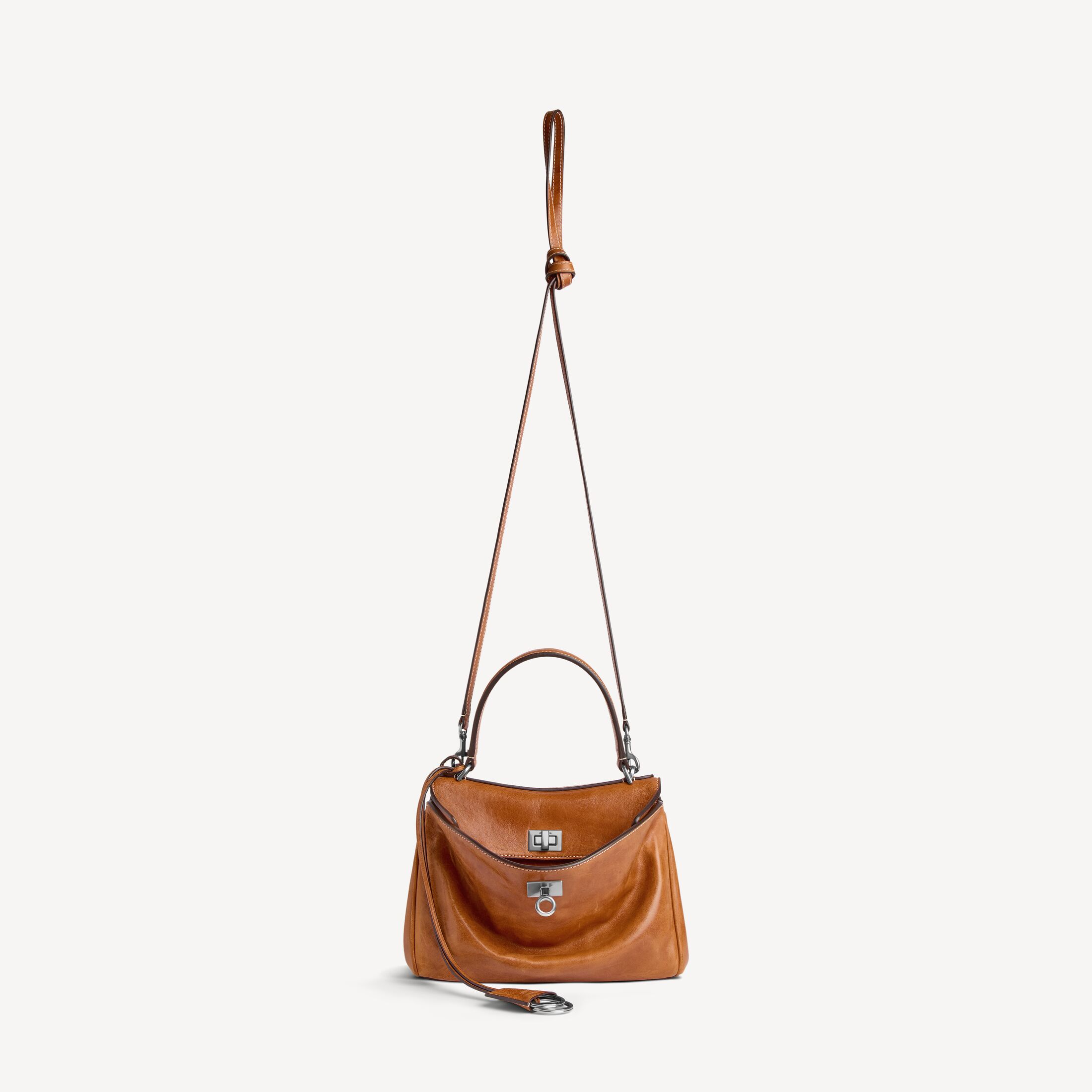 Rodeo棕褐色牛仔植鞣羊皮革迷你手提包,饰以做旧银色金属配件此商品支持花呗分期产品细节