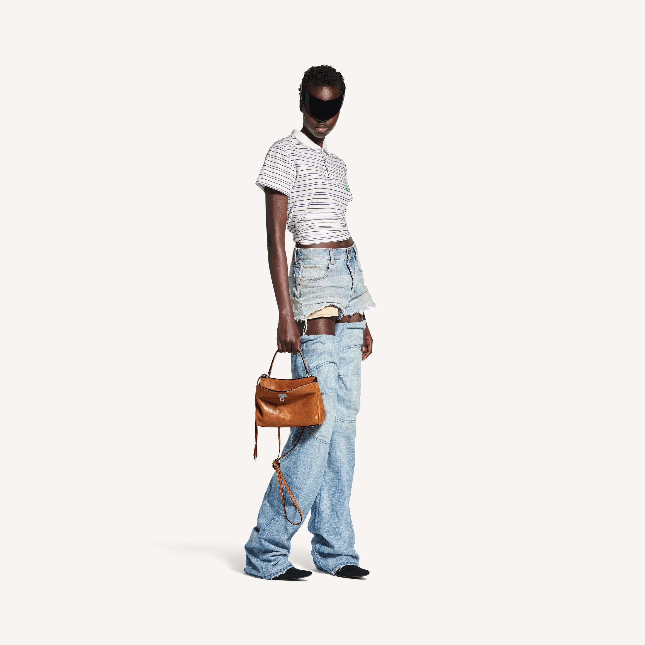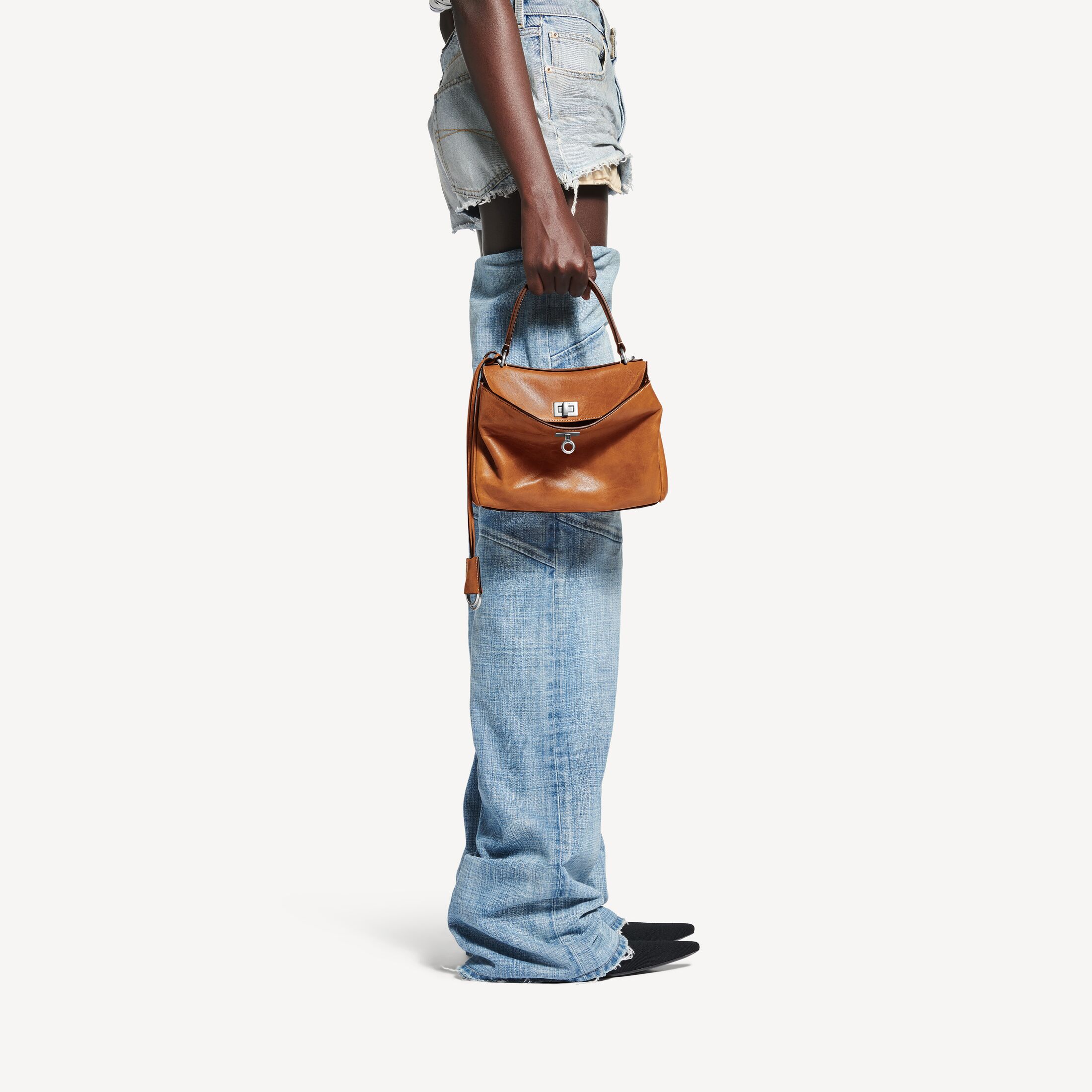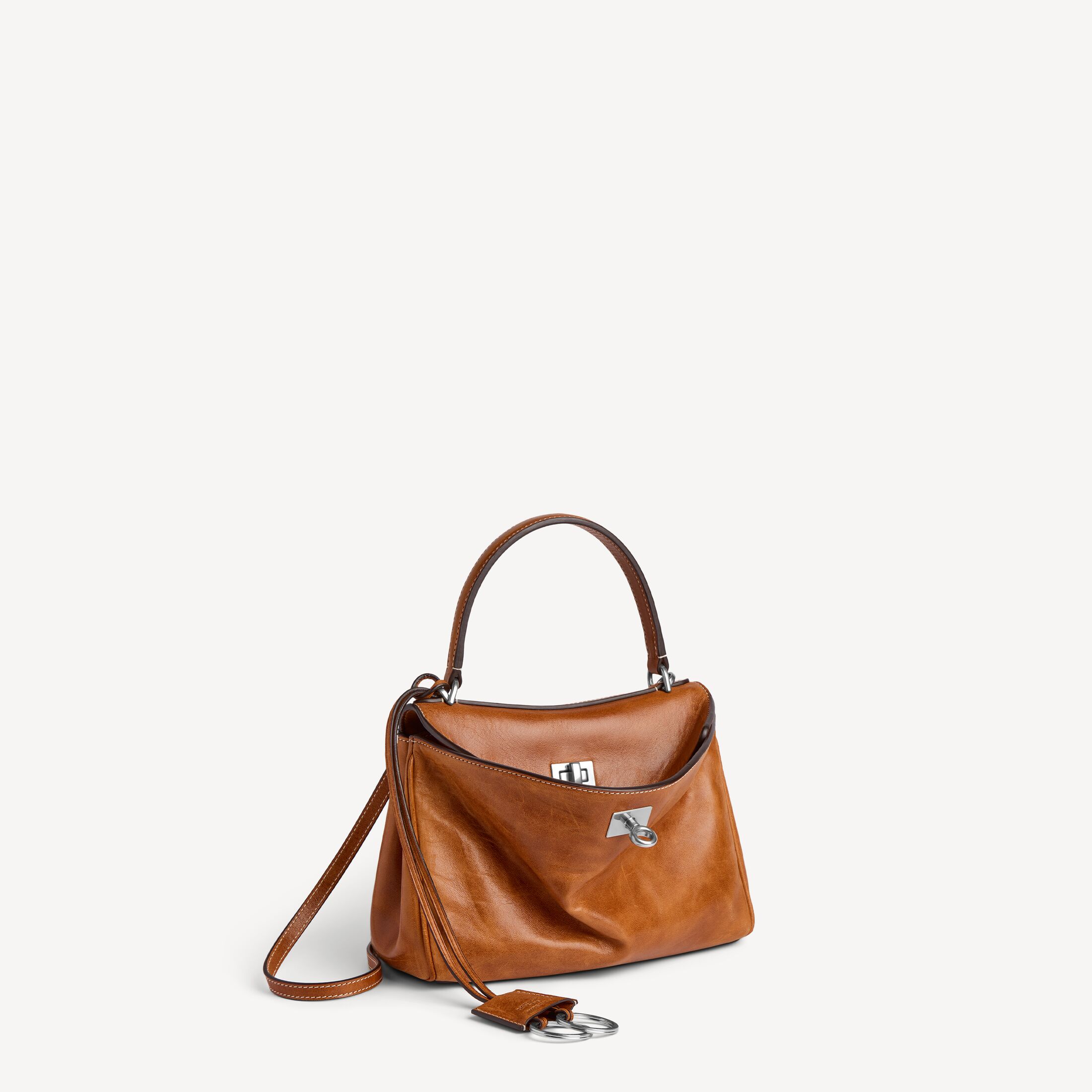 Rodeo棕褐色牛仔植鞣羊皮革迷你手提包,饰以做旧银色金属配件此商品支持花呗分期产品细节